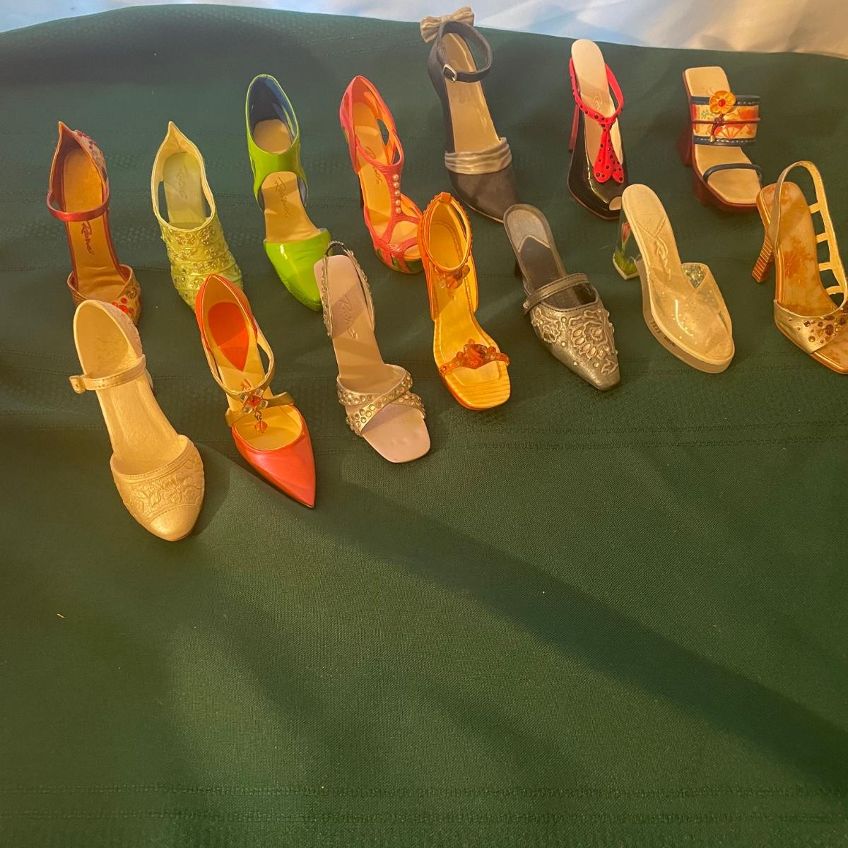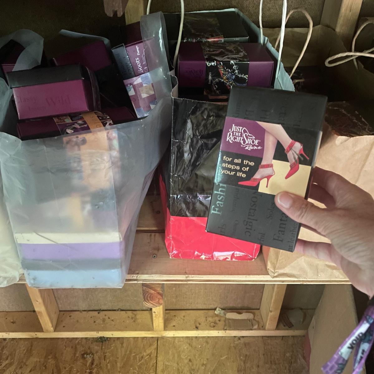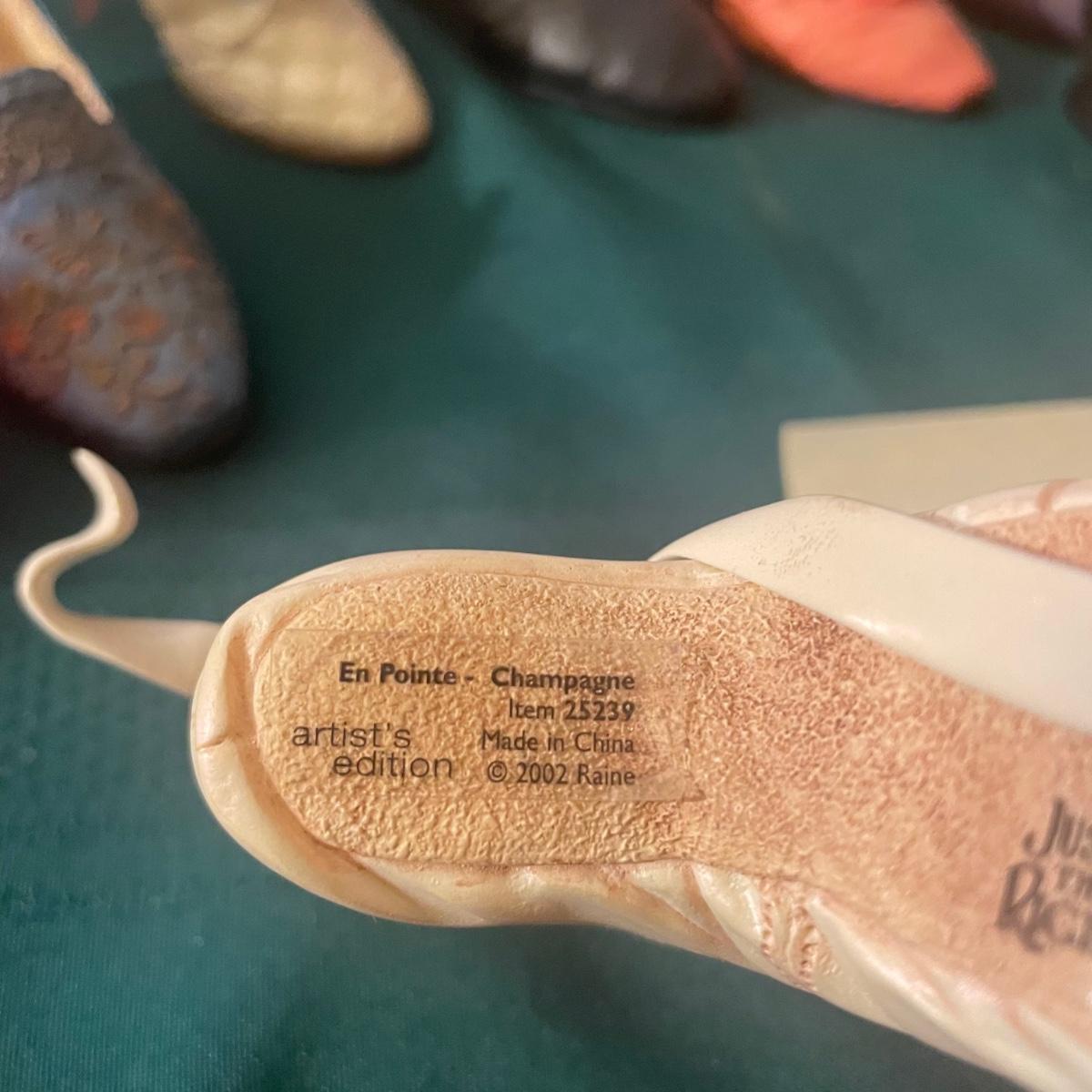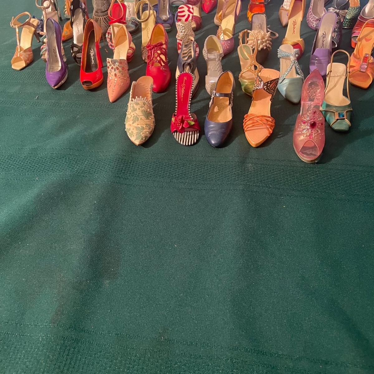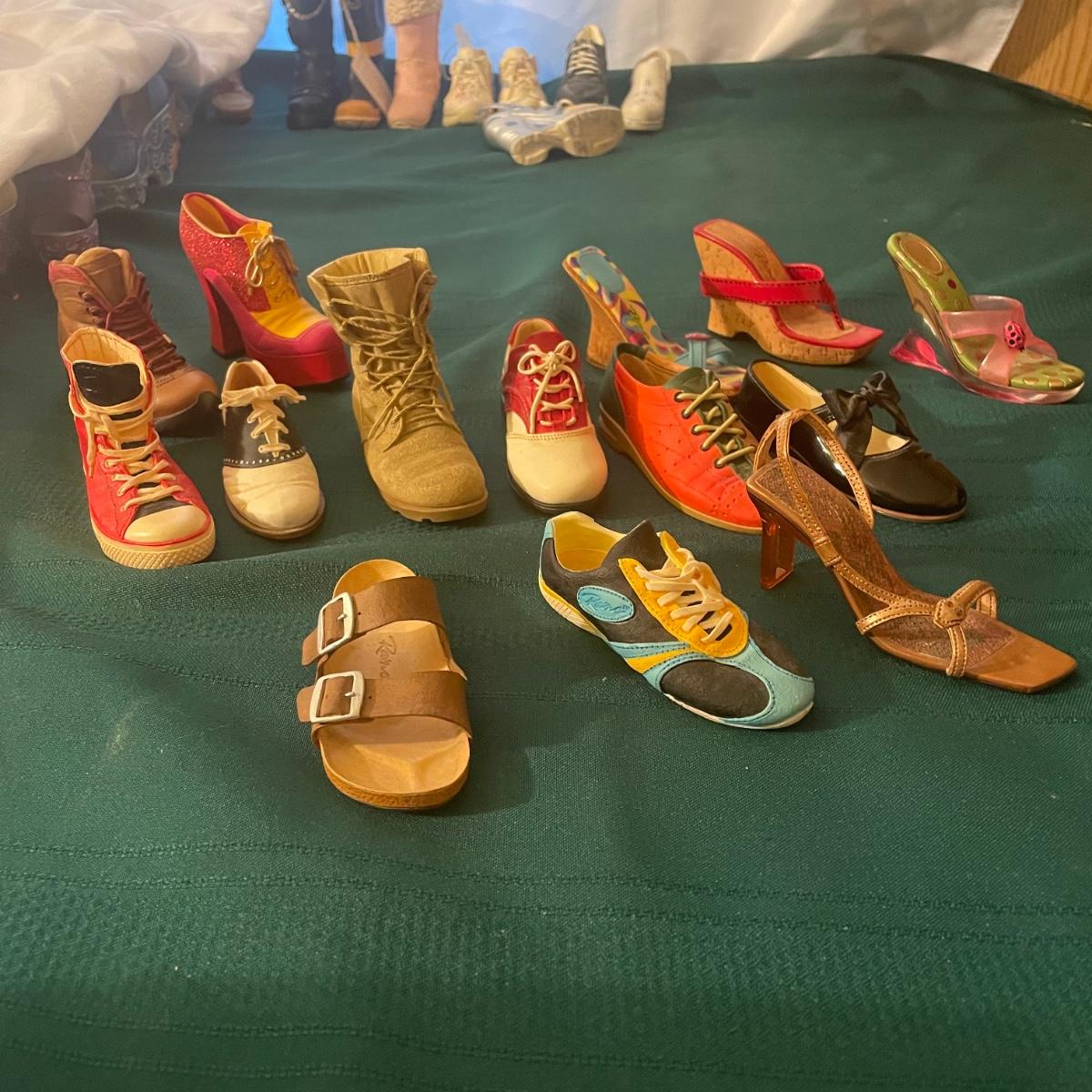 Over 600 collectible miniature shoes from the “˜Just the Right Shoe" collection that includes some rare and hard to find shoes such as three Breast Cancer shoes (Fresia, Sweet Pea & Delicate Daisies). In order to see the shoes more easily in the photos or in person, we have grouped them together with approx 75 in each grouping, but all of these are sold together in this one lot. This lot also includes a large number of original boxes but we were unable to match up with the corresponding shoes. Buy the lot and take the time to match up shoes and boxes and you will add some value! Note that the last two pictures of bags and boxes are all full of the mini shoe boxes.