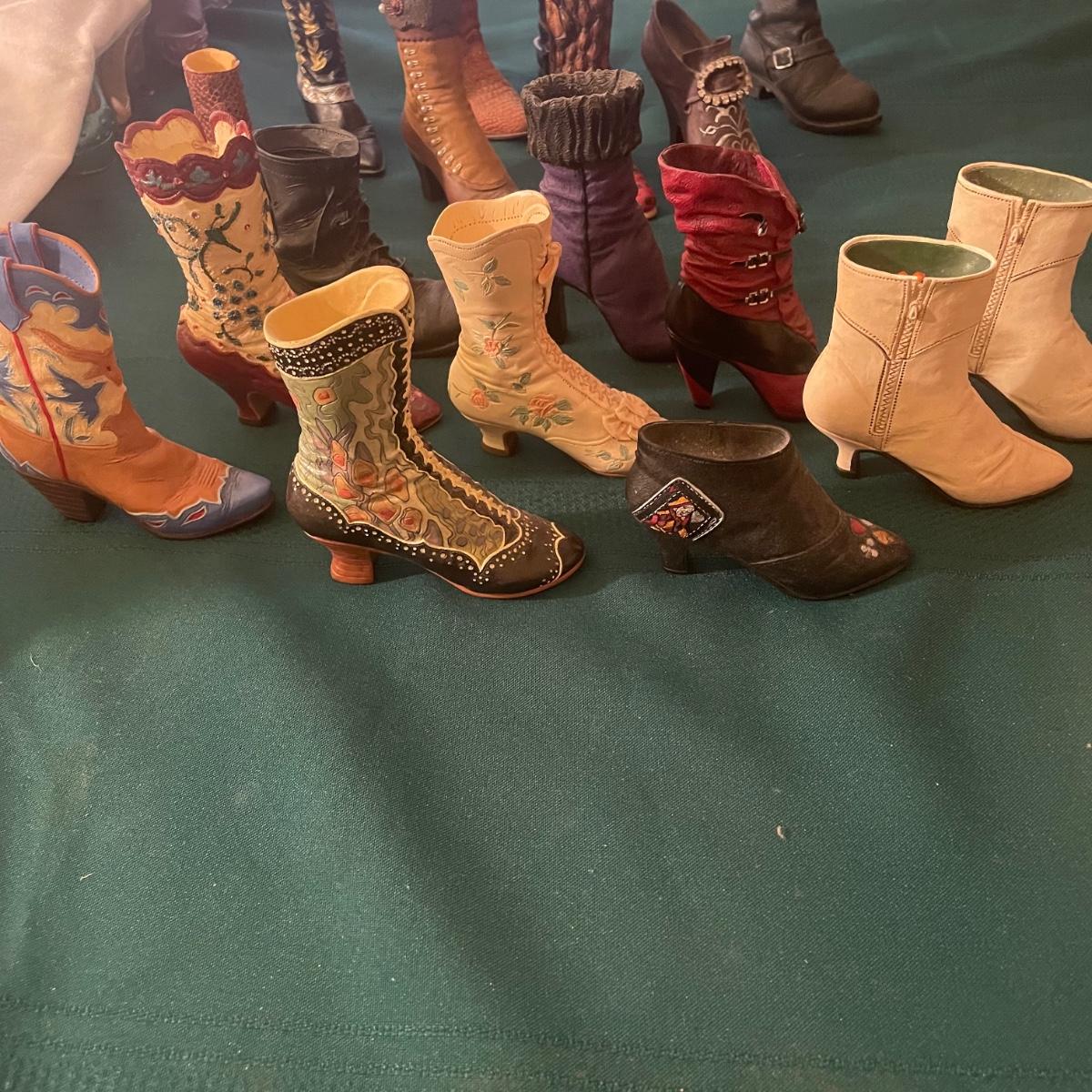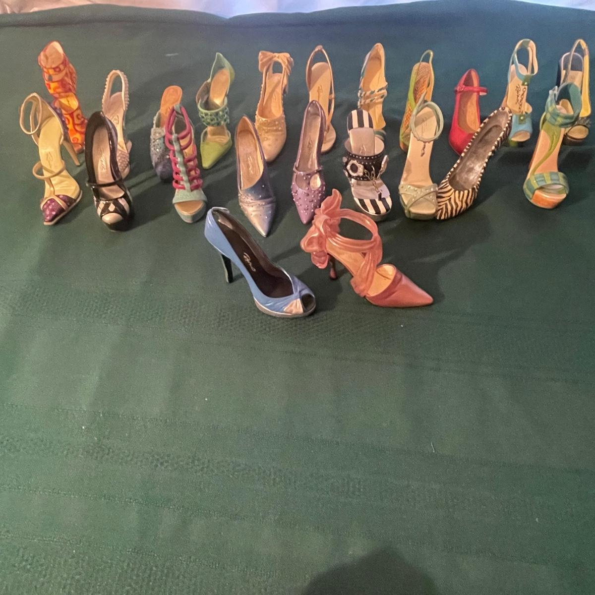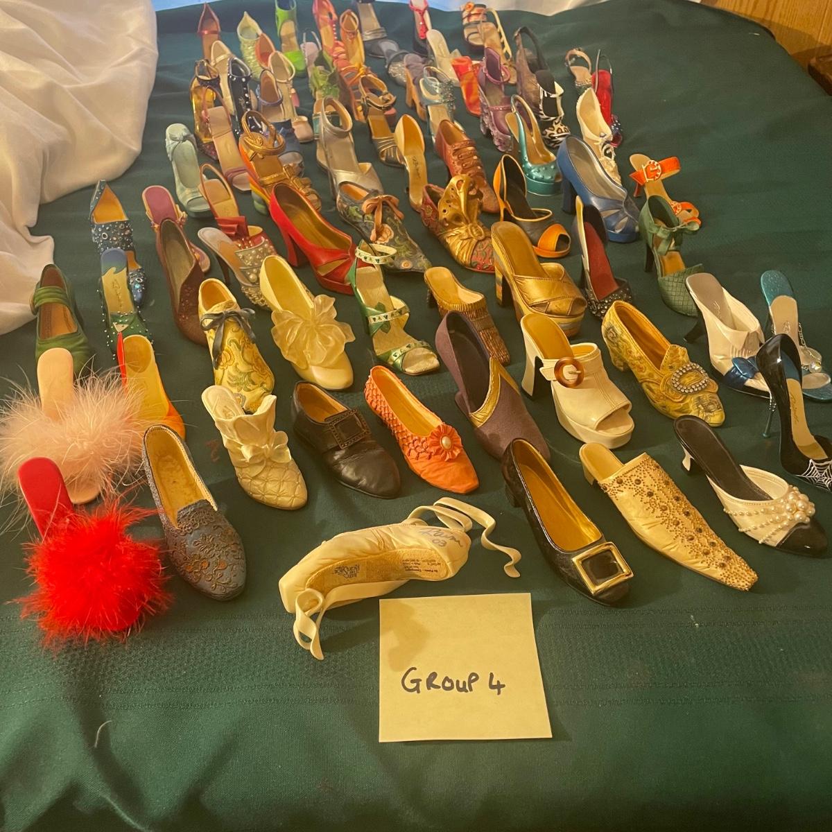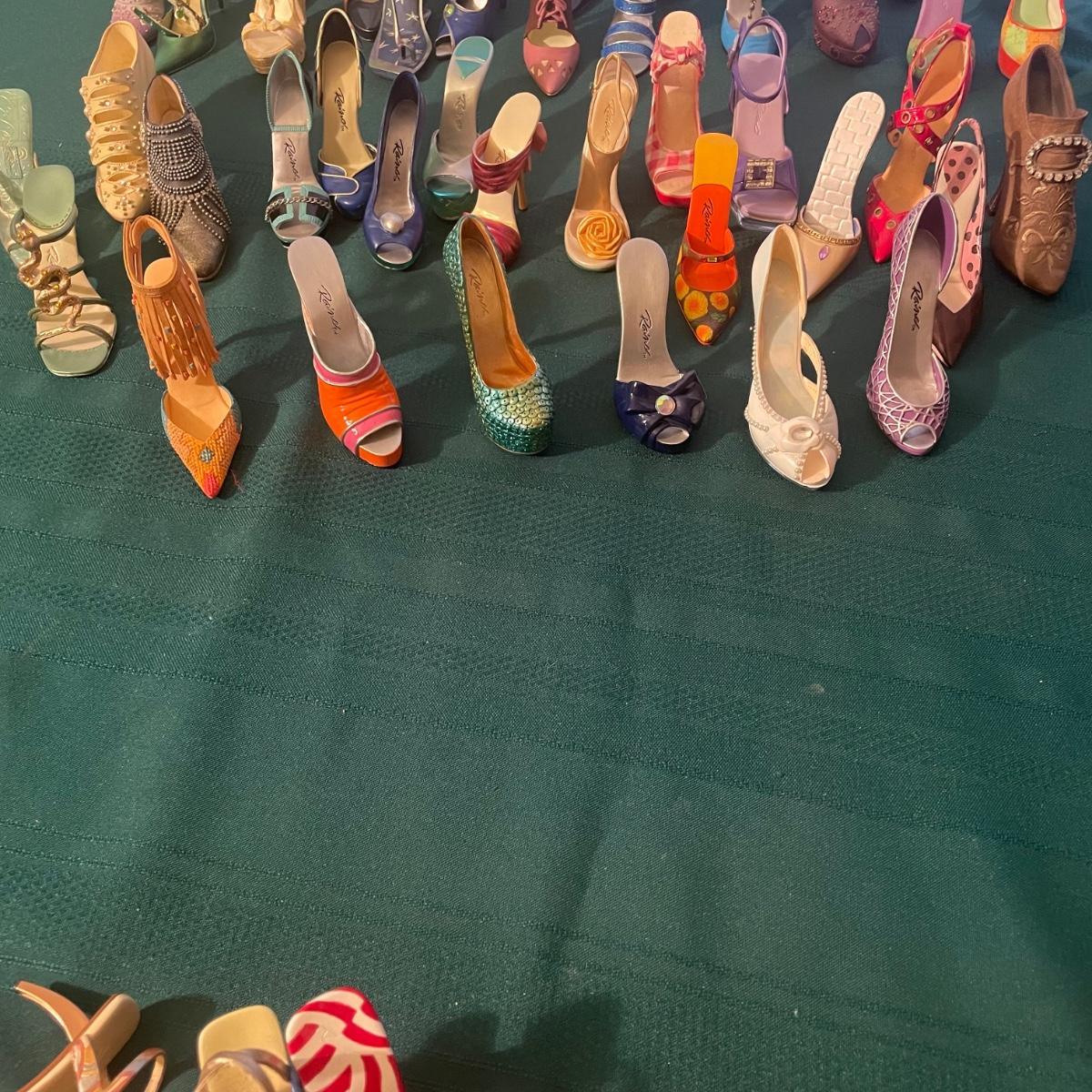 Over 600 collectible miniature shoes from the “˜Just the Right Shoe" collection that includes some rare and hard to find shoes such as three Breast Cancer shoes (Fresia, Sweet Pea & Delicate Daisies). In order to see the shoes more easily in the photos or in person, we have grouped them together with approx 75 in each grouping, but all of these are sold together in this one lot. This lot also includes a large number of original boxes but we were unable to match up with the corresponding shoes. Buy the lot and take the time to match up shoes and boxes and you will add some value! Note that the last two pictures of bags and boxes are all full of the mini shoe boxes.
