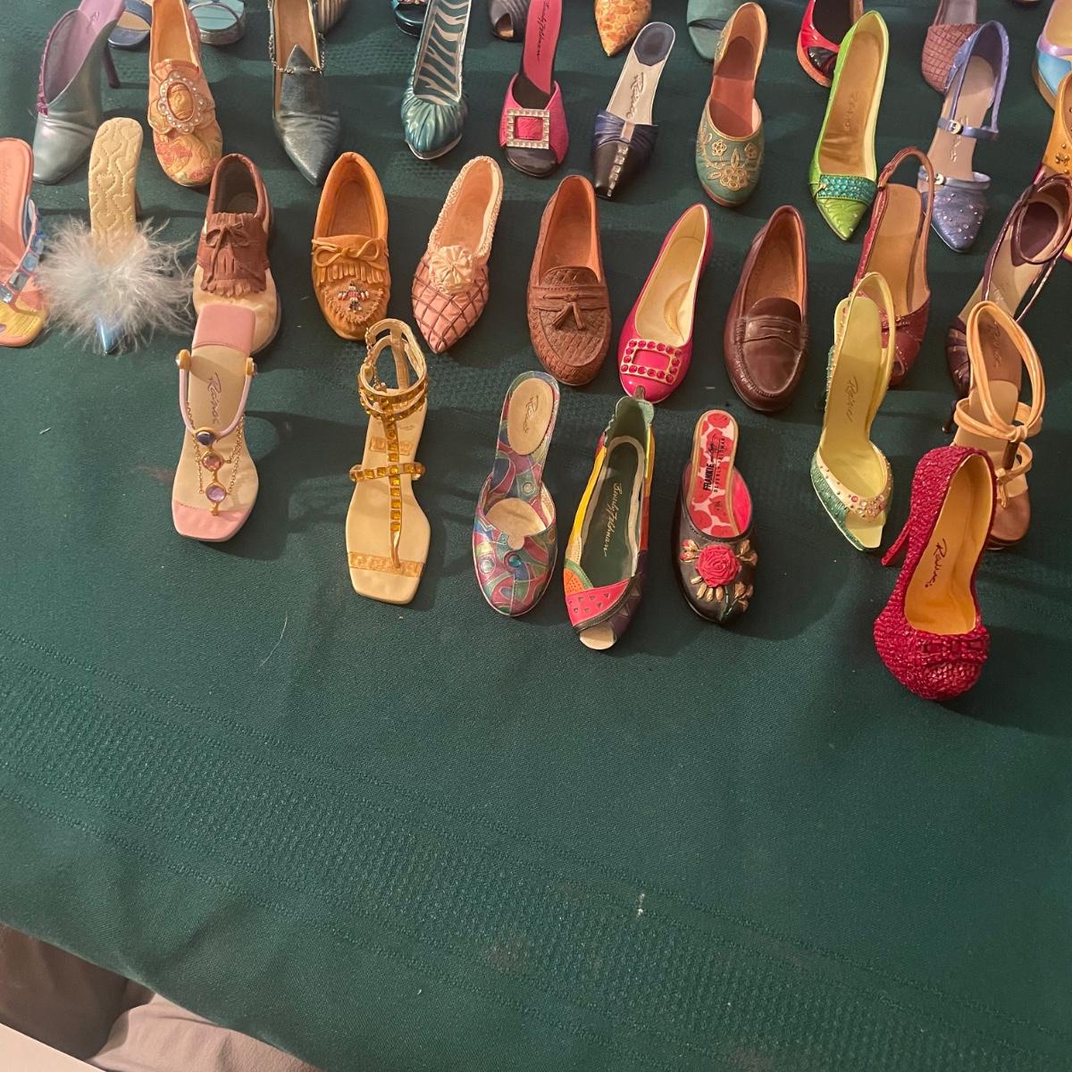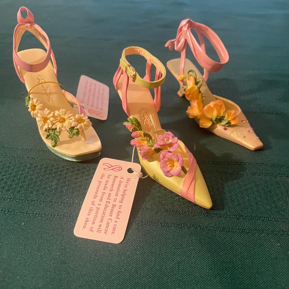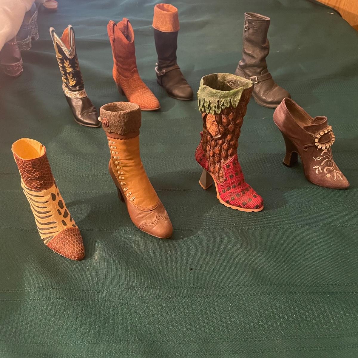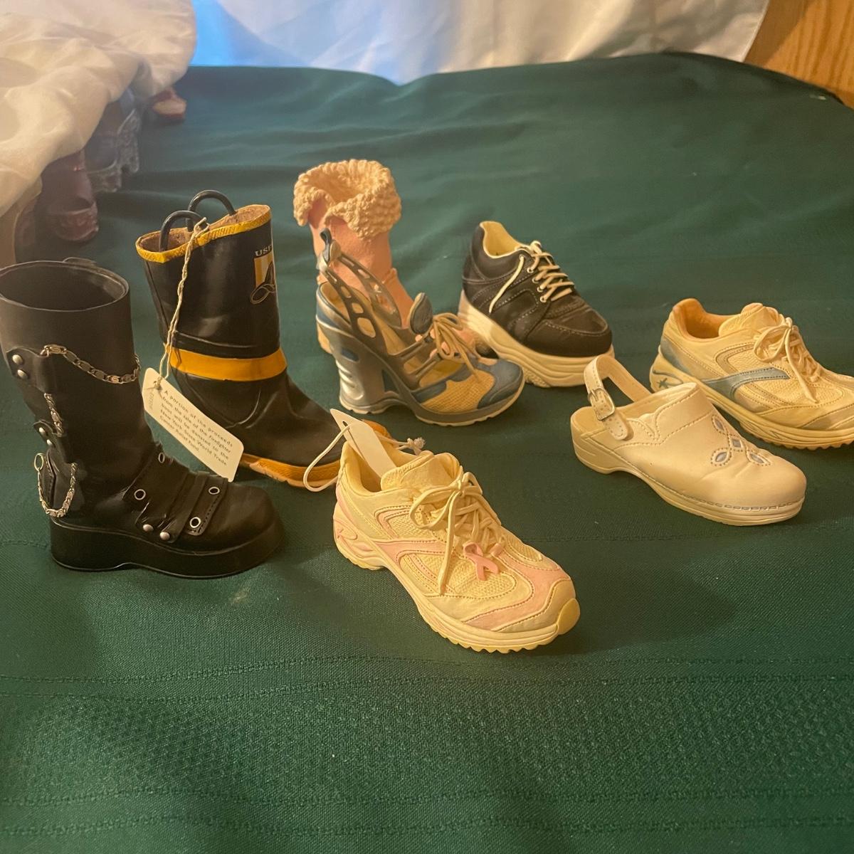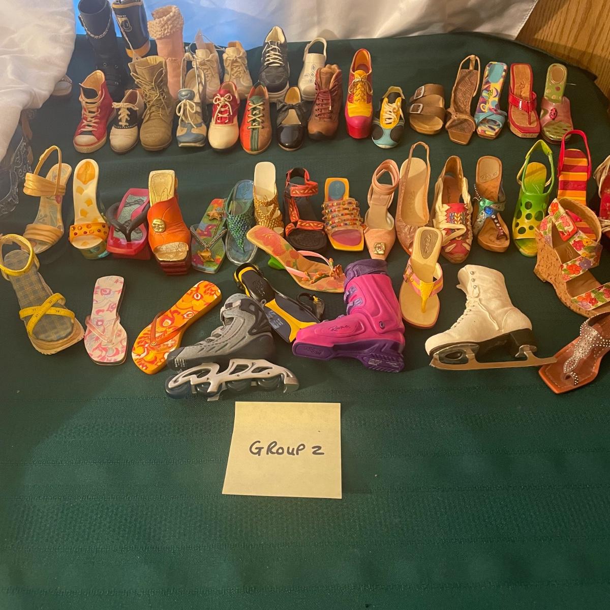 Over 600 collectible miniature shoes from the “˜Just the Right Shoe" collection that includes some rare and hard to find shoes such as three Breast Cancer shoes (Fresia, Sweet Pea & Delicate Daisies). In order to see the shoes more easily in the photos or in person, we have grouped them together with approx 75 in each grouping, but all of these are sold together in this one lot. This lot also includes a large number of original boxes but we were unable to match up with the corresponding shoes. Buy the lot and take the time to match up shoes and boxes and you will add some value! Note that the last two pictures of bags and boxes are all full of the mini shoe boxes.