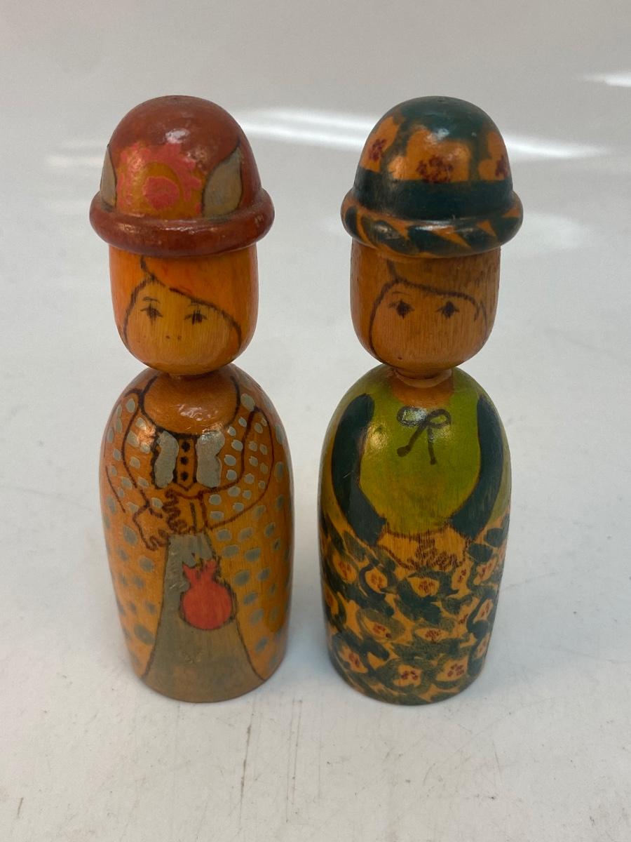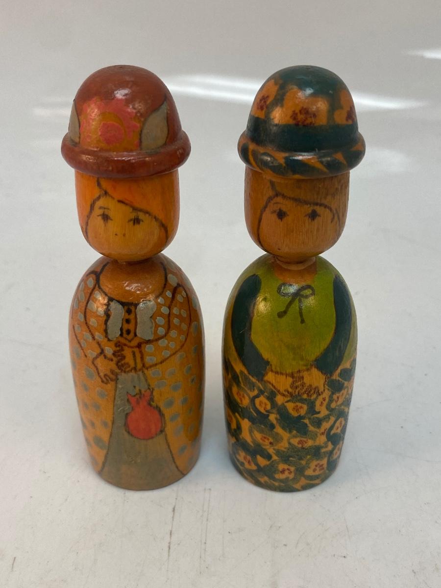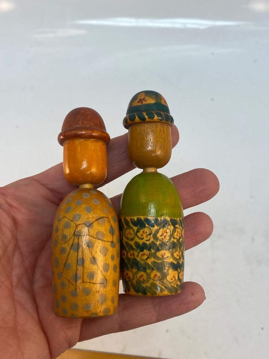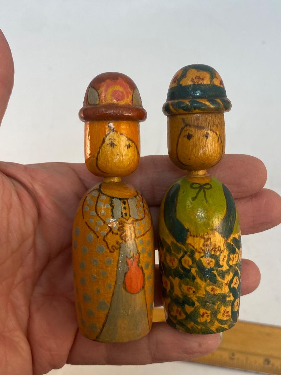 Pair of Vintage Painted Wood Peg Style Doll Figurines