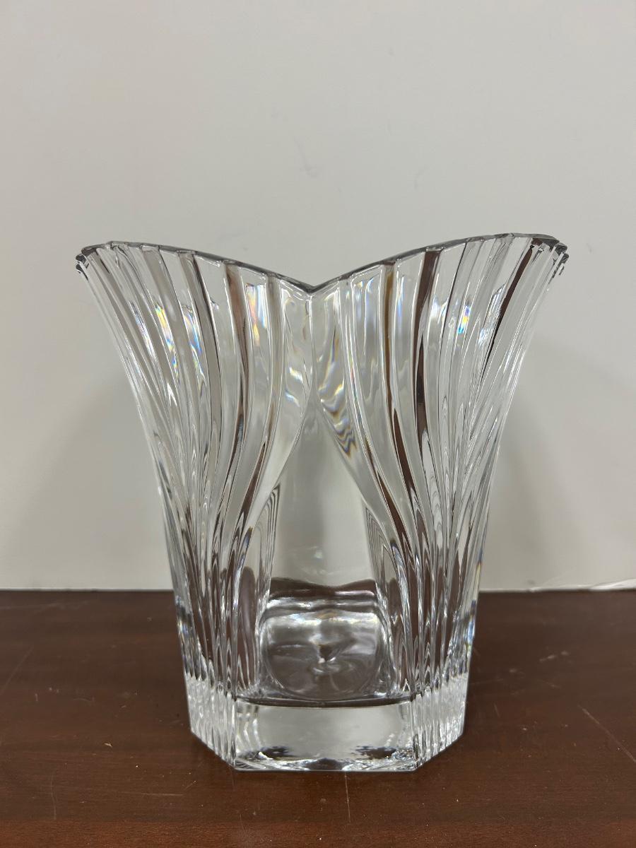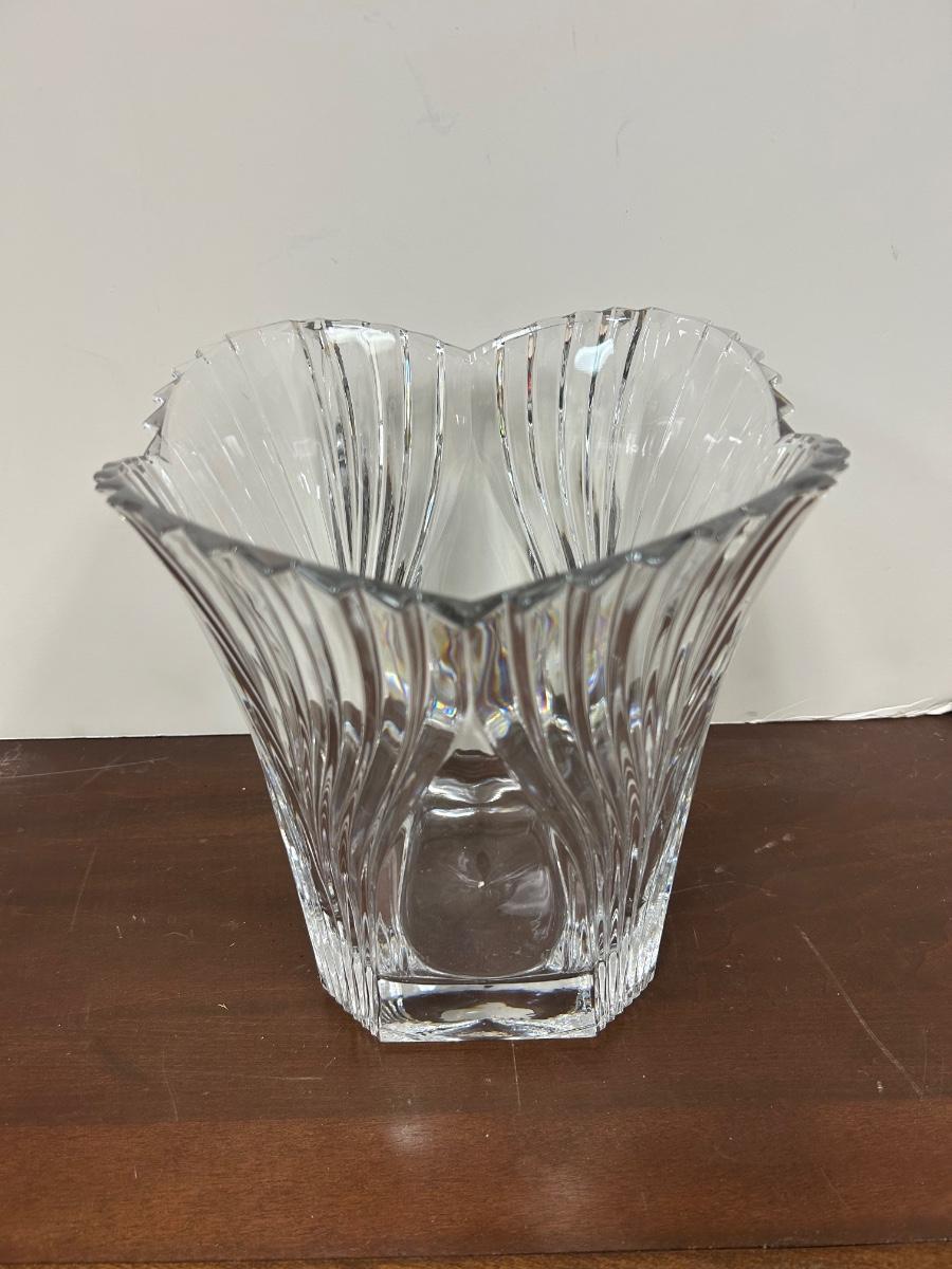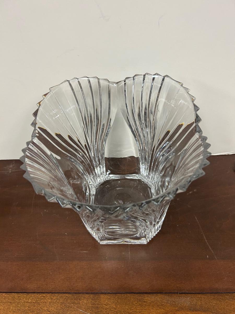 Heavy Crystal Ribbed Fluted Scalloped Top Wide Flower Vase