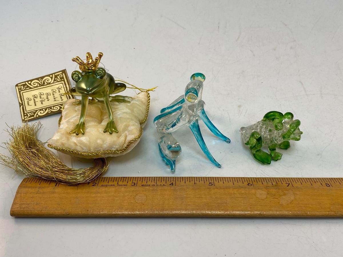 Small Art Glass Frog & Ornamental Frog Prince Figurines