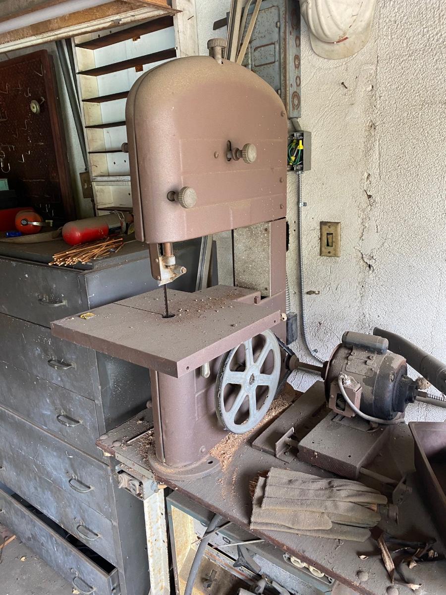 Vintage Band Saw with Worktable Untested. Currently attached to table.