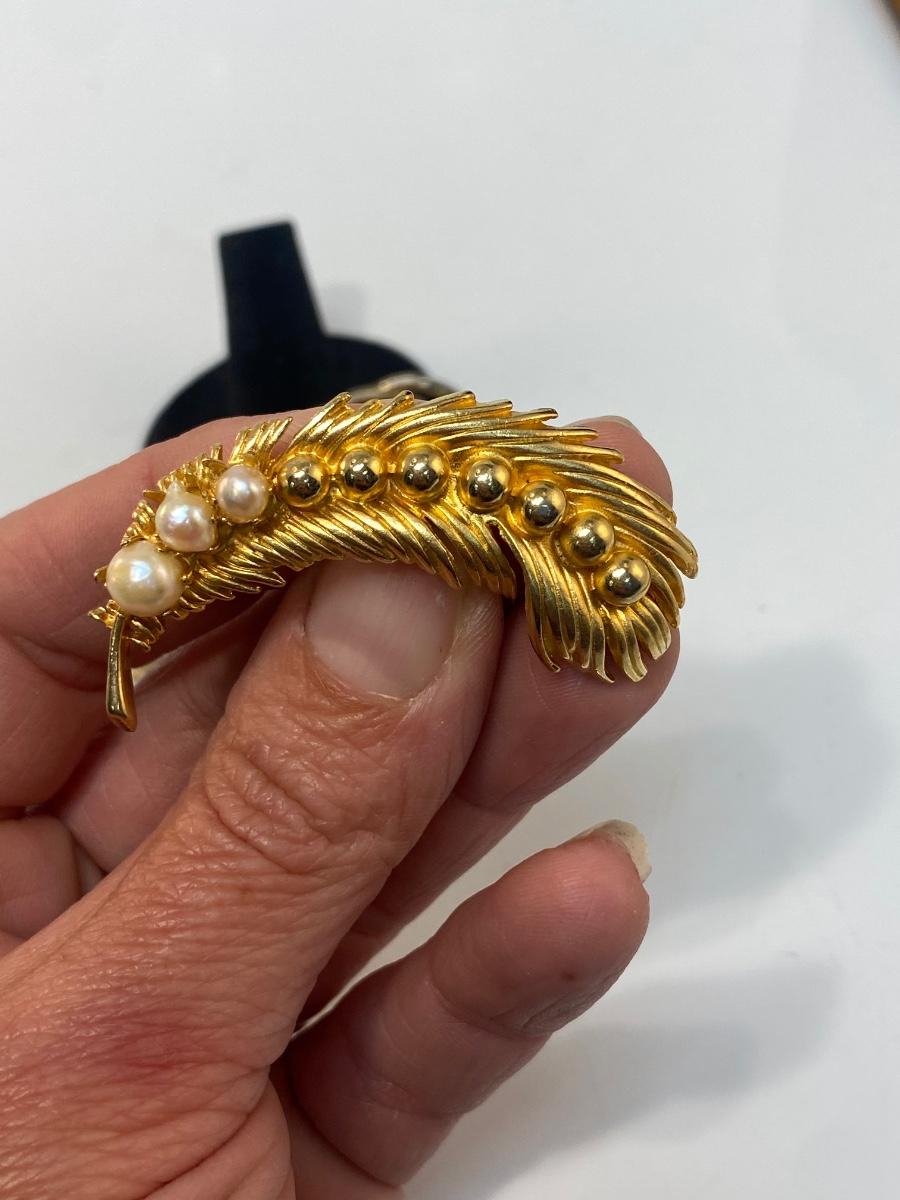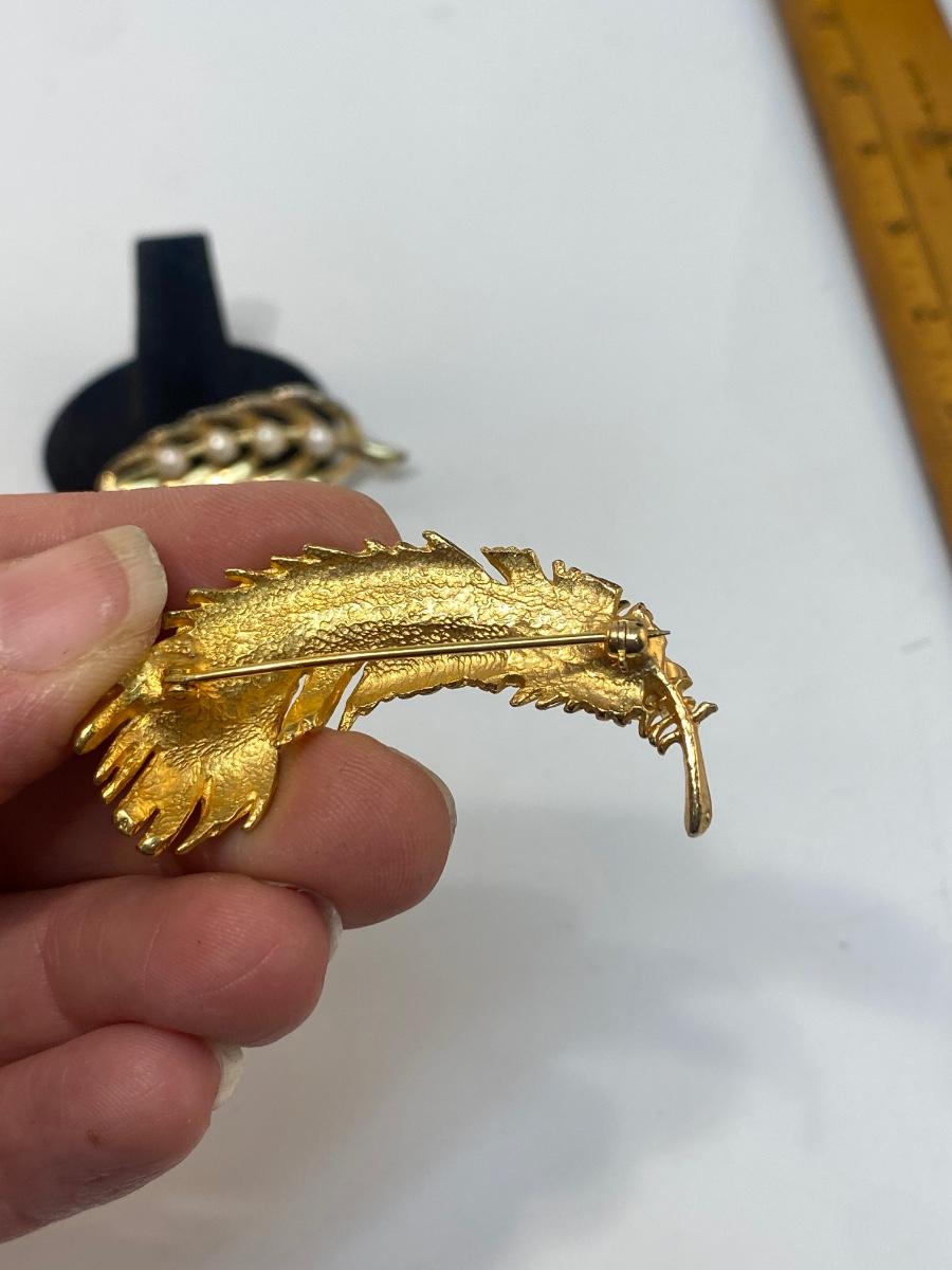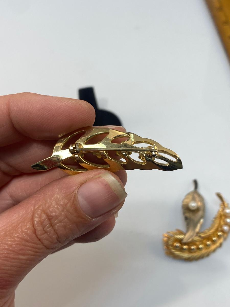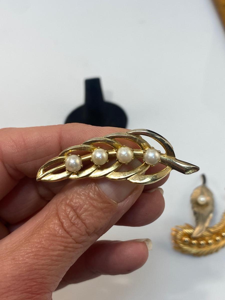 Set of 3 Vintage Retro Leaf Feather Gold Tone & Faux Pearl Fashion Costume Jewelry Pin Brooch Set Unbranded. In good vintage condition. Under 2" size.