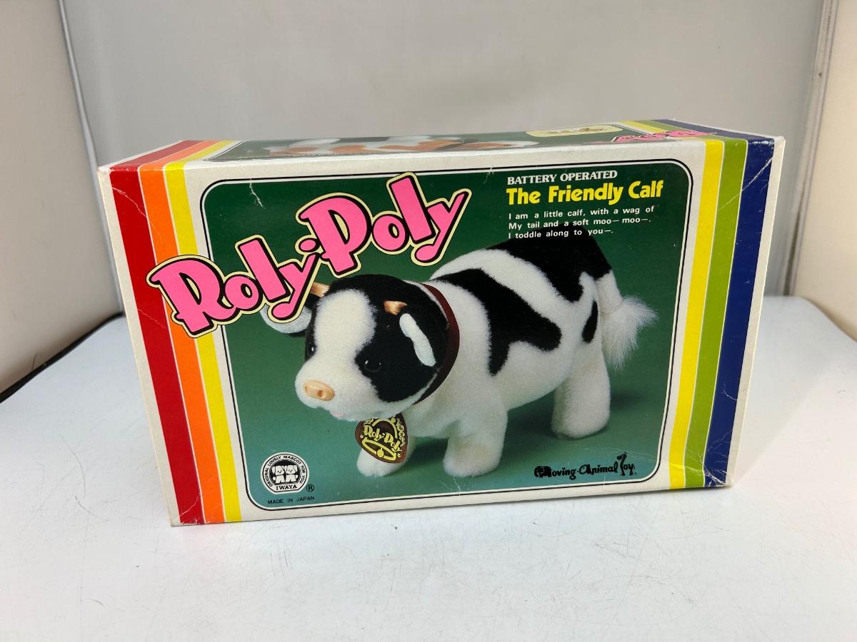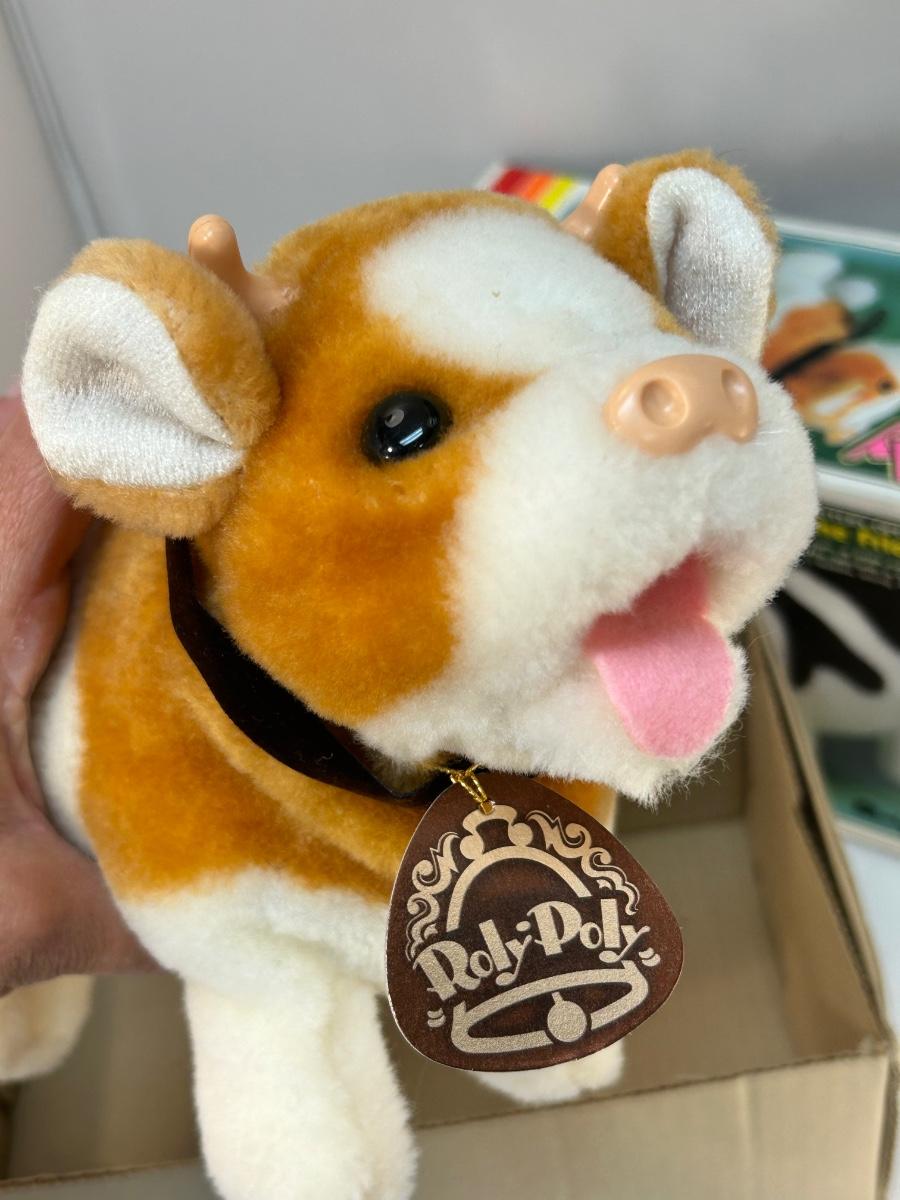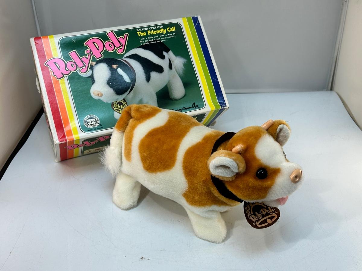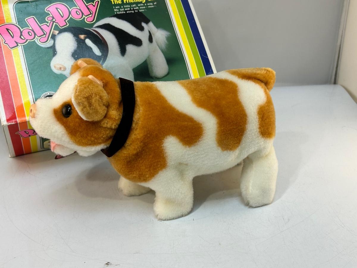 Retro Roly Poly Animatronic Battery Operated Cow Plush Animal. In good condition. Untested but looks like it was never played with. Comes in original box.