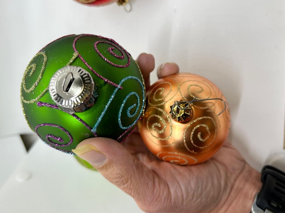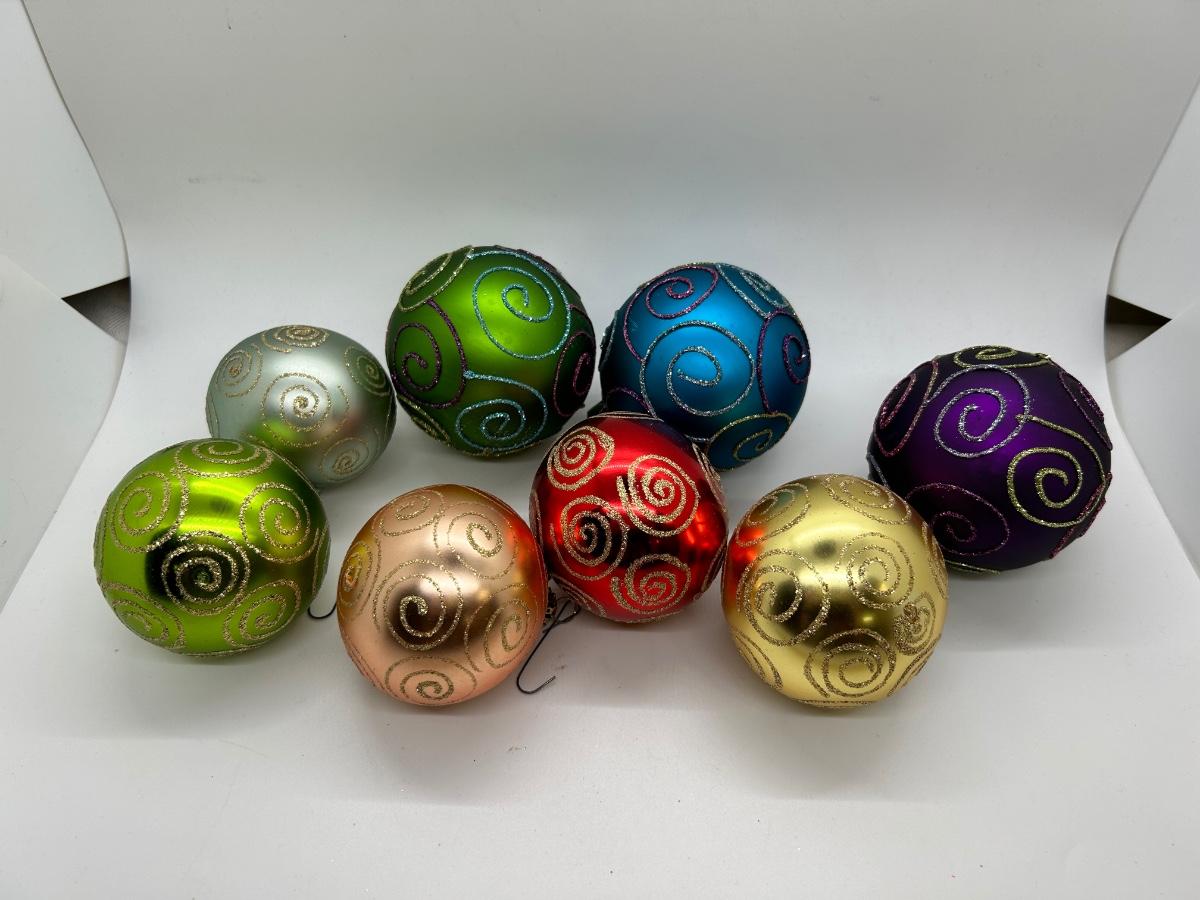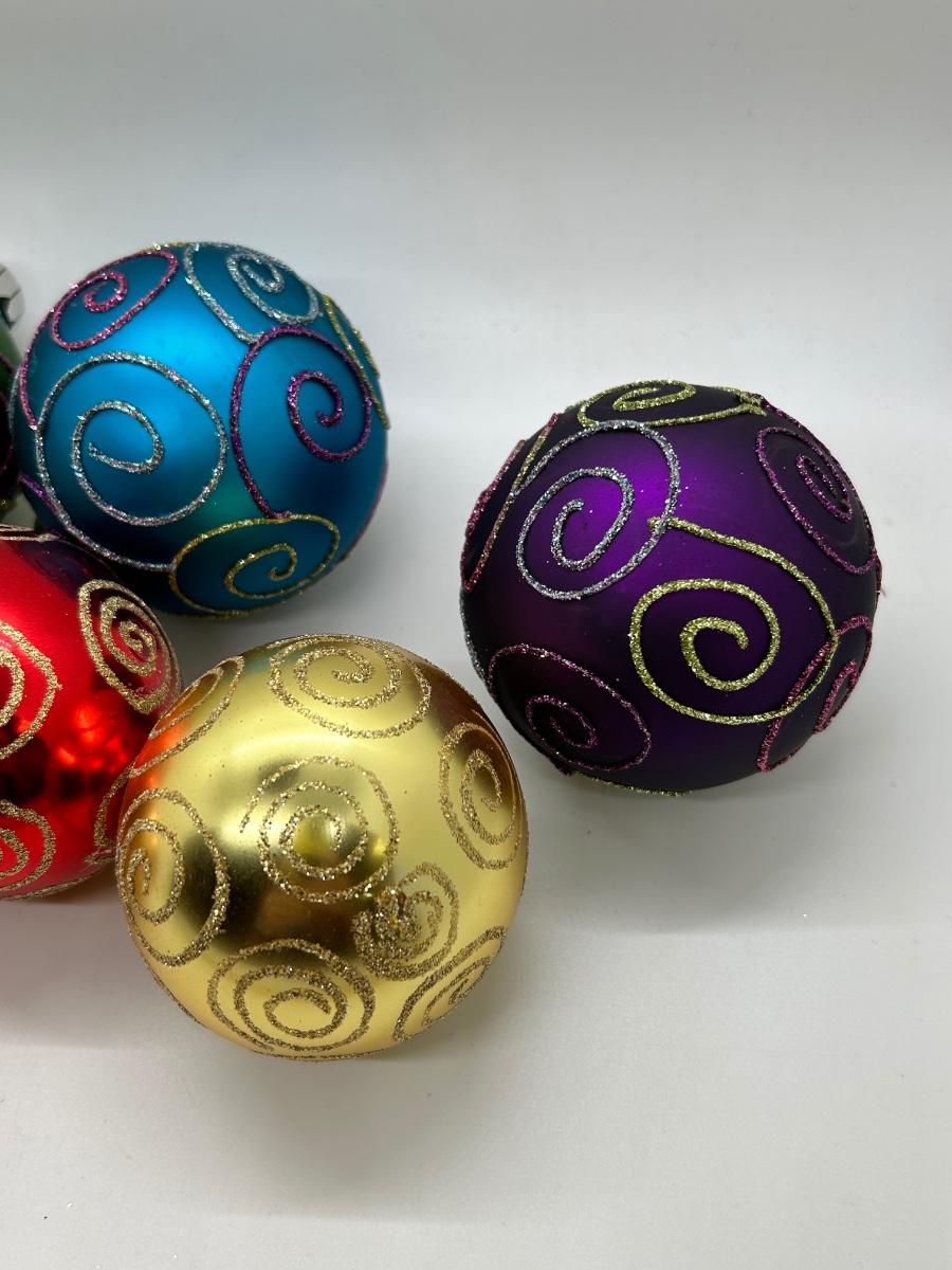 Mixed Color Lot of Glass Christmas Holiday Bulbs with Glitter Swirl Design Two Sizes