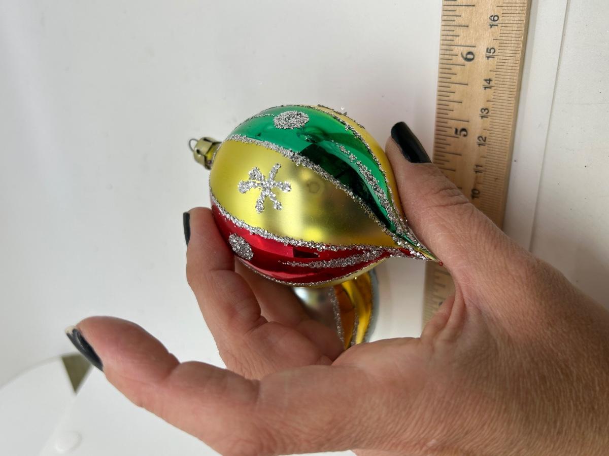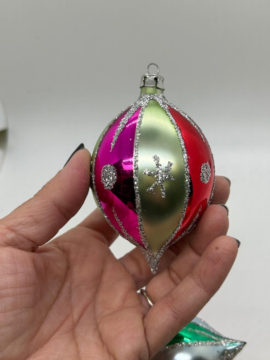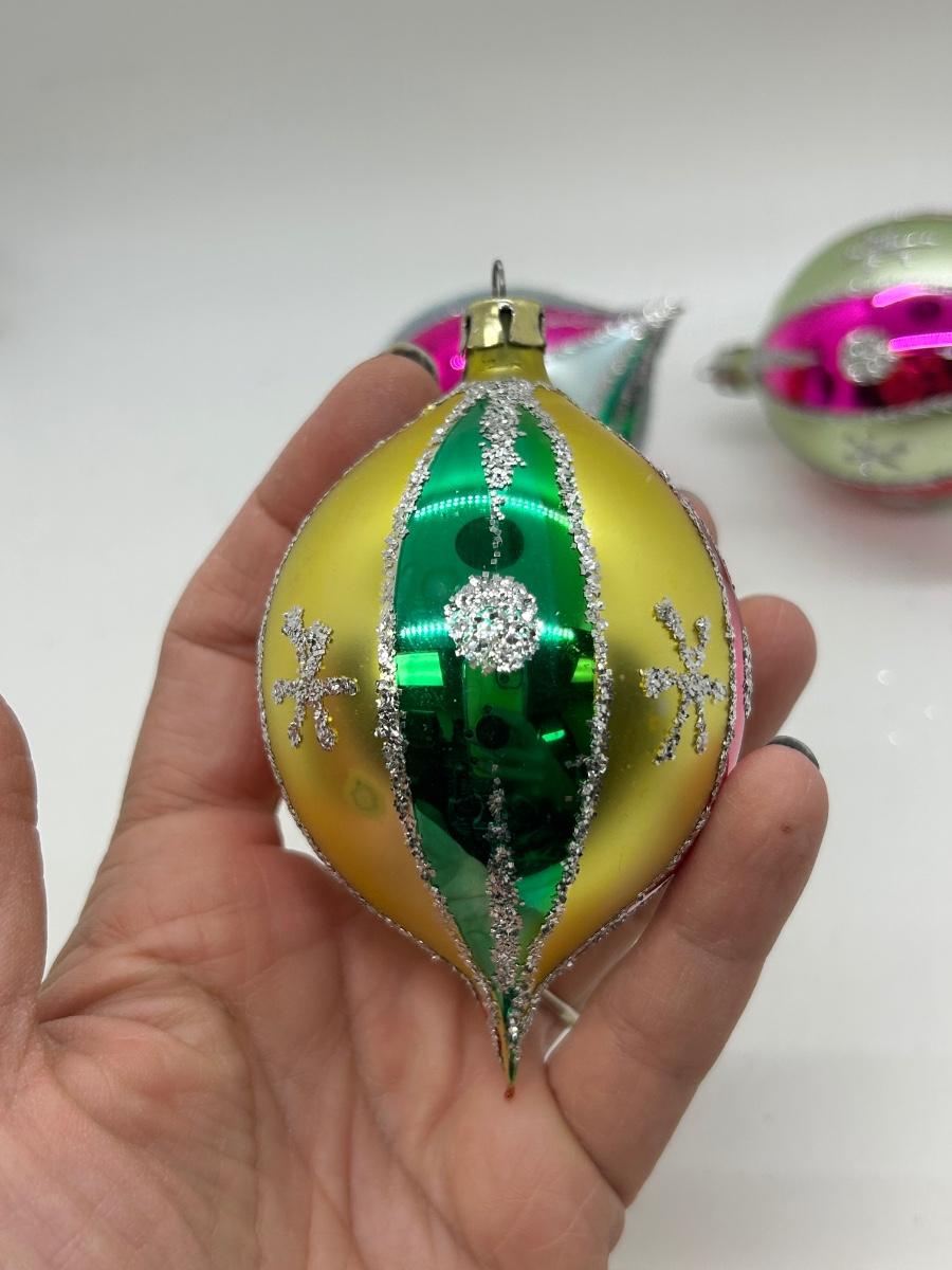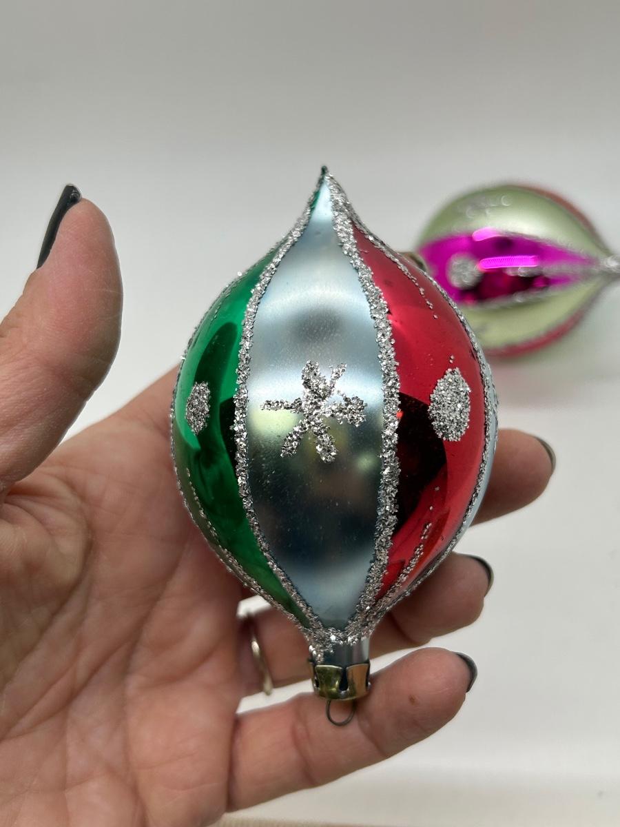 Lot of Three Vintage Colorful Striped Blown Glass Christmas Holiday Tree Ornaments Poland