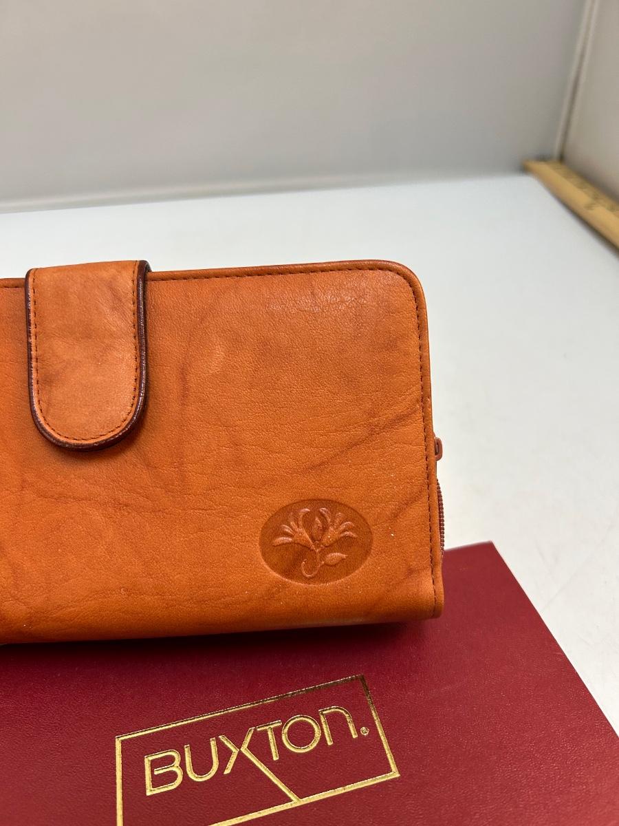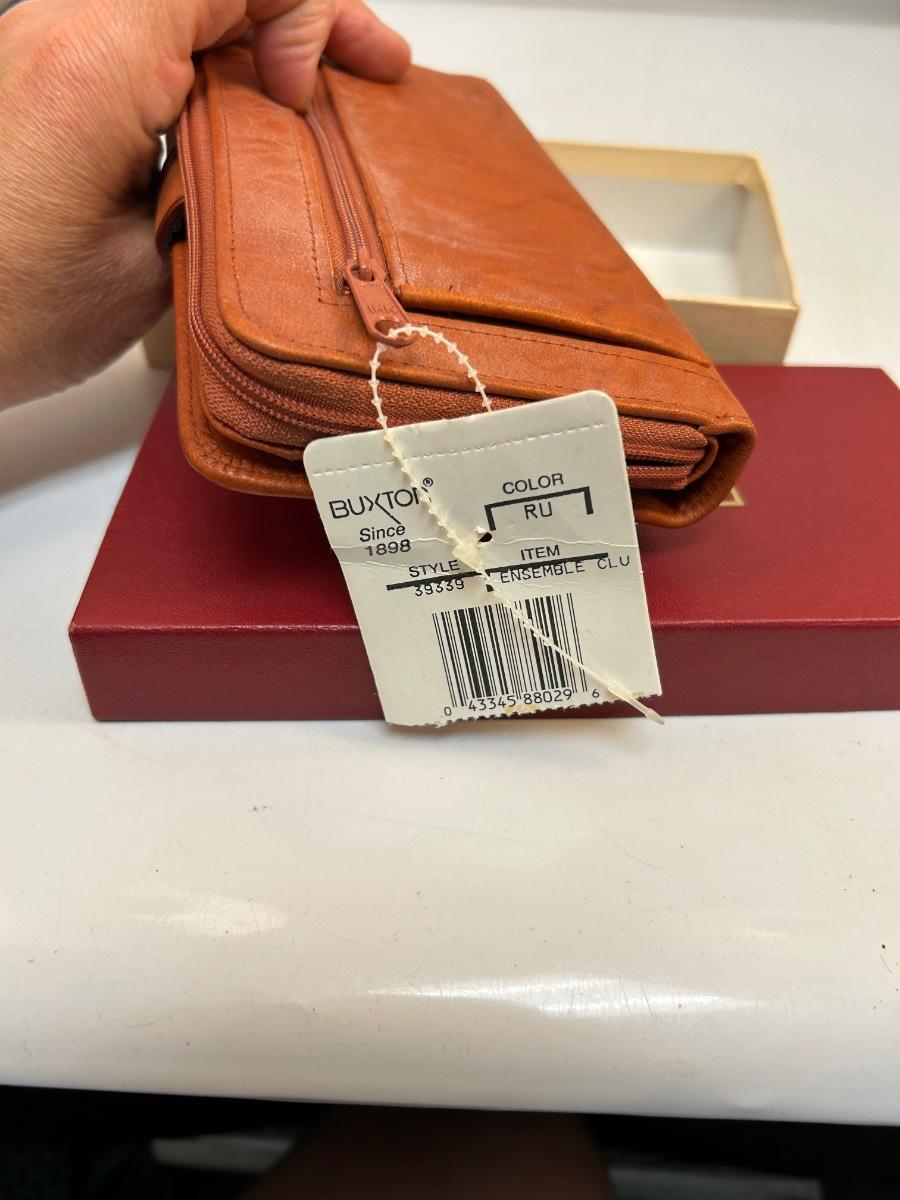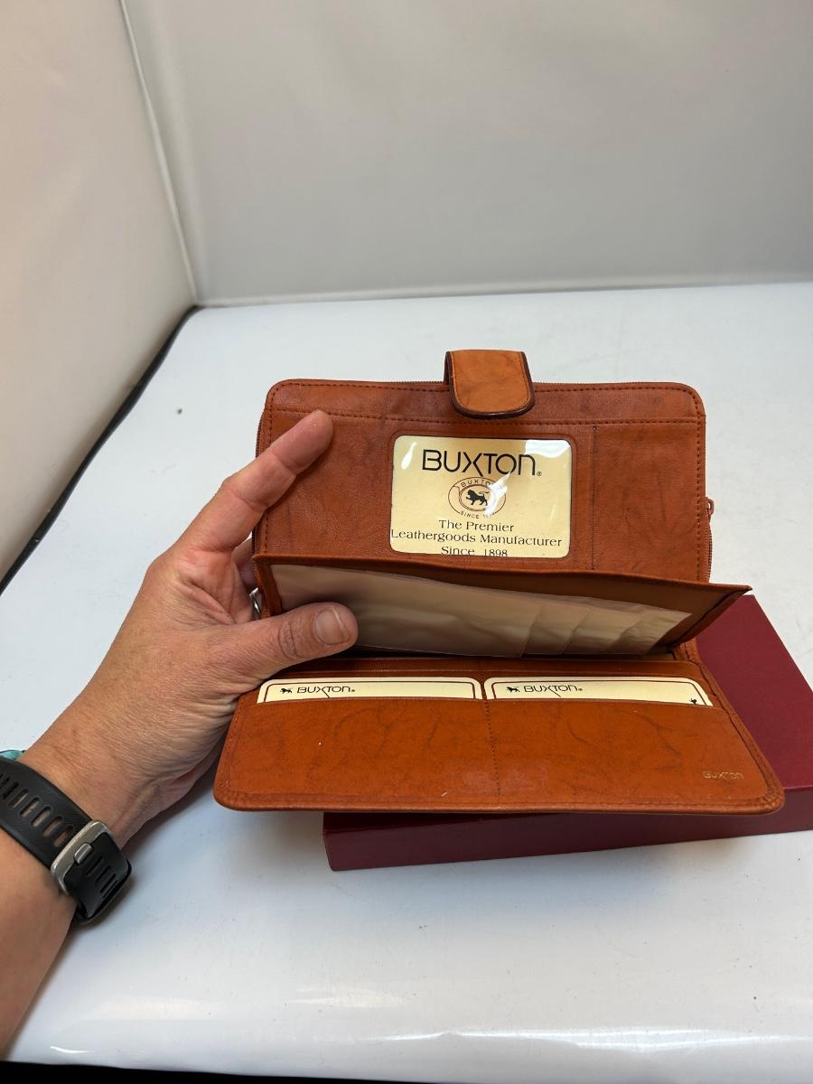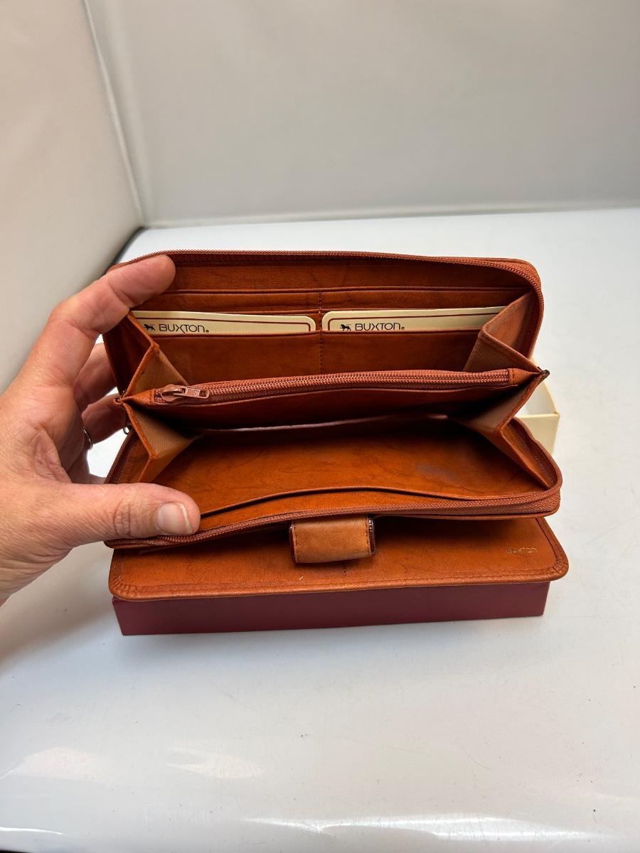 Rusty Brown Leather Wallet Clutch from Buxton New Unused with Box. In good vintage condition, leather is still fairly soft.