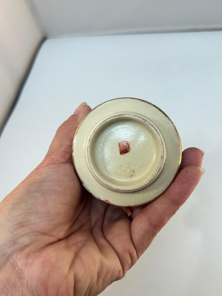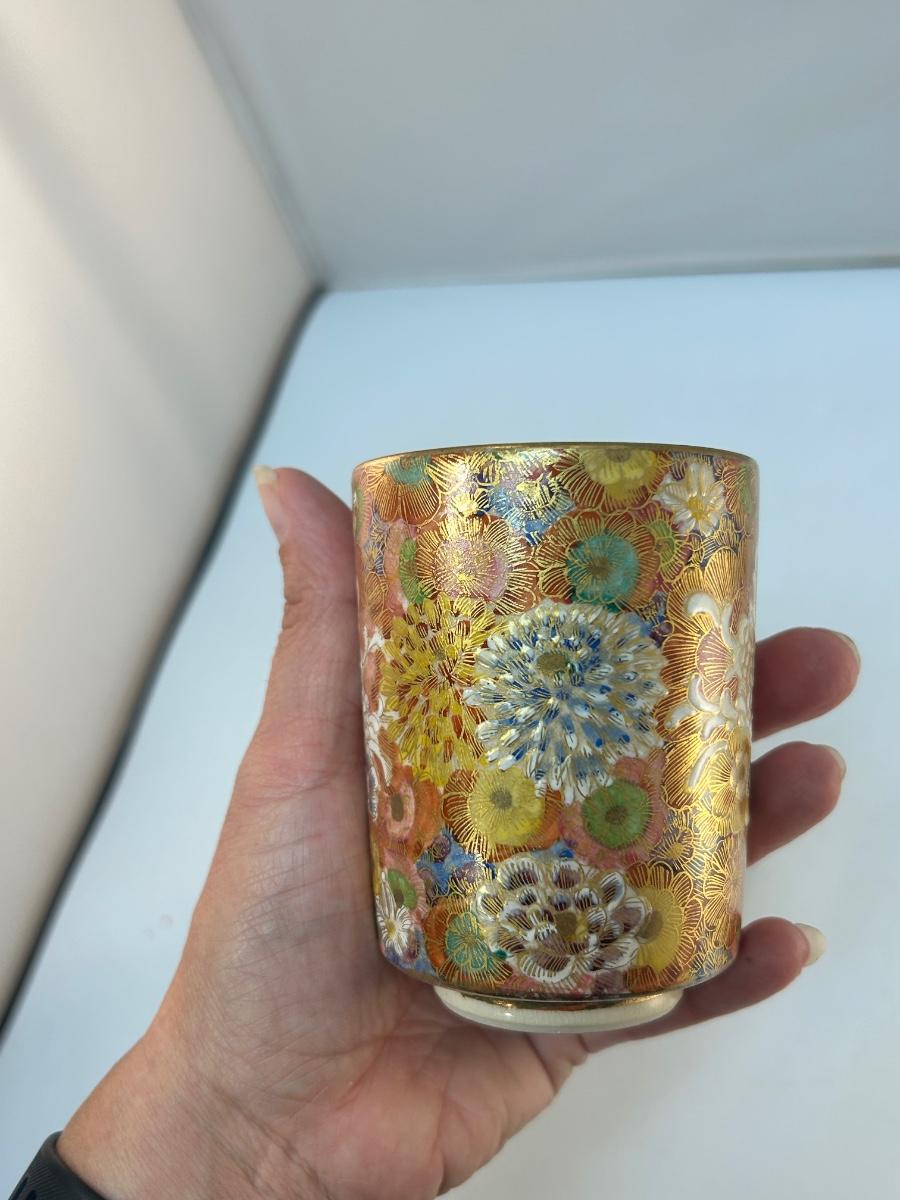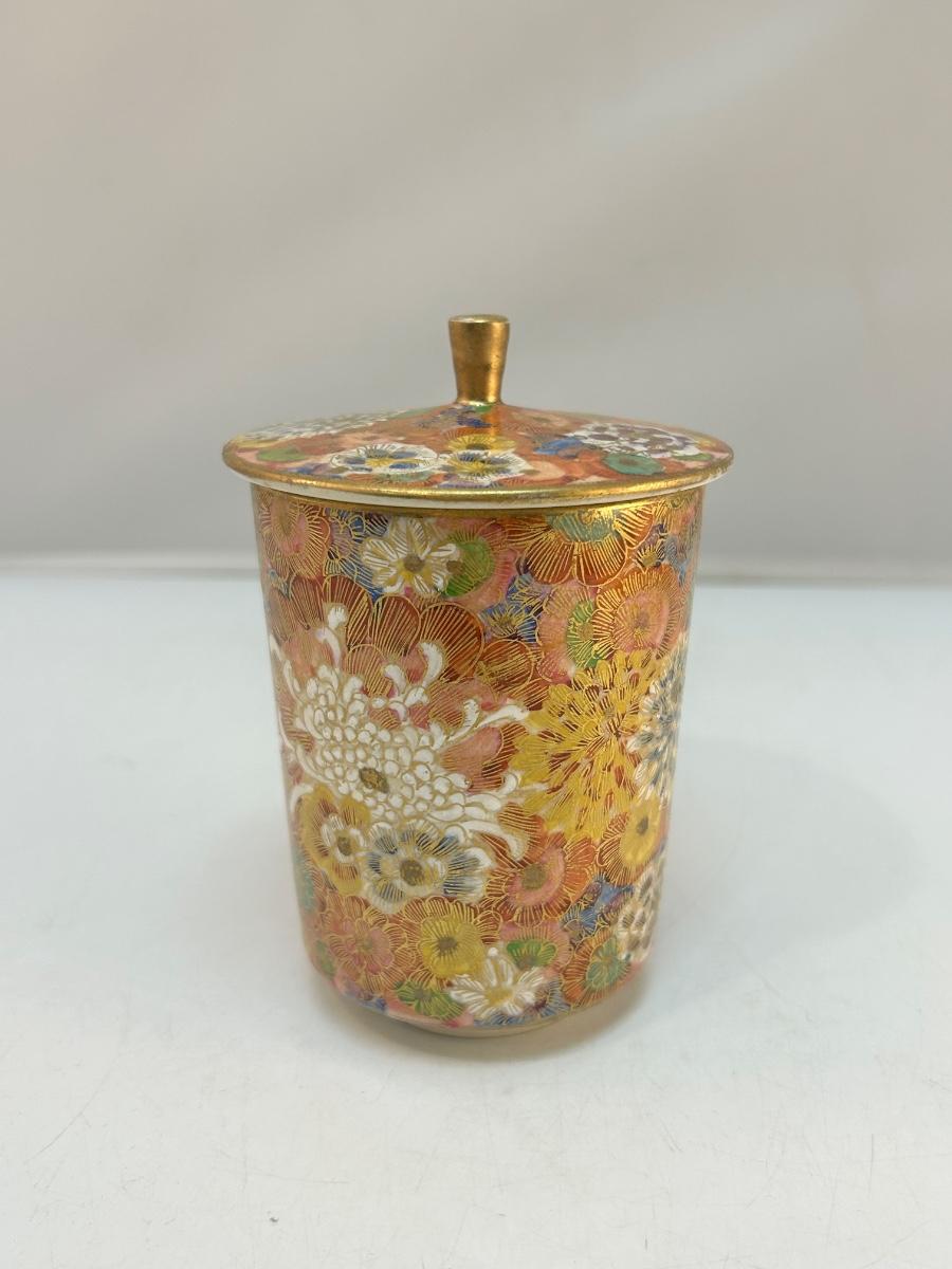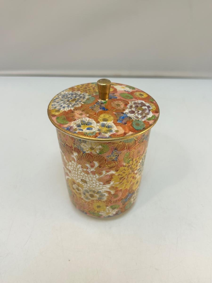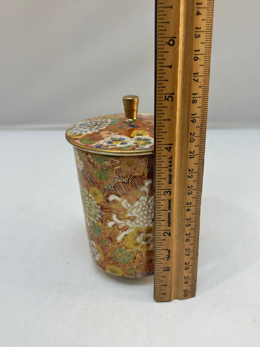 Vintage Heavily Decorated Floral Cloisonne Style Apothecary Jar Kutani Teacup with Lid