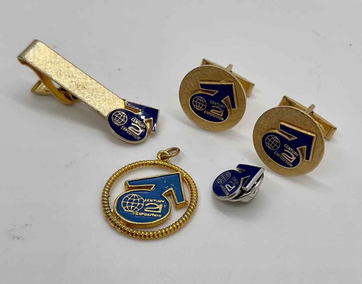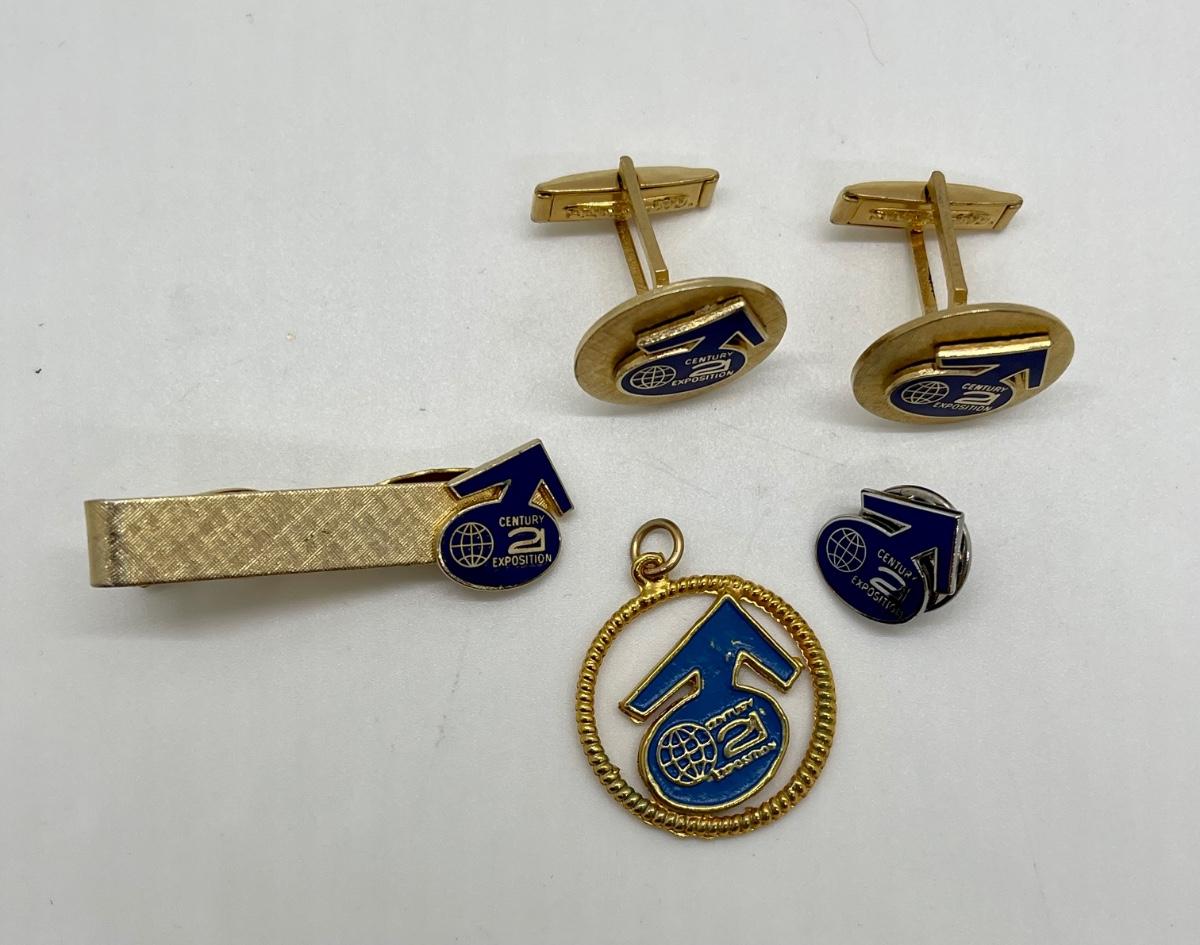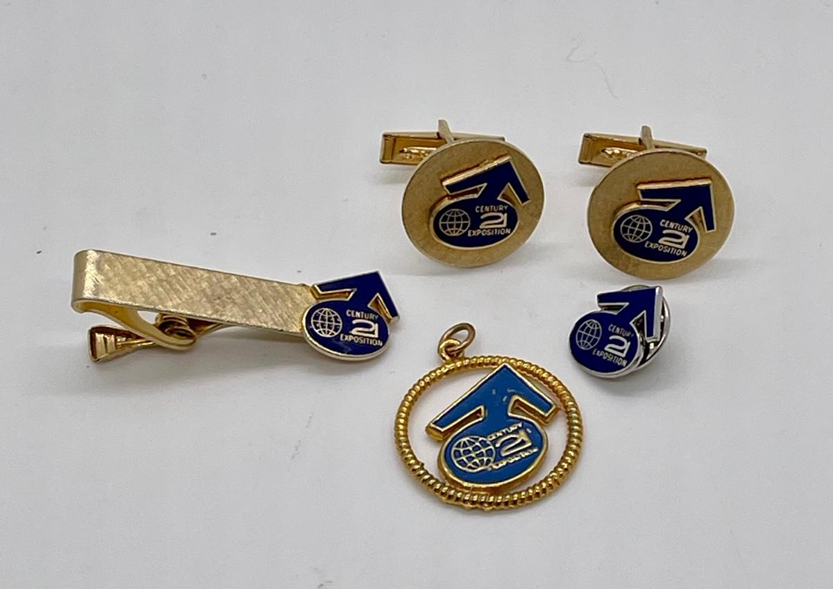 Vintage Advertising Jewelry Century 21 Cuff Links Tie Pin Clip and Charm