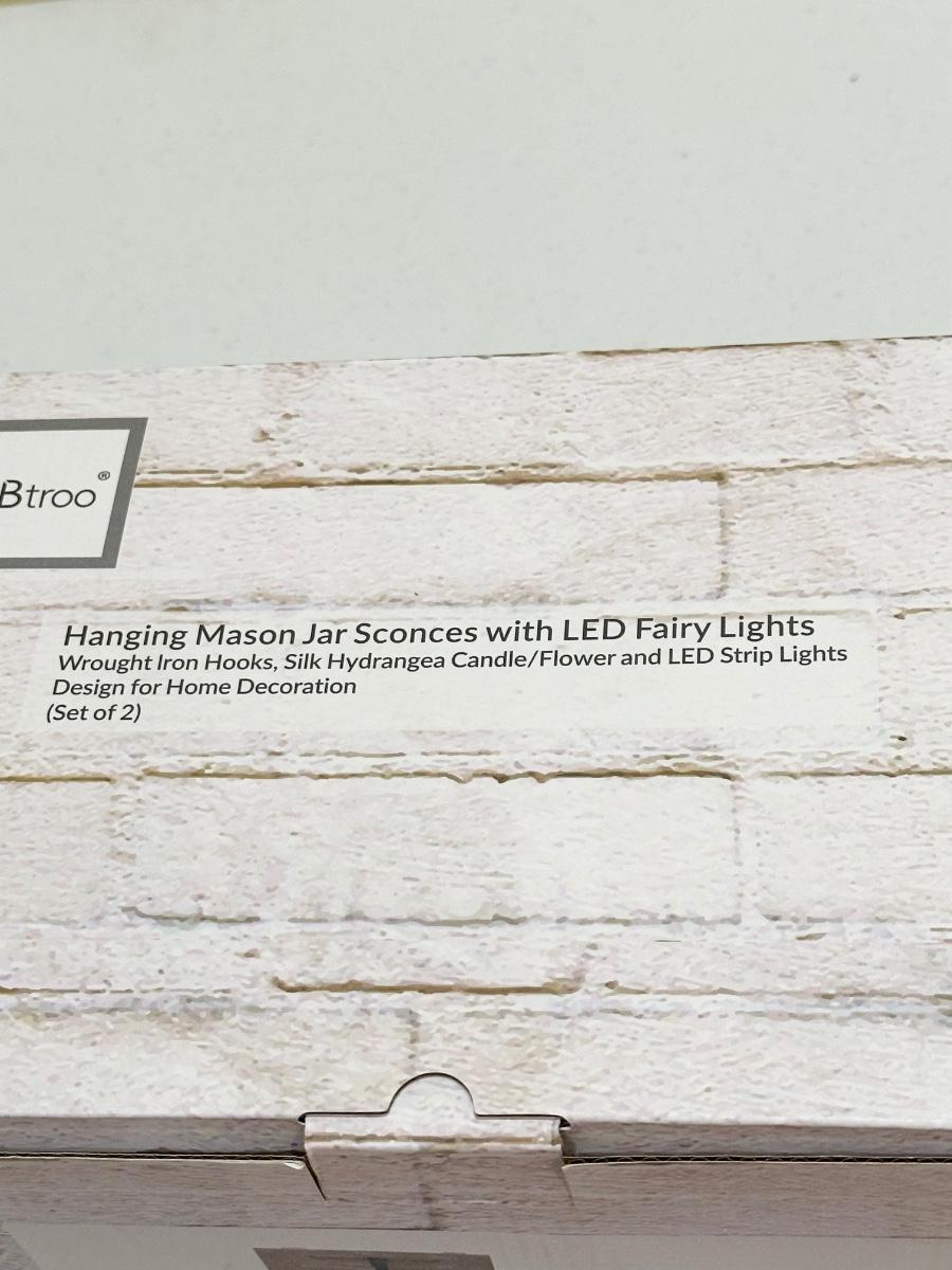 GBtroo ~ Rustic Hanging Mason Jar Sconce's w/Led Fairy Lights