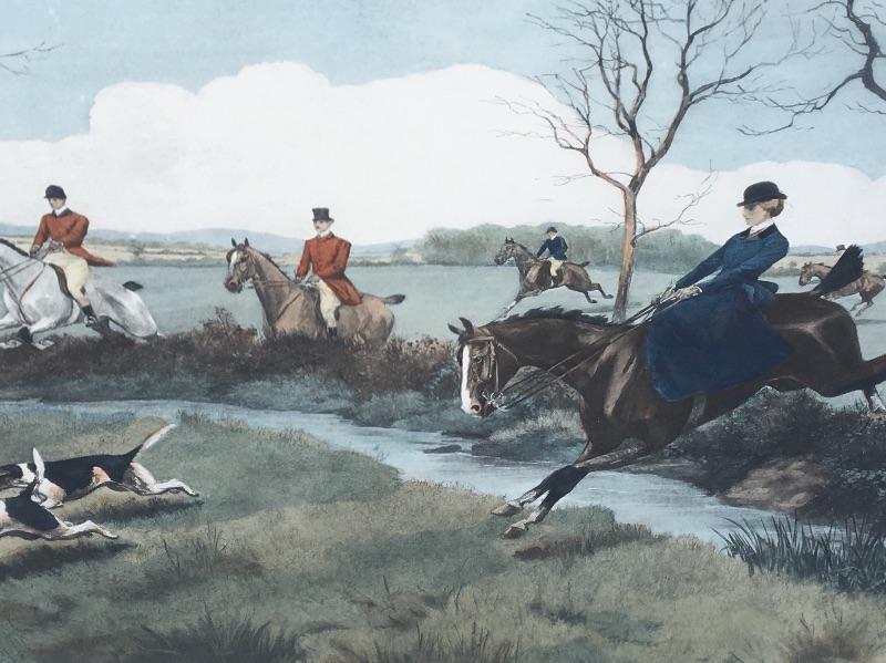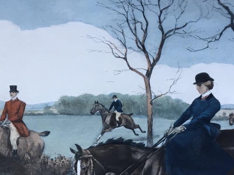 G.D. ROWLANDSON c.1899 Large 26 x 19 “My Lady Leads” Hand Colored Engraving