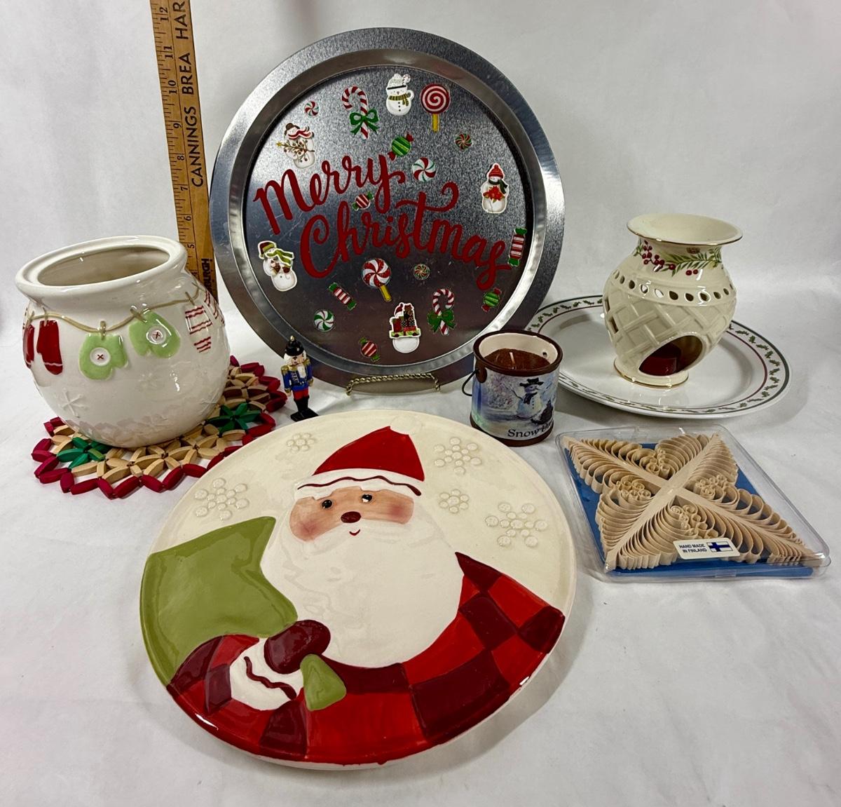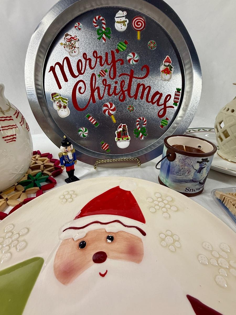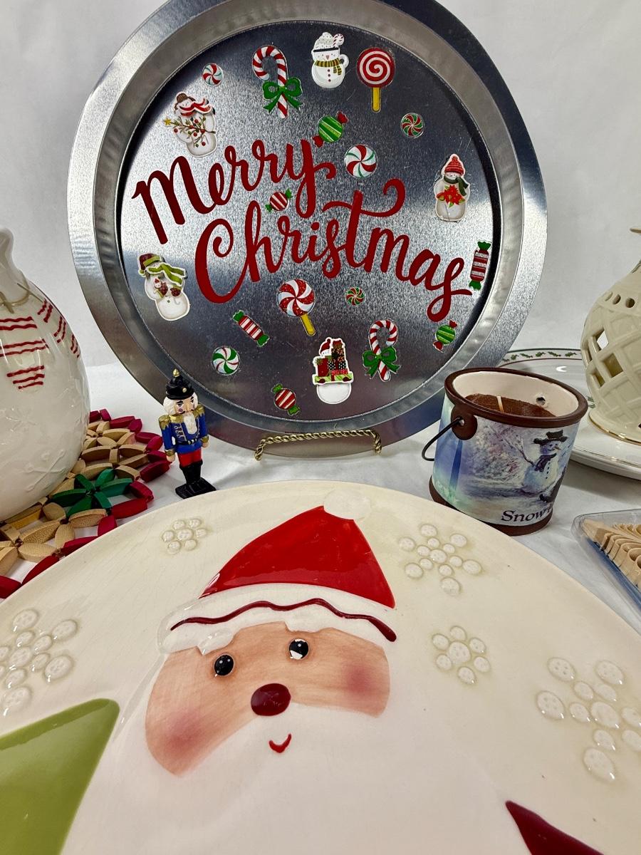 Christmas Decor Lot - plates, platters, Candleholders, etc