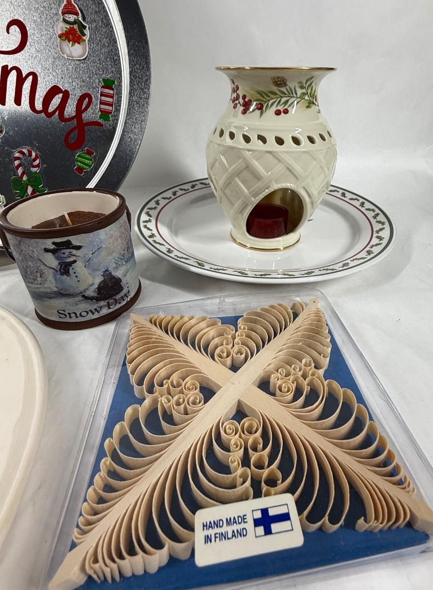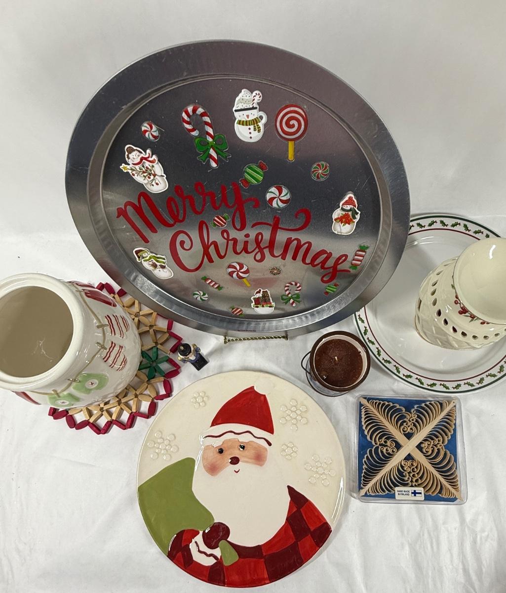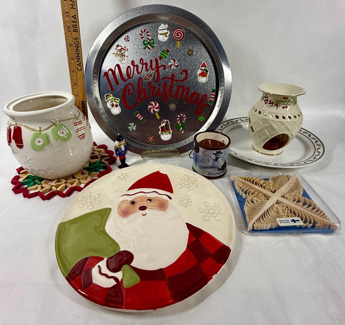 Christmas Decor Lot - plates, platters, Candleholders, etc