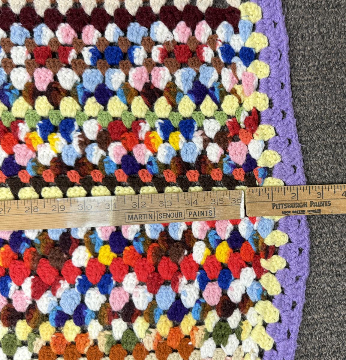 Vintage Crocheted Throw Multi-colored 36" x 74"