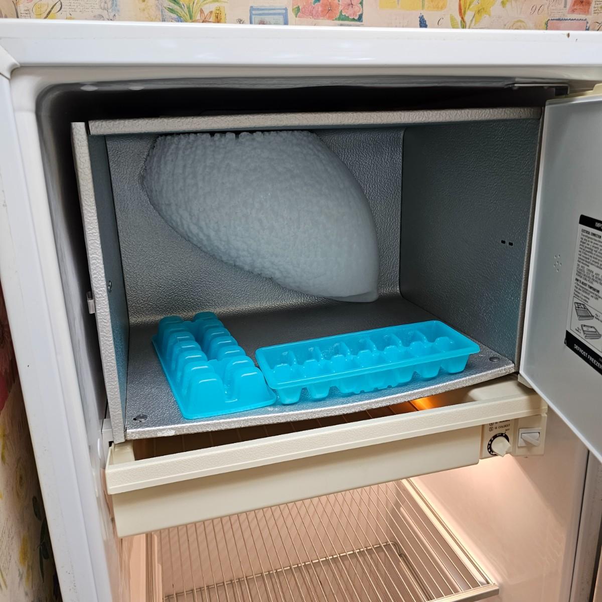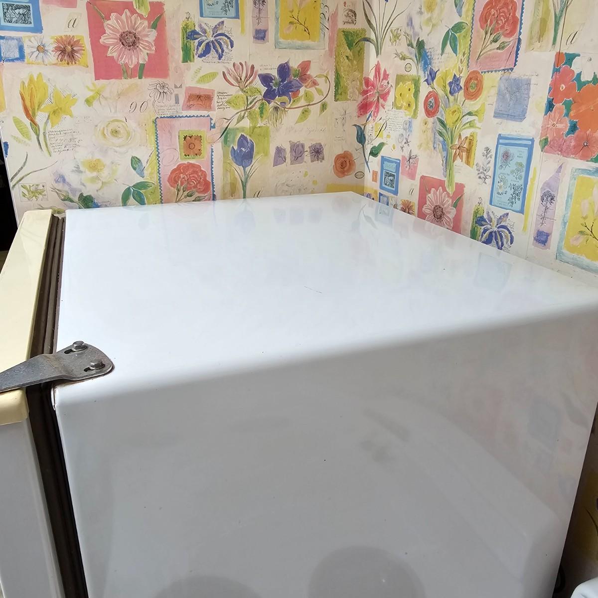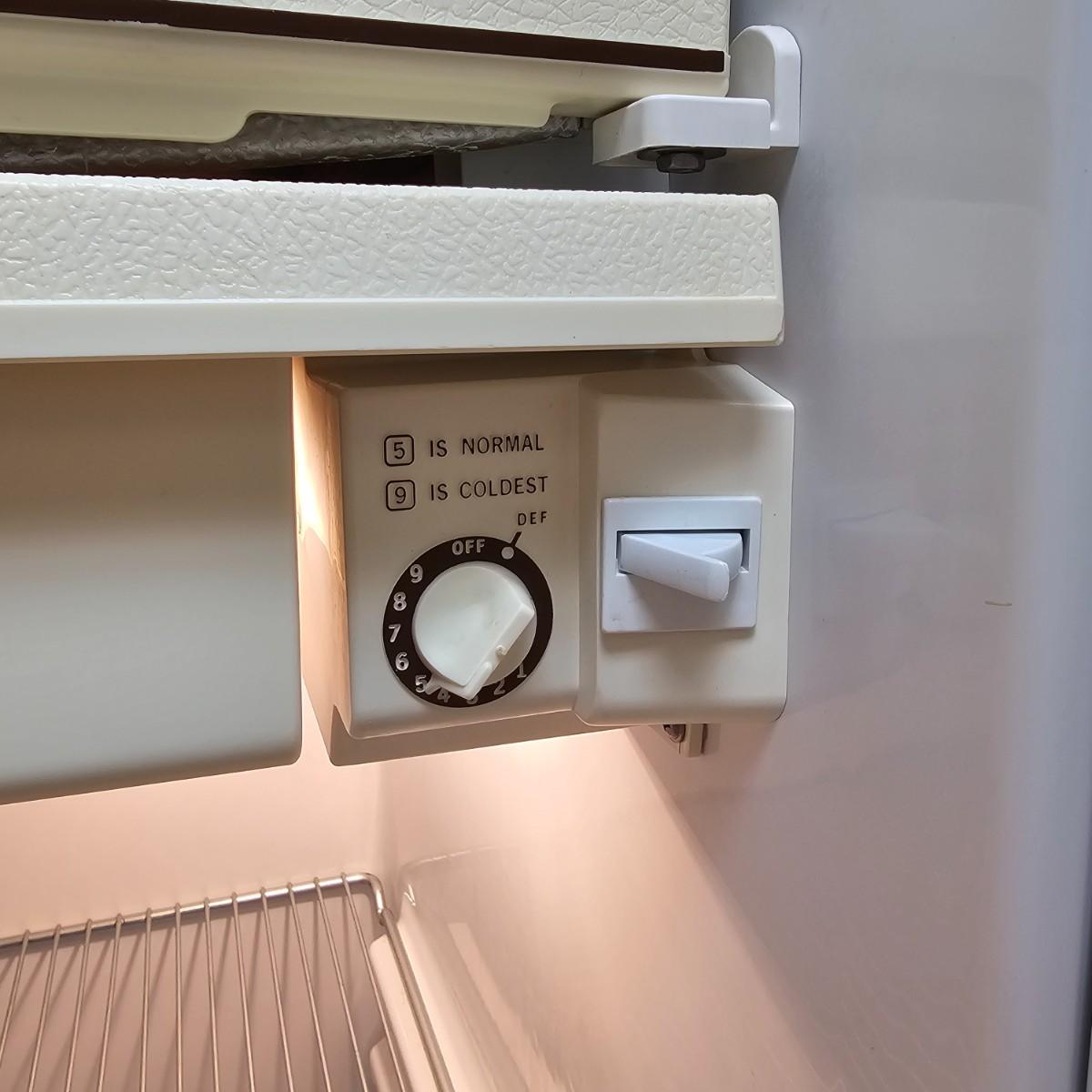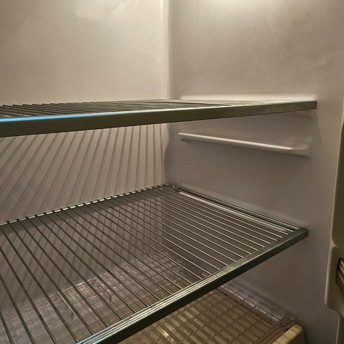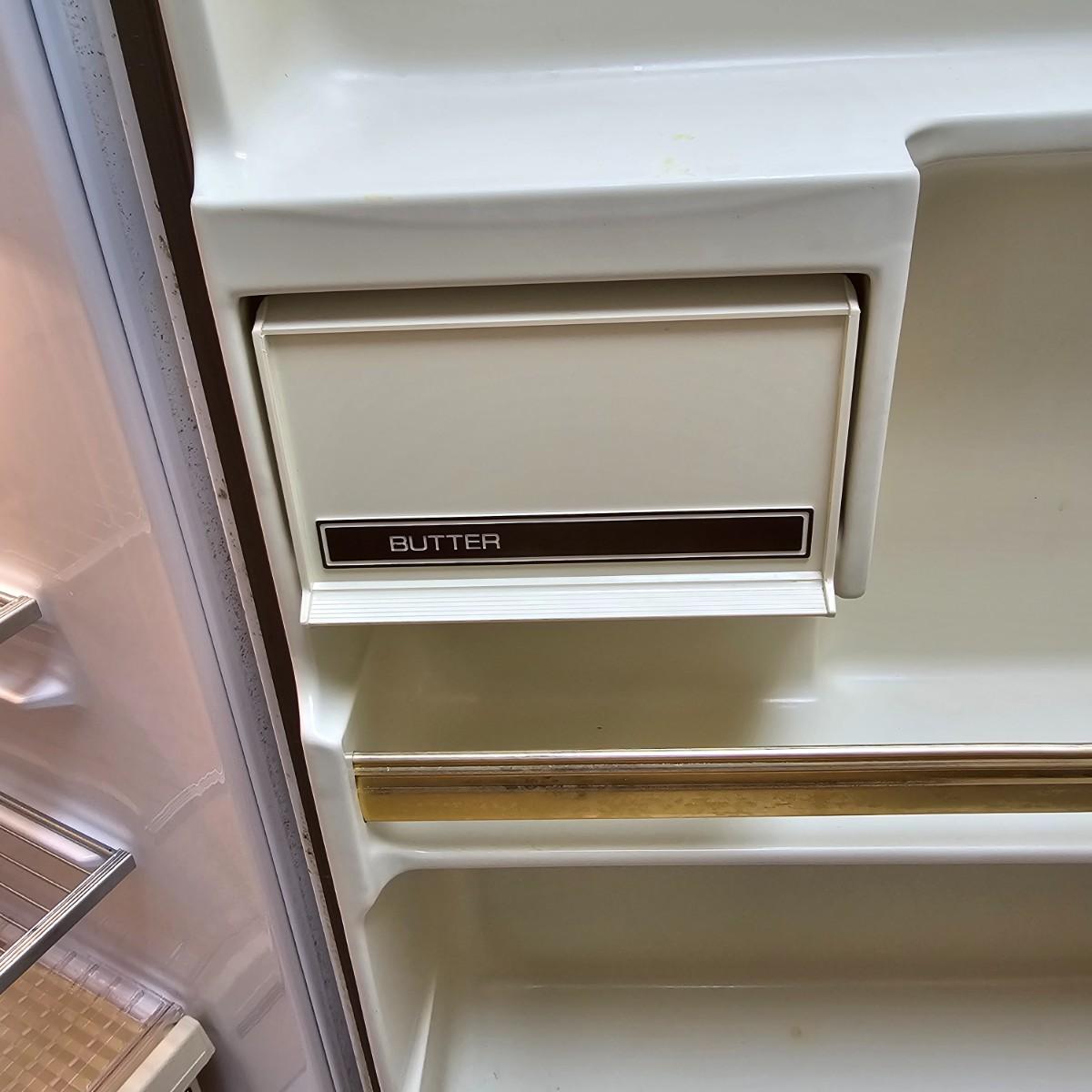 Vintage and stylish G.E. refrigerator with top freezer. Unit has 10.6 cu ft capacity. White with tan accents, this unit measures 24" x 26" x 57"H, powered on when plugged in. Note: there is a block of ice in the freezer that cannot be removed at this time. See photos for details. Local pickup only. Winning bidder must bring assistance to help move and load this item due to its weight and/or size.