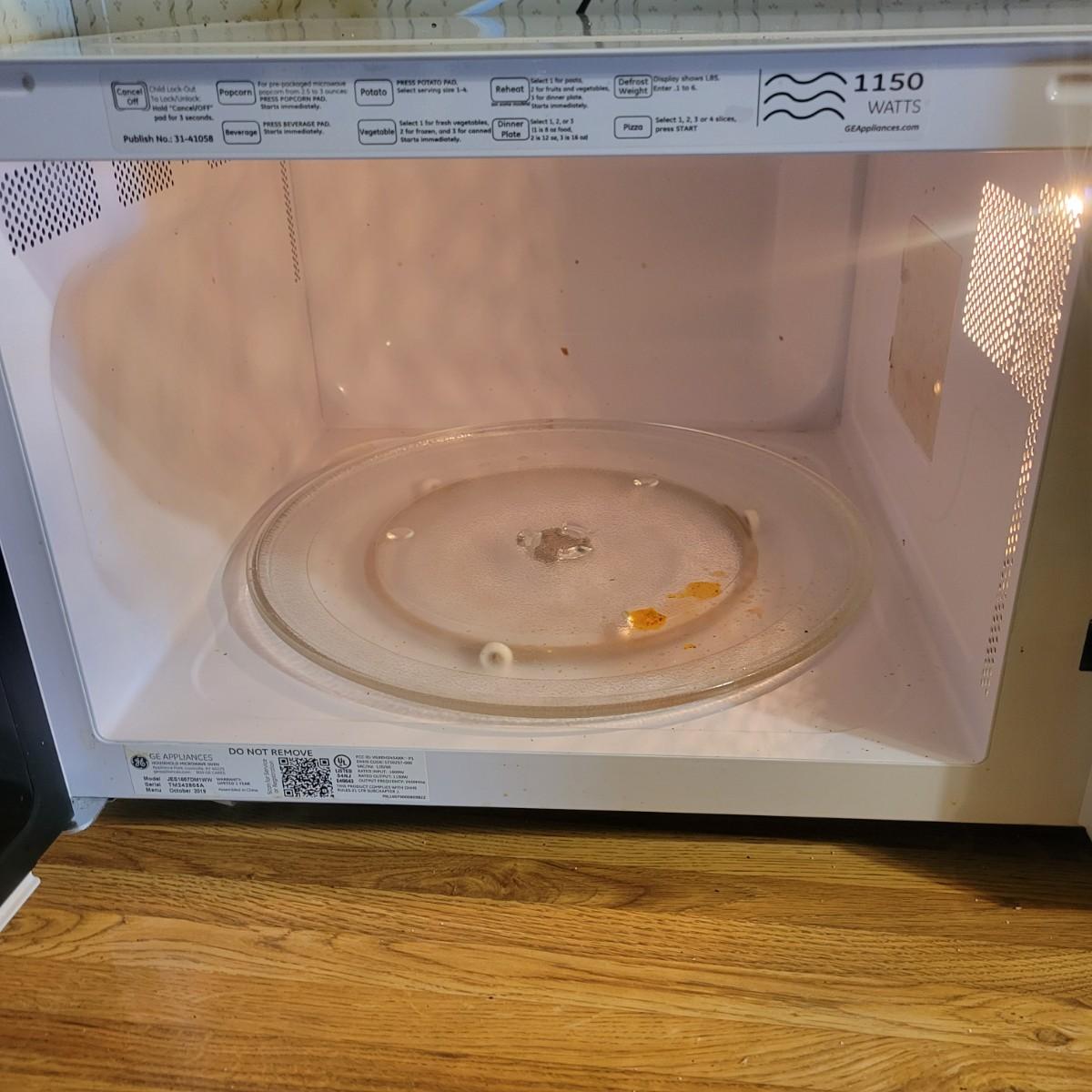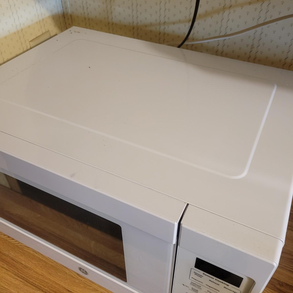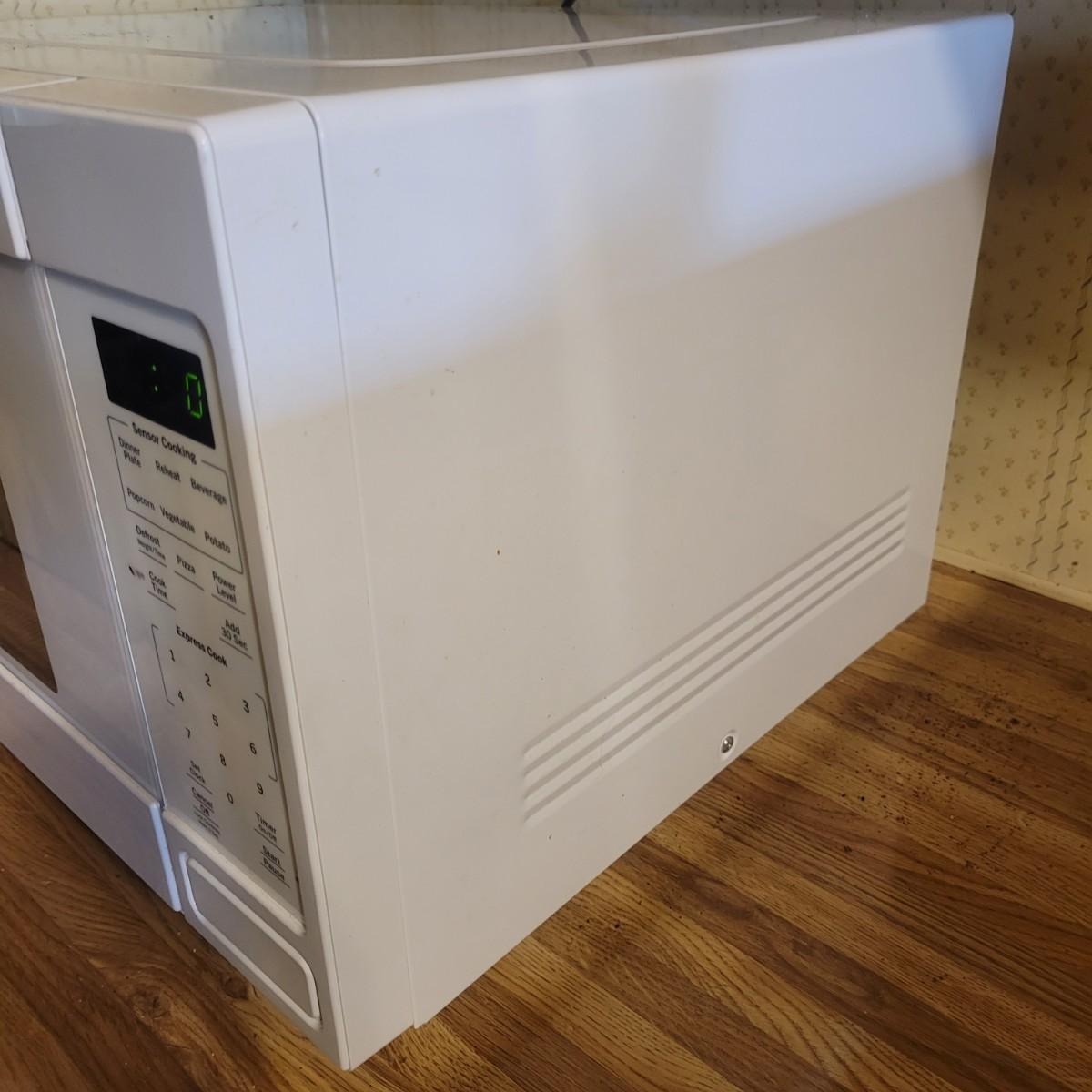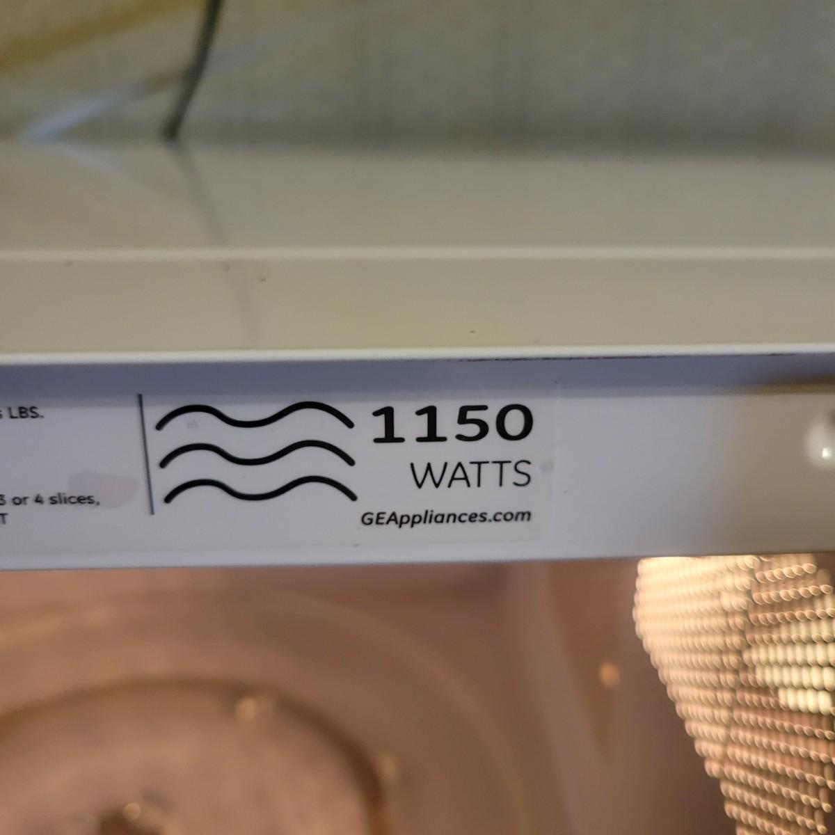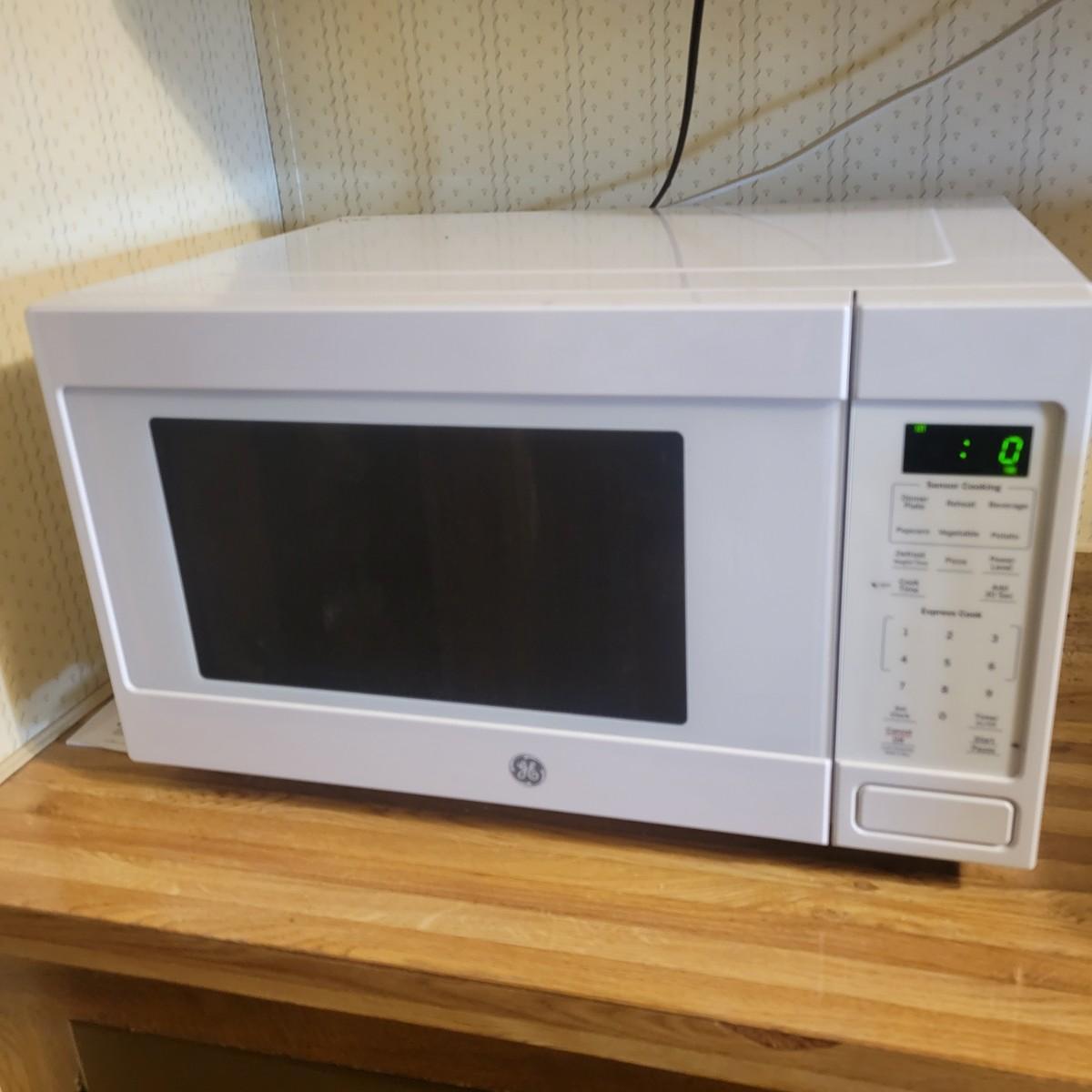 A GE 1150watt microwave that is in good condition with no notable damage. Microwave has been used and works. Measures approximately 22" x 16" x 13".