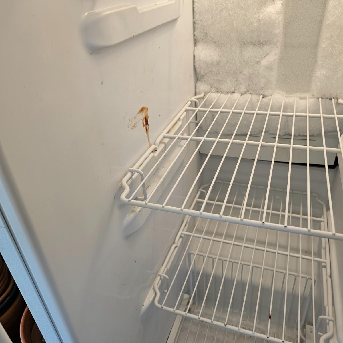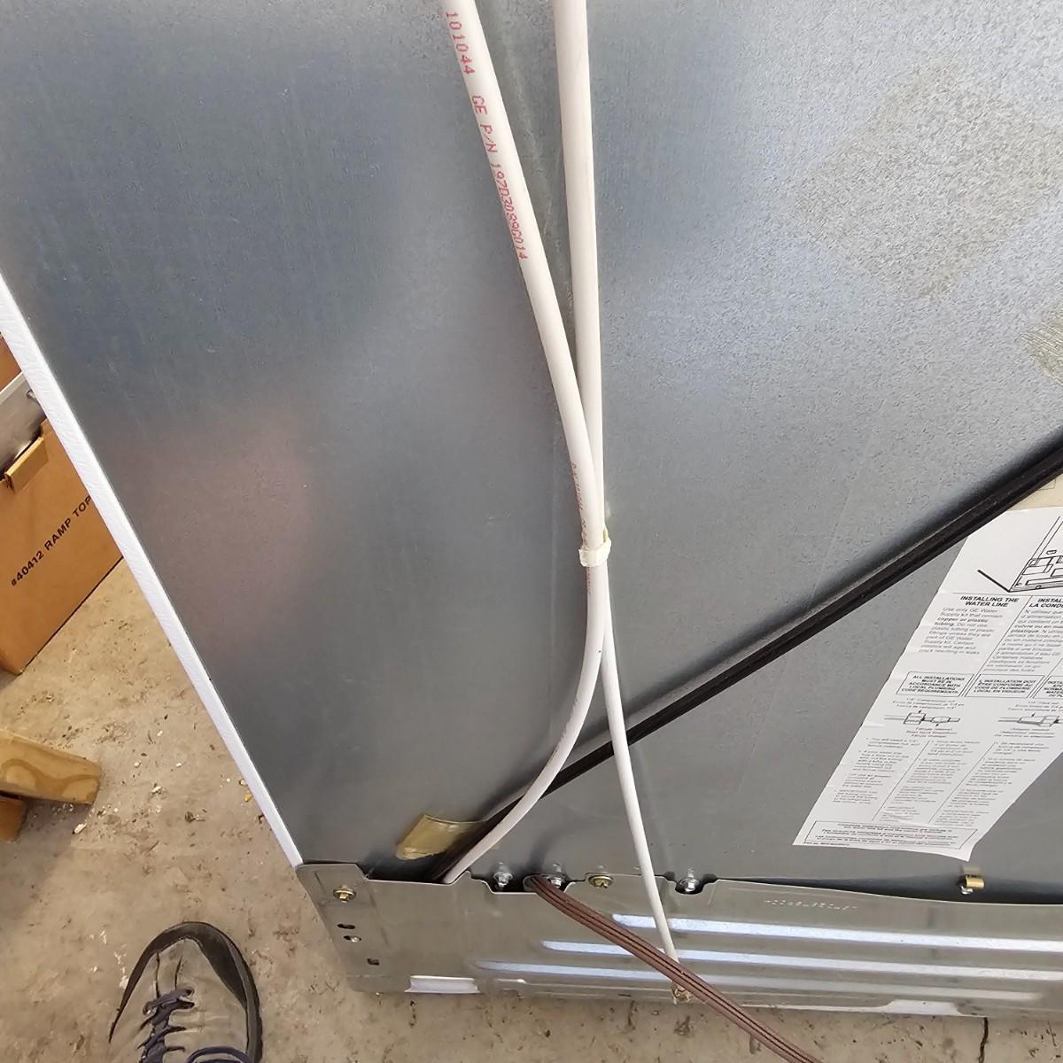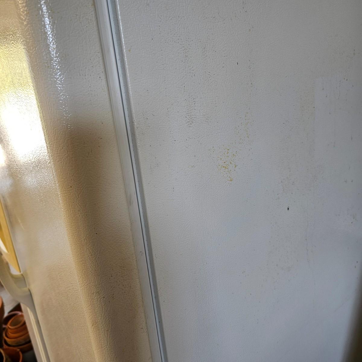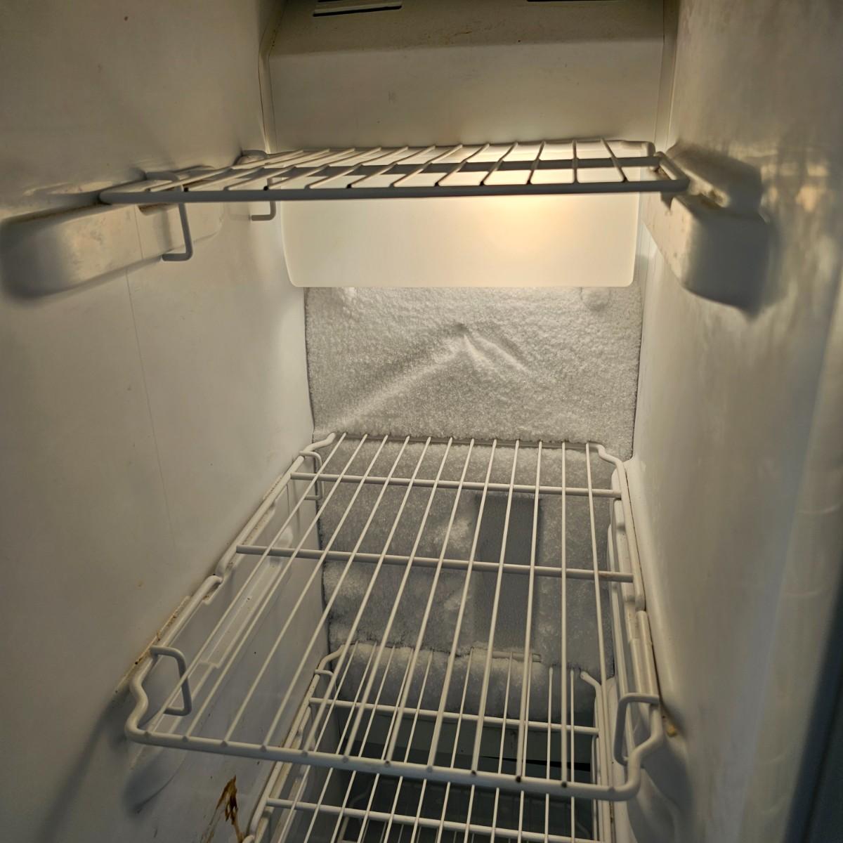 Textured white finish GE refrigerator/freezer with ice and water dispenser in the door. Many individual compartments inside, pull out drawers. Individual temperature controls for each side. Unit measures 36" x 31" x 70"H. Rolls forward on wheels. Needs some cleaning. Fridge is in garage, easy access. See photos for details. Local pickup only. Winning bidder must bring assistance to help move and load this item due to its weight and/or size.