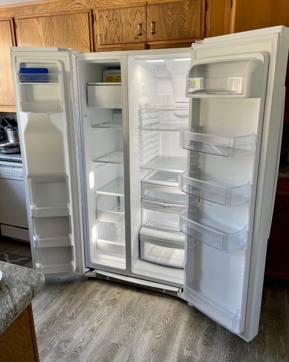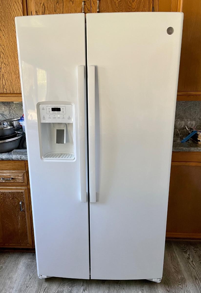 Near new GE white side-by-side Refrigerator model #GSS25IGNPHWW