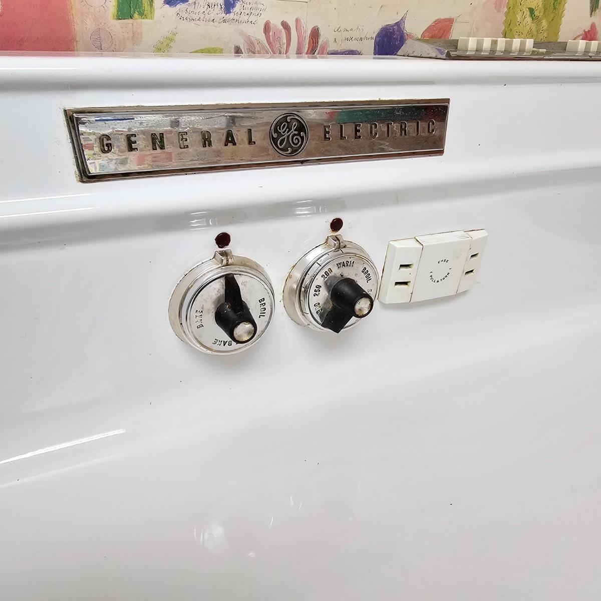 Larger than average size stove, this vintage beauty offers ease of use and lots of storage as well. Four top burners with individual controls, two accessory outlets on back splash alongside oven controls. Large oven has double racks and a size height gauge on the side. 40" x 25" x 44"H, unit powered on when plugged in. See photos for details. Local pickup only. Winning bidder must bring assistance to help move and load this item due to its weight and/or size.