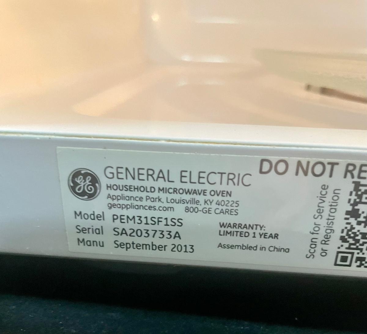 Very good used condition. Tested, works well. Can be used on countertop or mounted under cupboard, above stove. Model PEM31SF1SS. Made in 2013.