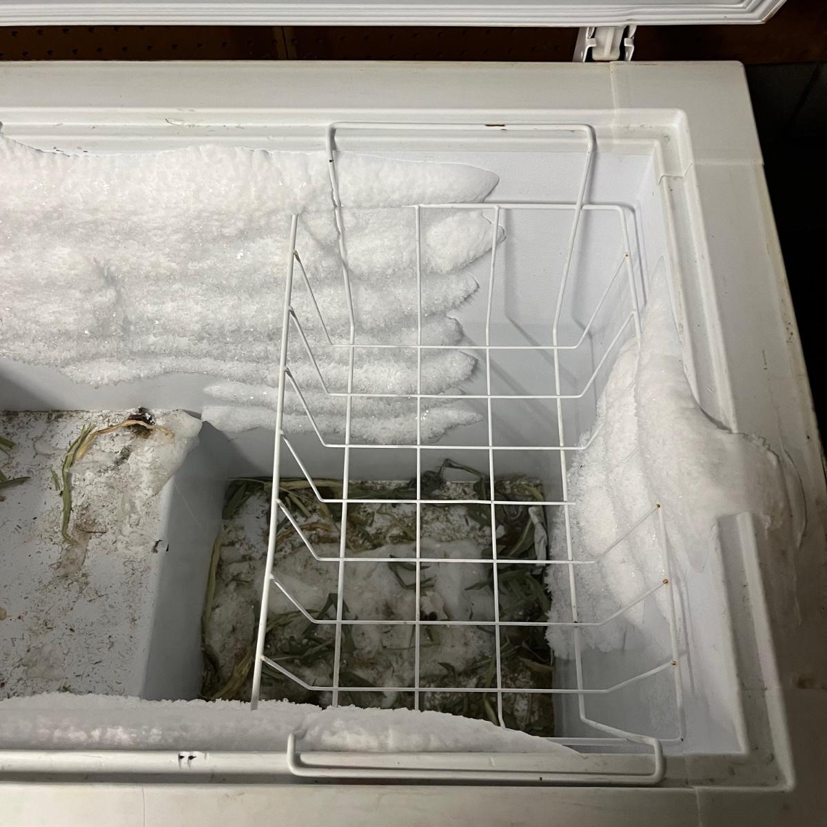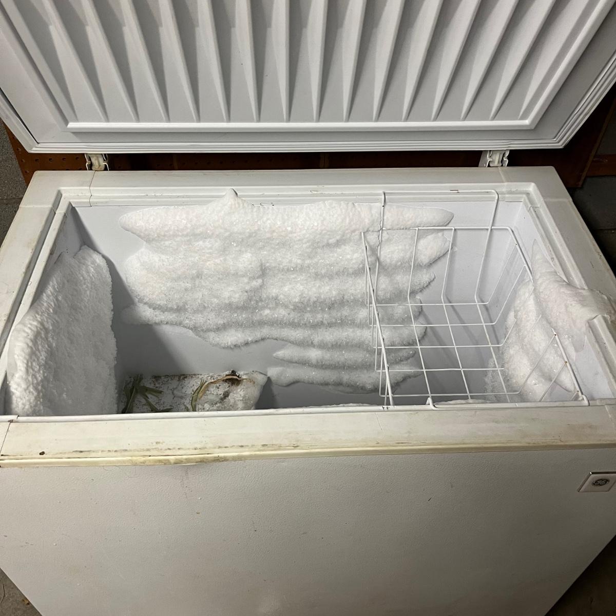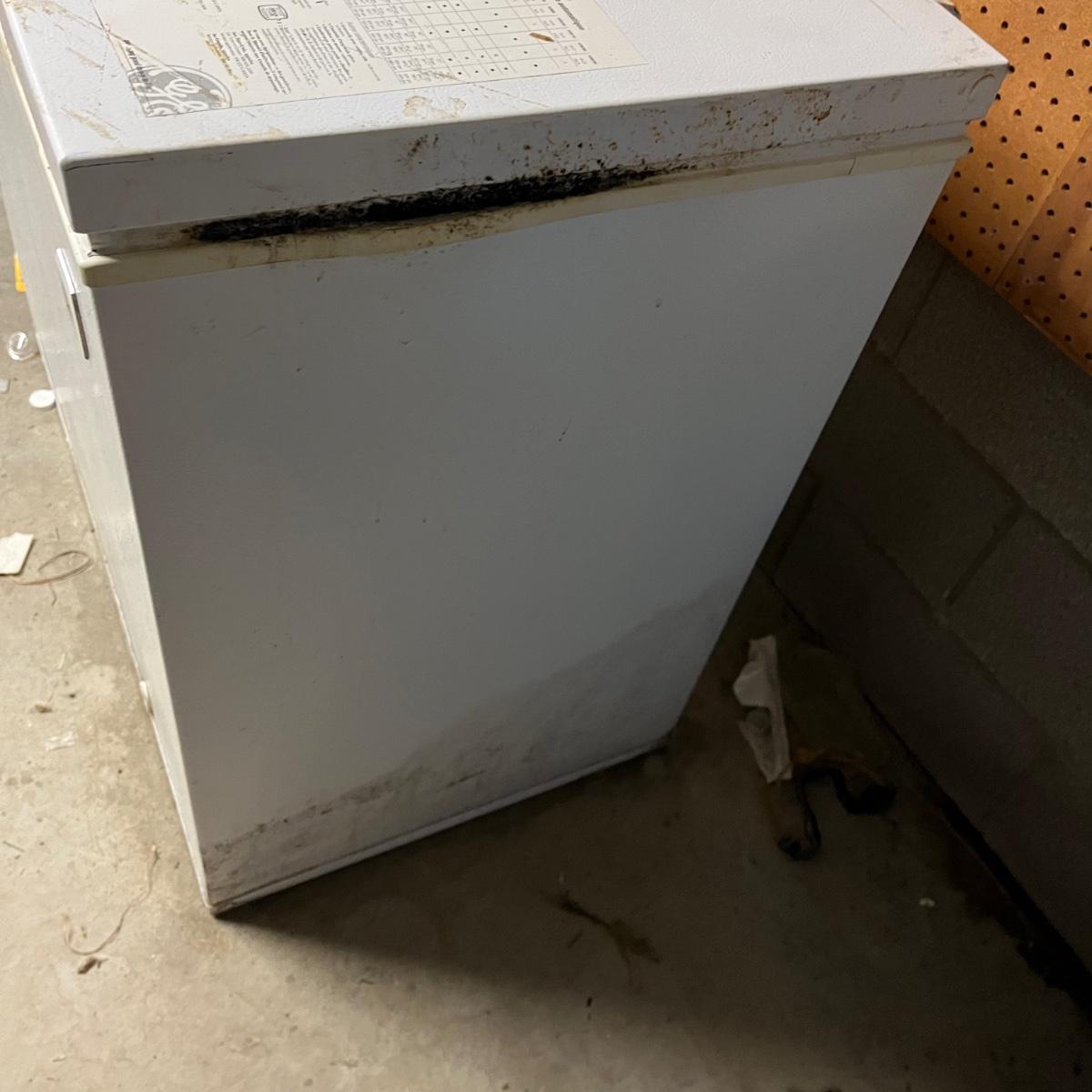Lot includes a GE chest freezer model # FDM 7DAA WH manual defrost chest freezer. Freezer measures 23” x 35” x 34”. Freezer is dirty, but worked when tested. Bring help to move as item is substantial
