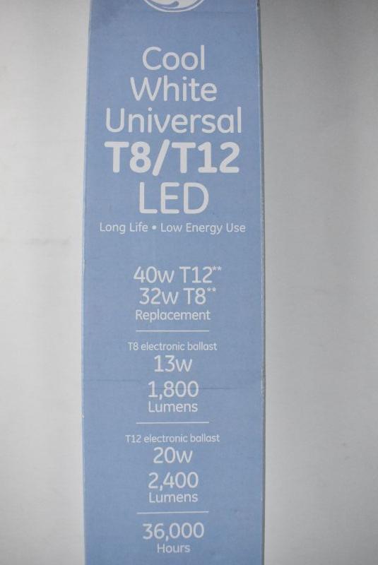 GE Cool White LED Light Bulbs T8/T12 Long Life 1" Diameter 48" Long - New