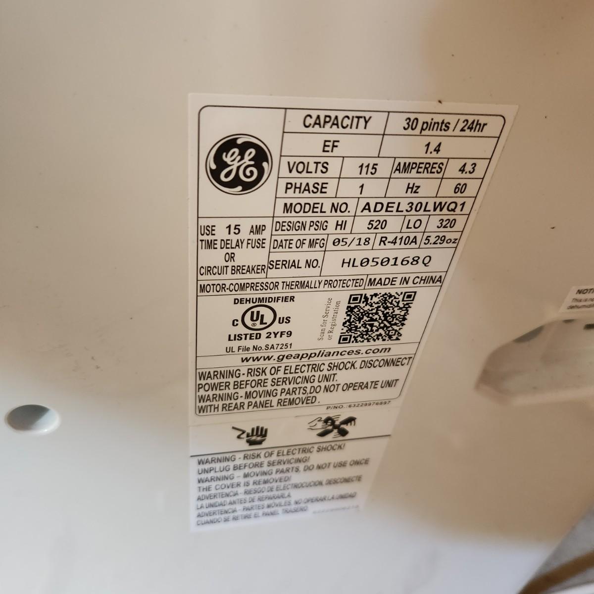 GE Dehumidifier 30 pints Tested Working