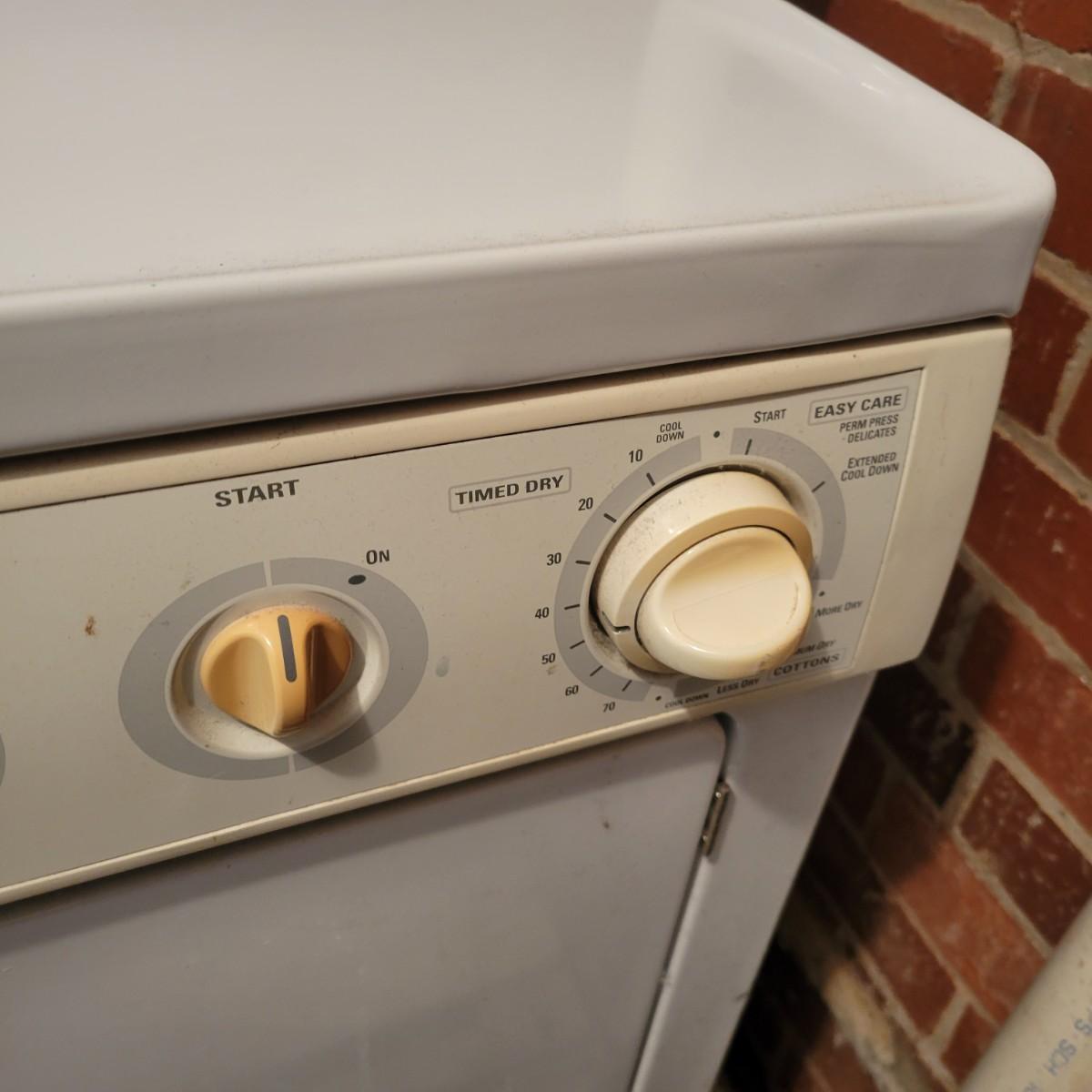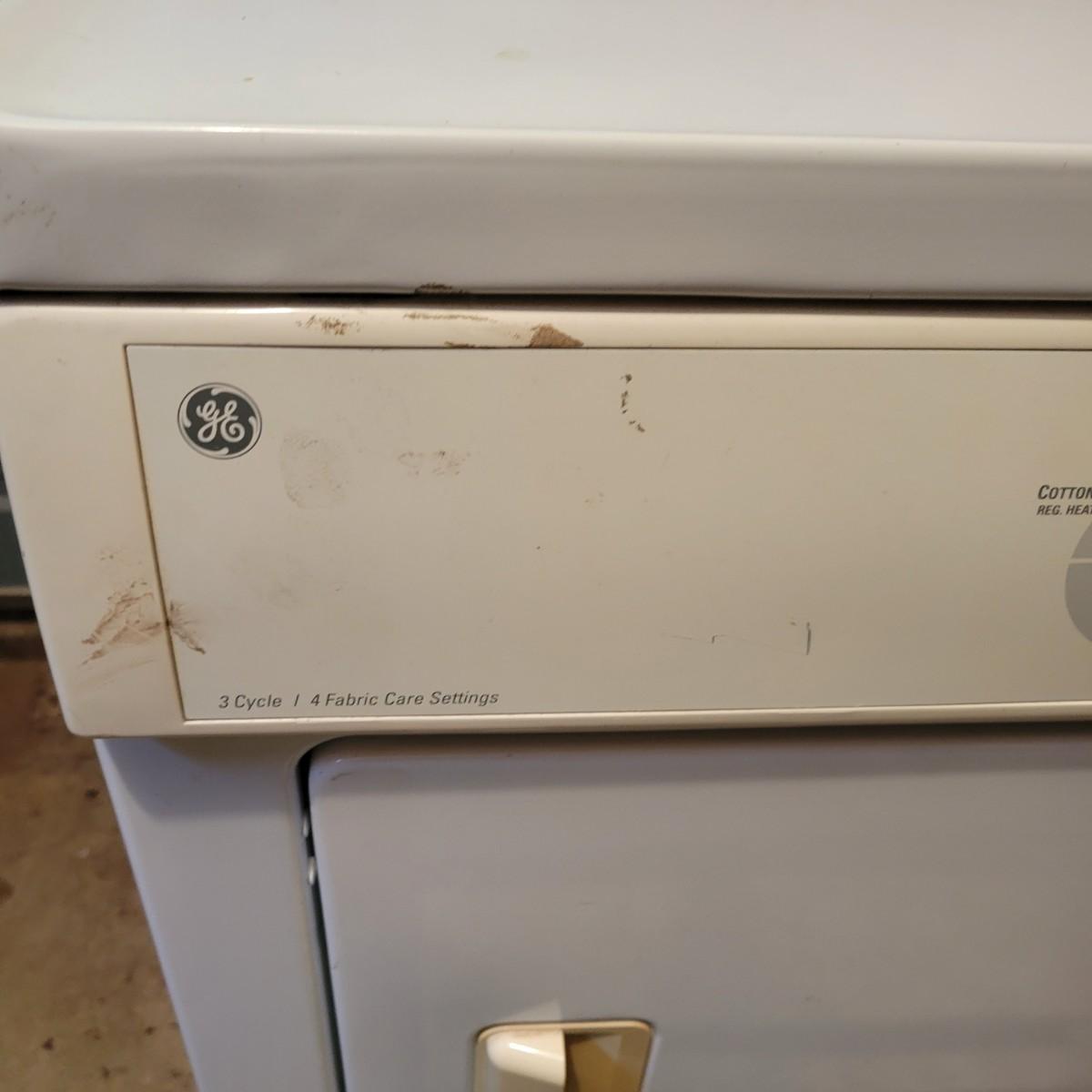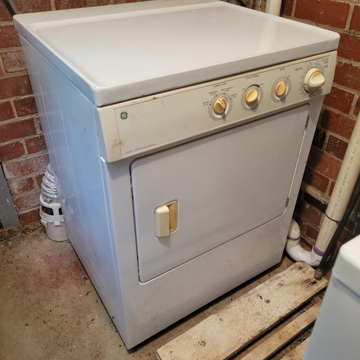 An older front loading GE dryer in remarkably good condition for its age with no notable damage beyond some minor rust spots. Dryer was tested and powered on. Measures approximately 27" x 25" x 43". Local pickup only. Winning bidder will need to bring help to load the dryer. There are five steps up from the basement to the driveway.