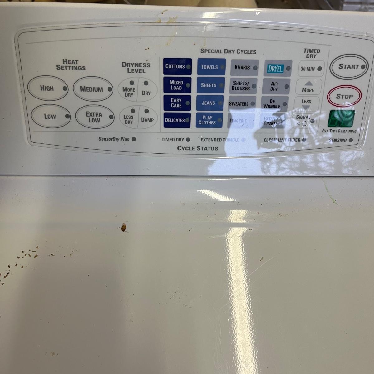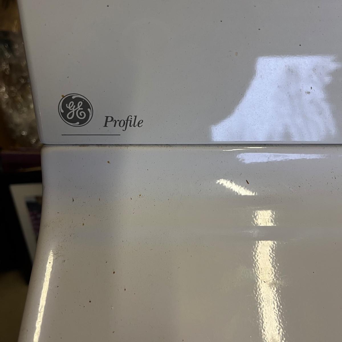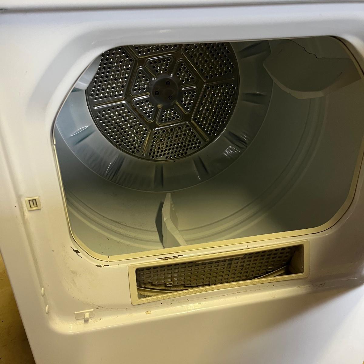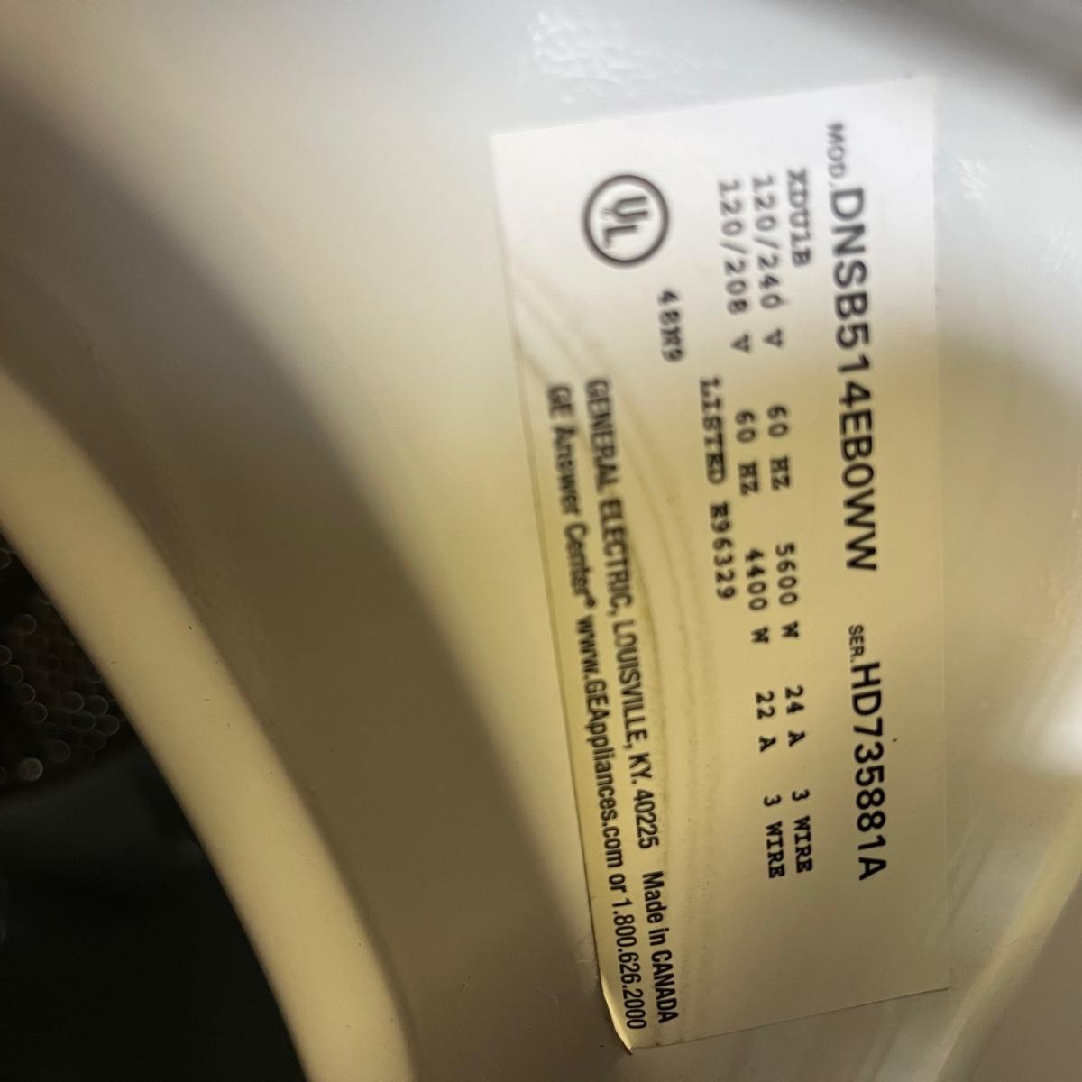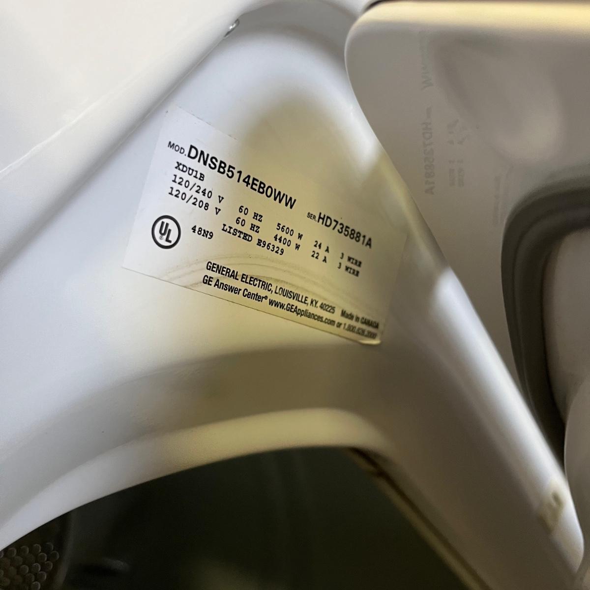 Lot includes a General Electric electric dryer model # DNSB514EBOWW. Dryer could not be tested as we did not have power for it. Measures approximately 27" x 26" x 43"H. Local Pickup Only