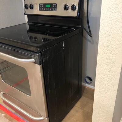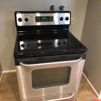 GE Electric Range flat surface stovetop and oven. YD# 023-0005