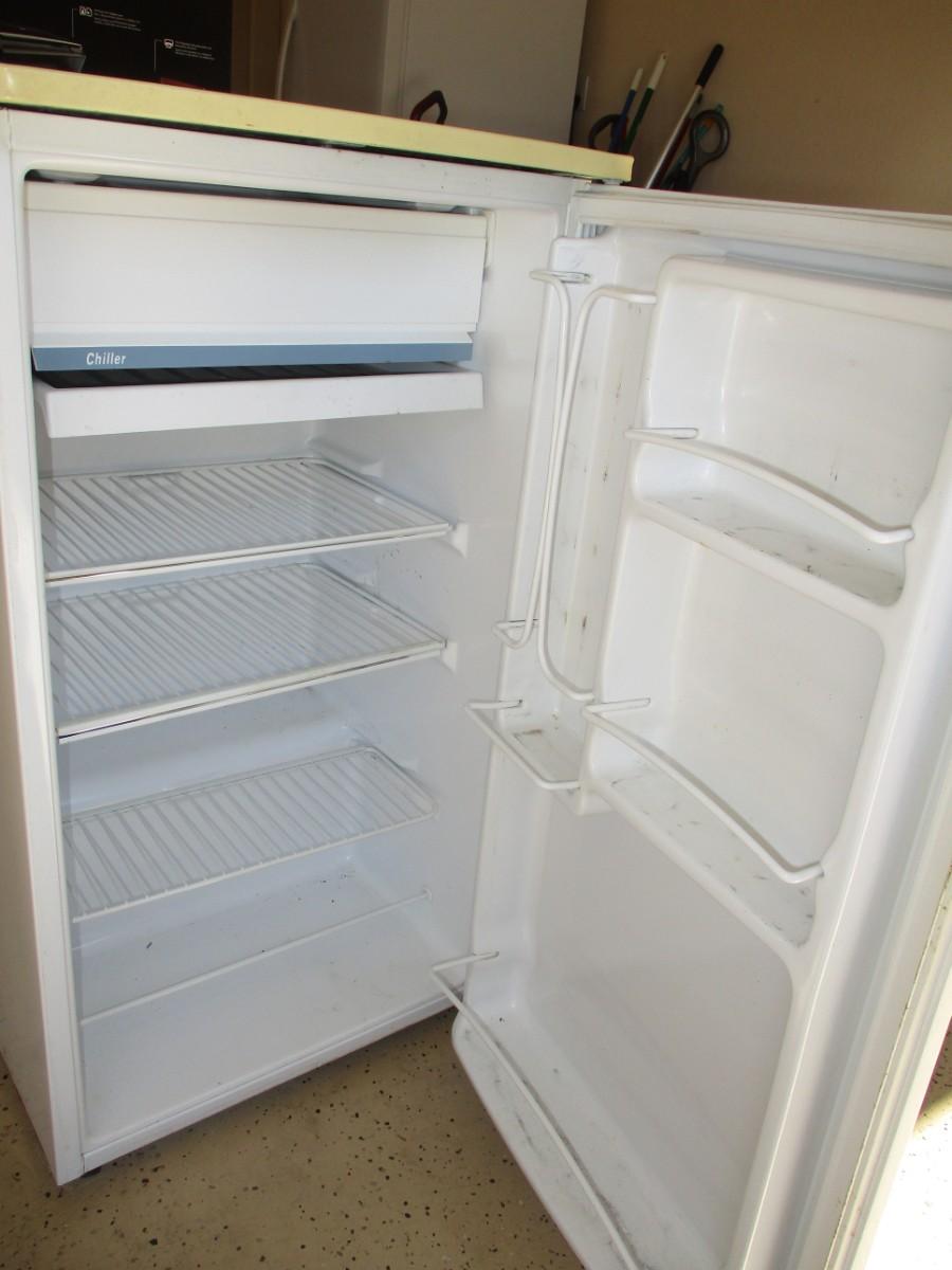 Mini frig works. Needs cleaning.