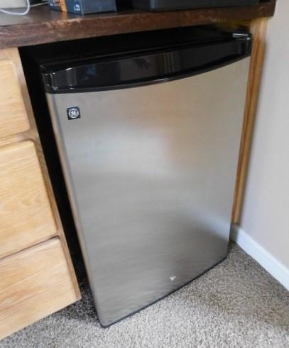 GE Mini Refrigerator Stainless Exterior 21"x32" Upstairs