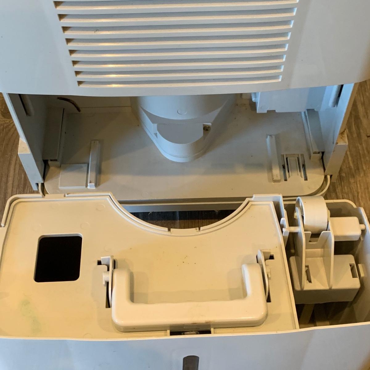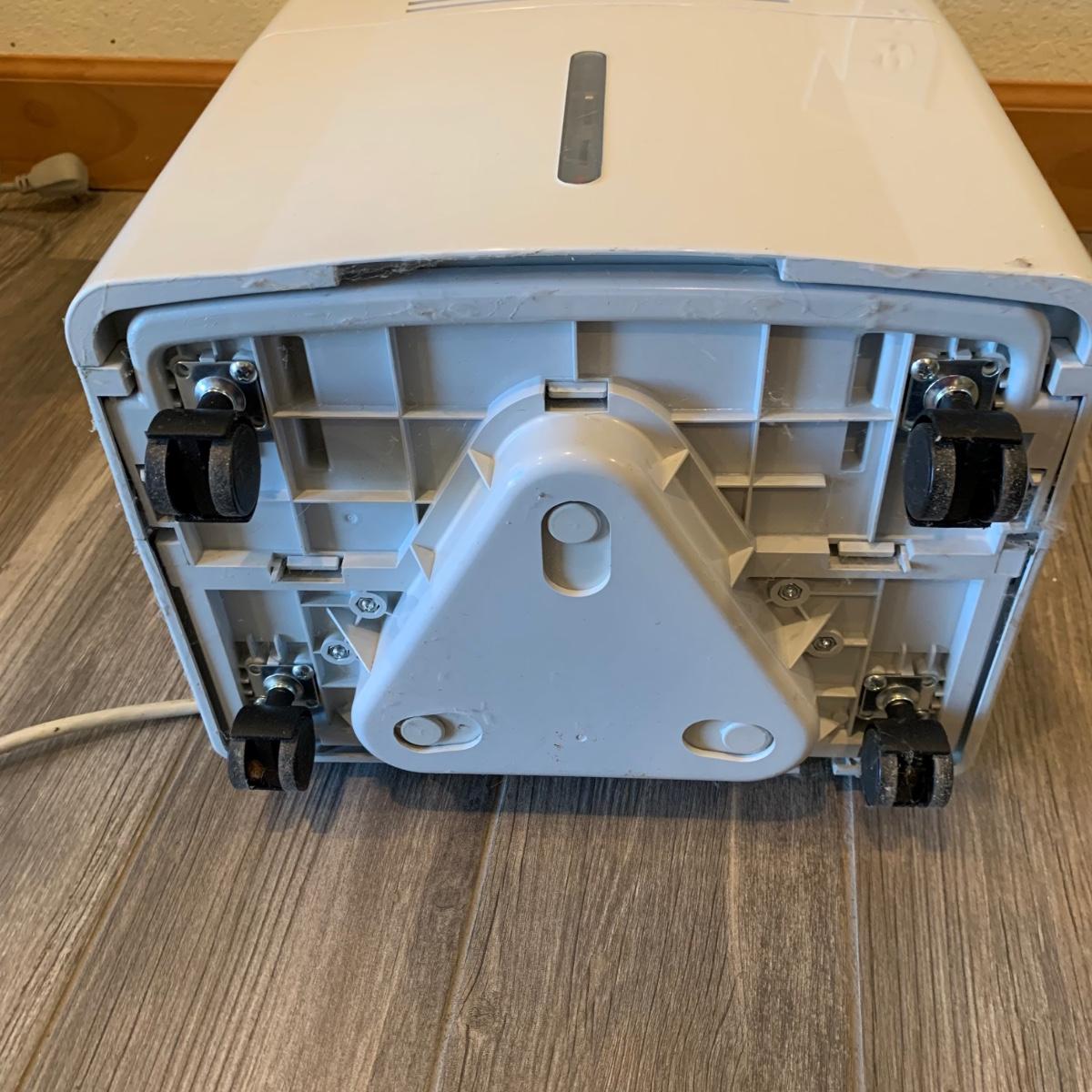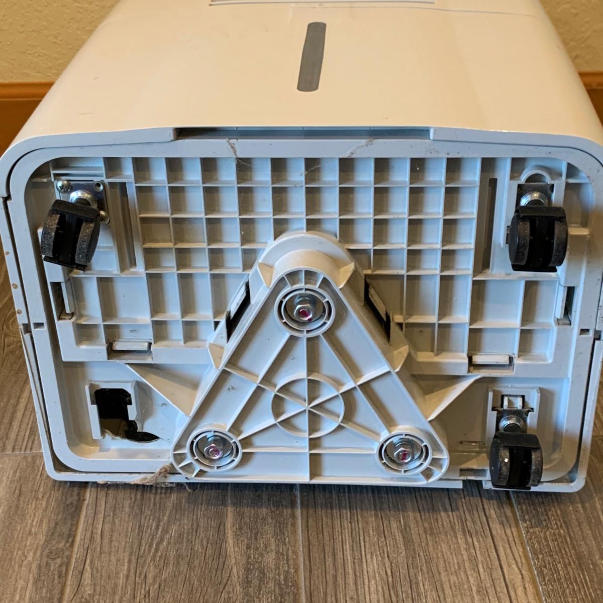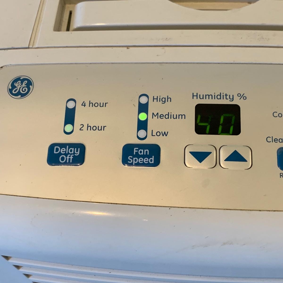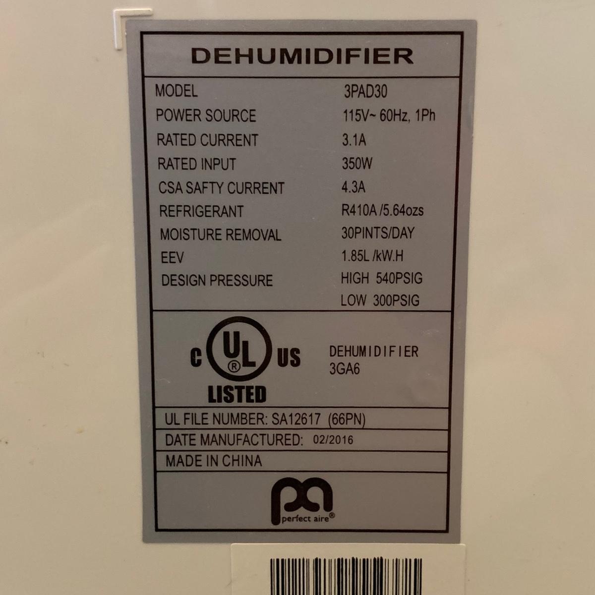 Three dehumidifiers, two are GE brand and one is Perfect Aire. All three powered on when plugged in. The largest GE dehumidifier measures 15” x 10.5” x 22.5”. The two GEs have retractable handles. Please see photos for model numbers. All three have casters, but the bigger GE is missing one.