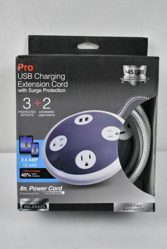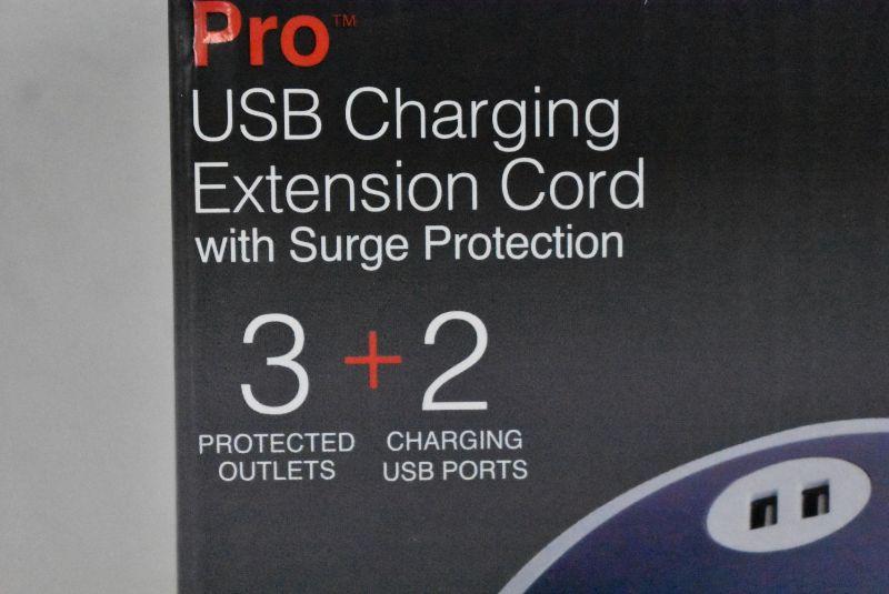 GE Pro 3-Outlet Extension Cord, 2-Port USB, 8-Foot Cord, Surge Protection - New