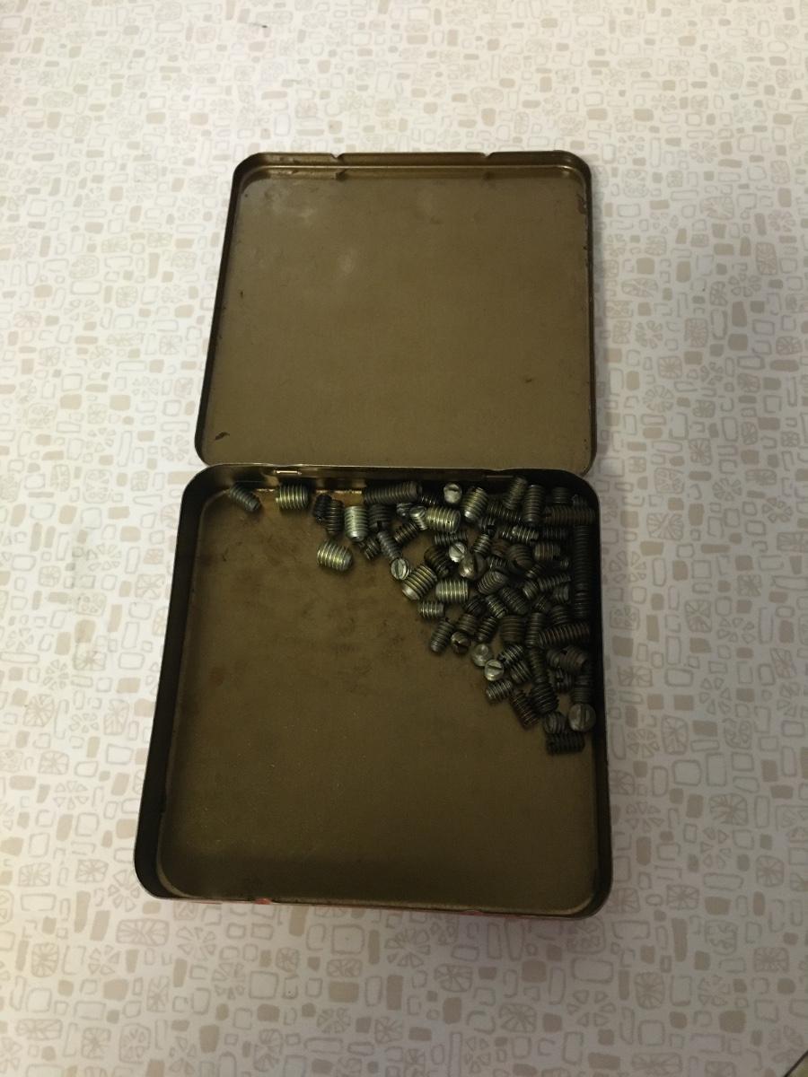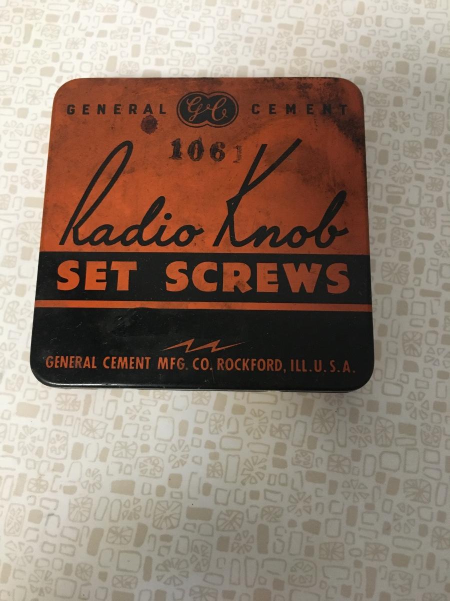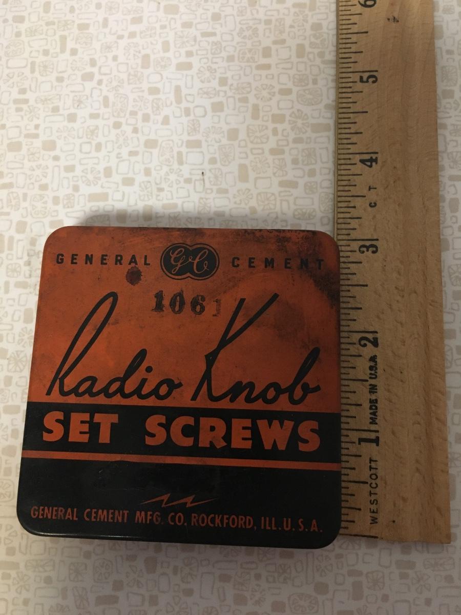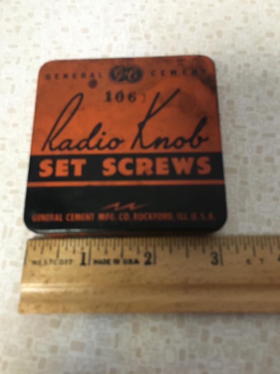 Vintage tin from back in the day when people knew what set screws were used for. There are still a few left in this tin if you actually have a need for them.And if you don't, the tin is very cool conversation piece. Comes with dust from 1968.