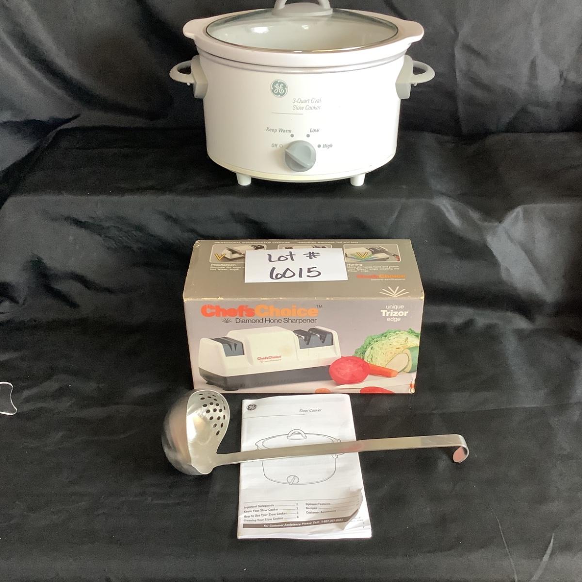 Lot. 6015. GE Slow Cooker and Chefs Choice Diamond Hone Sharpener