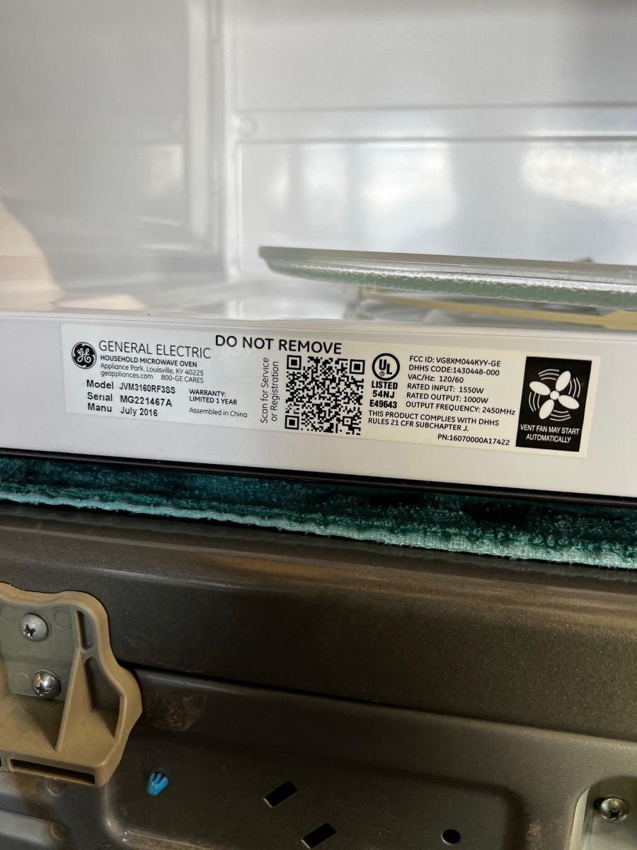Good working condition no mounting hardware, Model JVM3160RF3SS