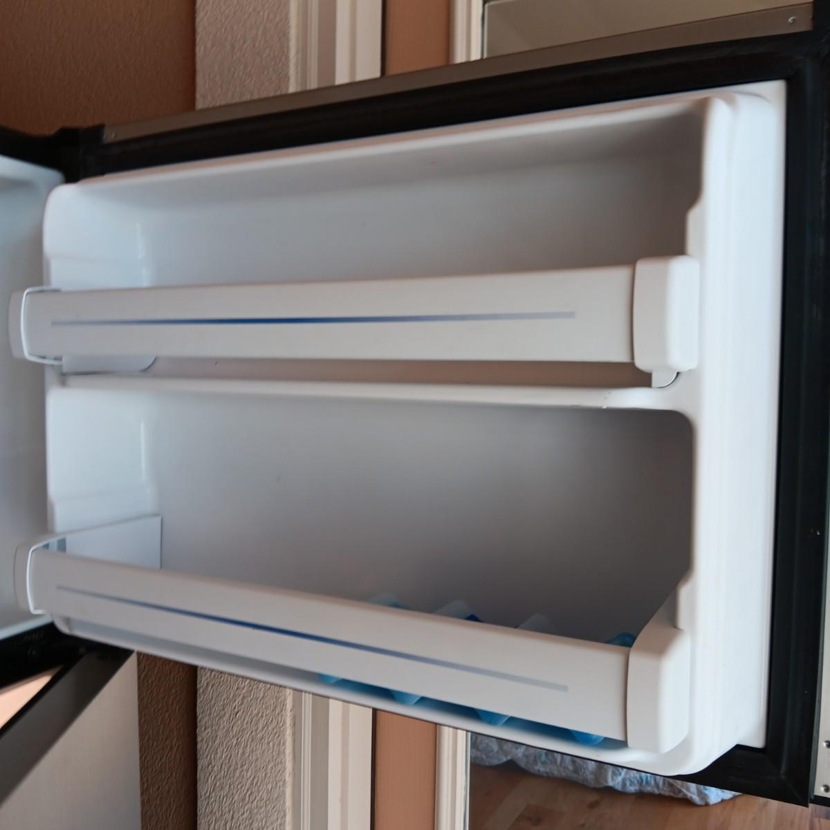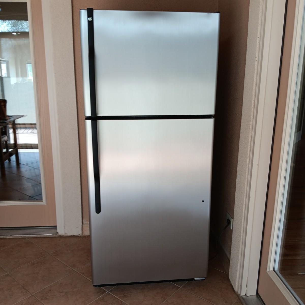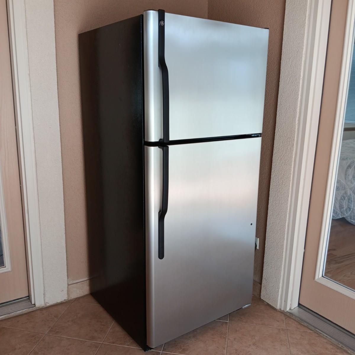 GE STAINLESS STEEL REFRIGERATOR WITH ICEMAKER (CONTENTS NOT INCLUDED)