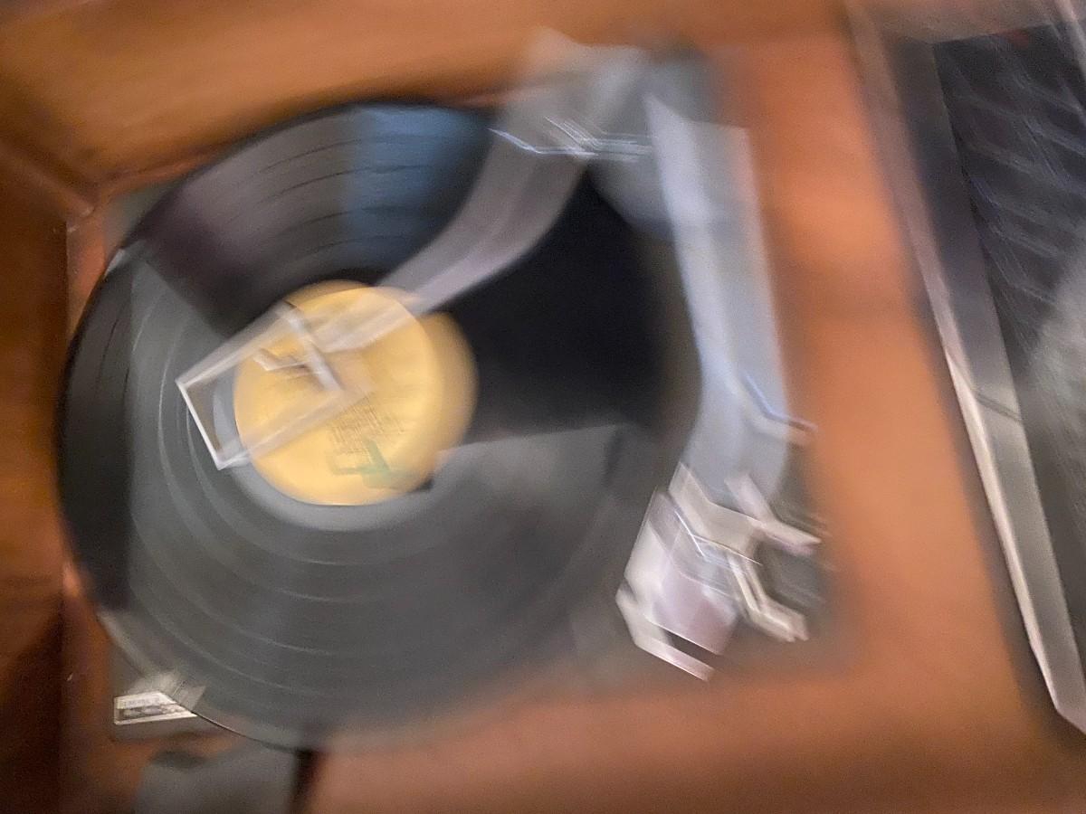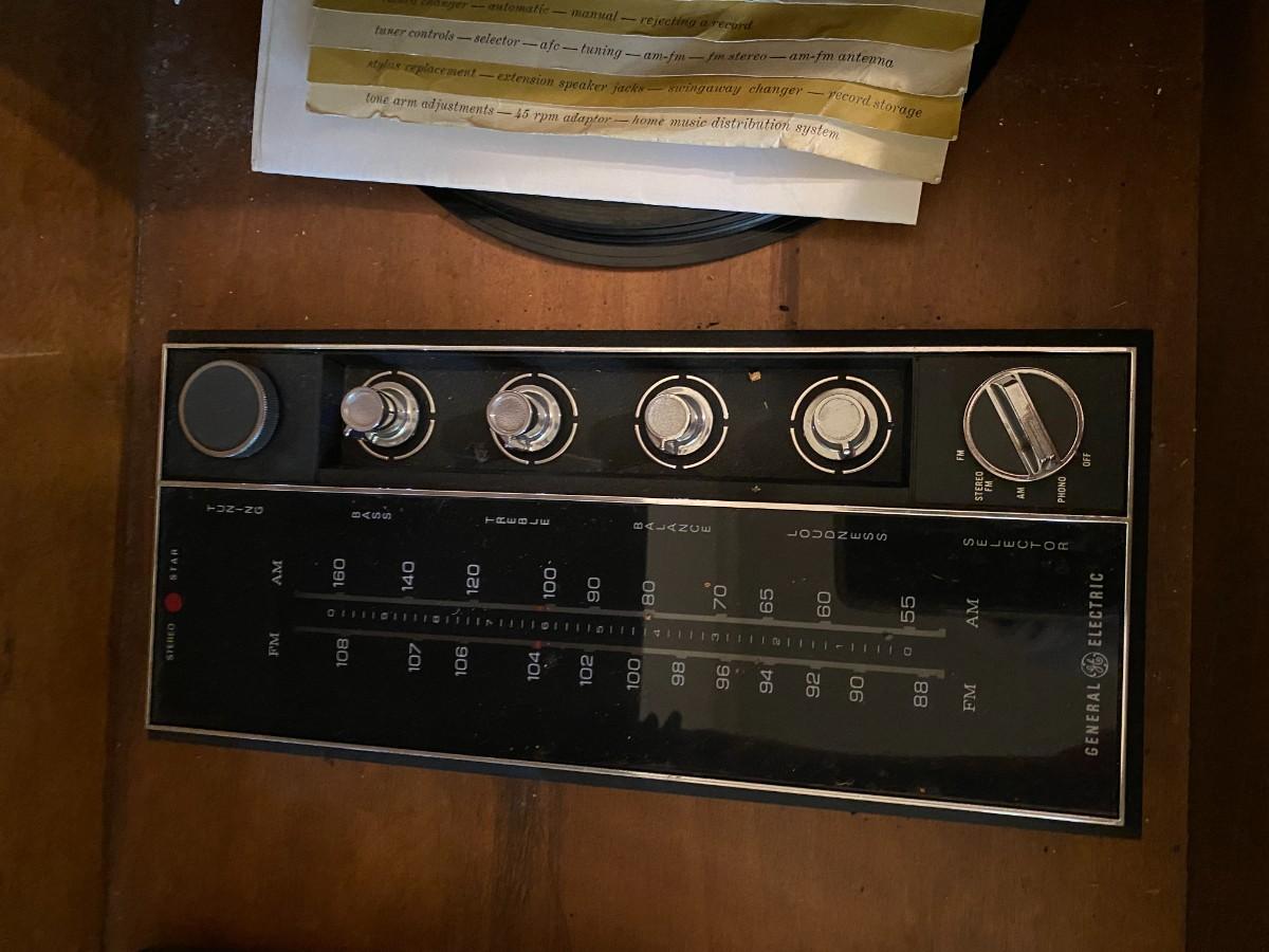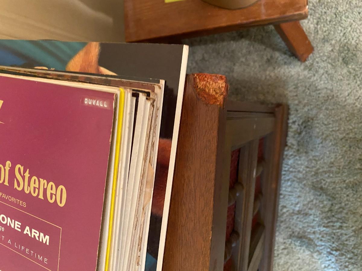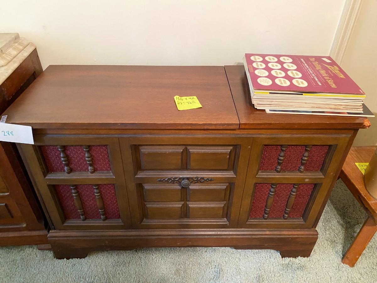 LOT 288 GE Stereo in Cabinet, Large Chip on Right Corner, 16.25x42x27t