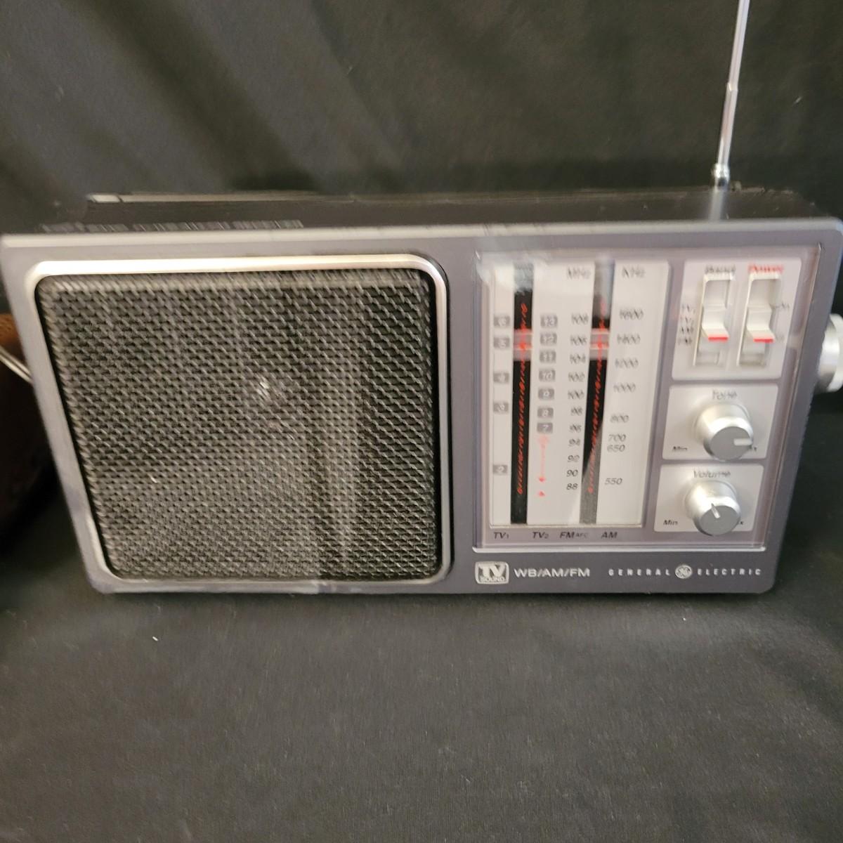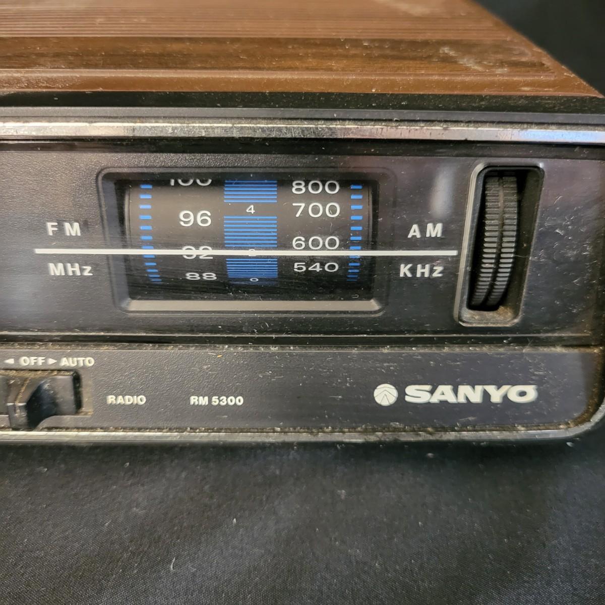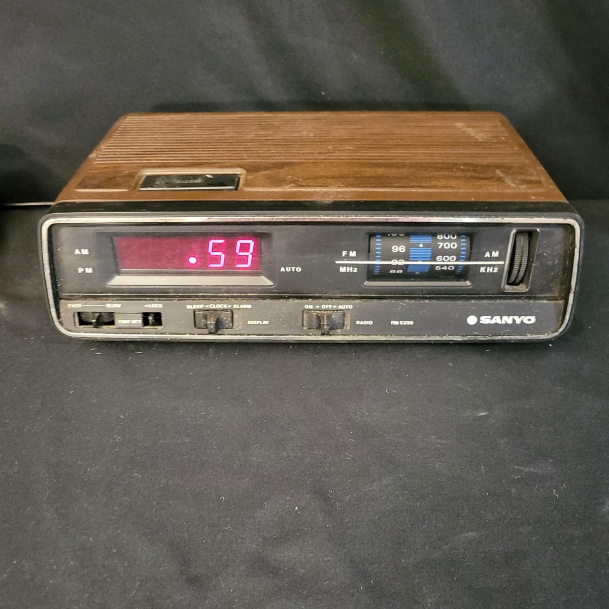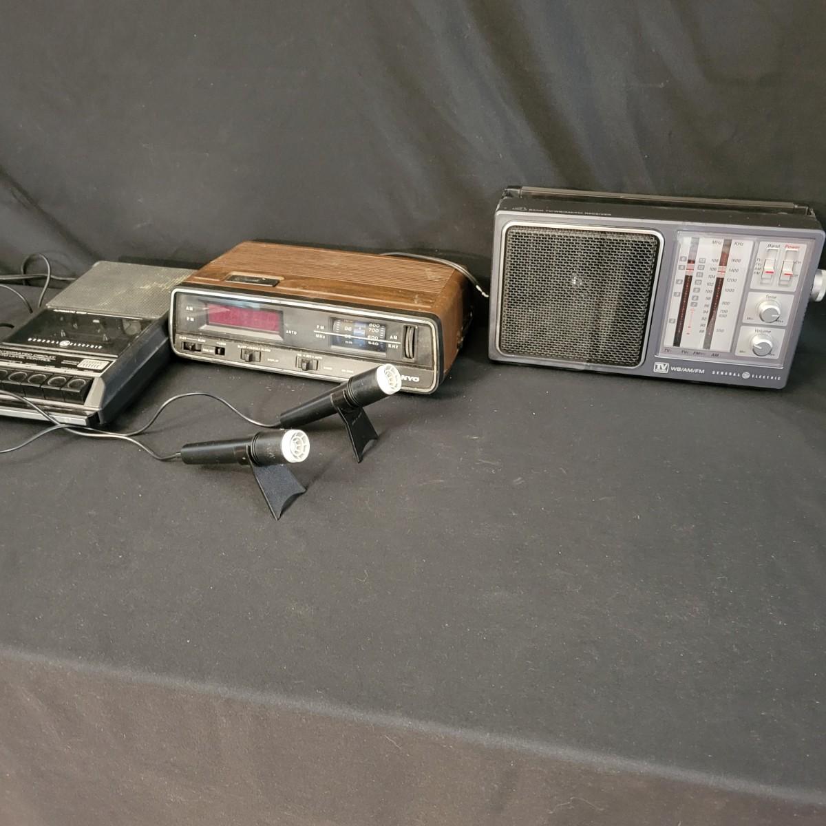 A GE battery powered tape recorder, AM/FM radio and a Sanyo alarm clock in good condition. The radio and alarm clock have been tested and work, the recorder is battery powered and was not tested. Also included is two microphones w 3.5mm jacks. AM/FM radio measures approximately 10.5" x 6" x 3" Shipping available
