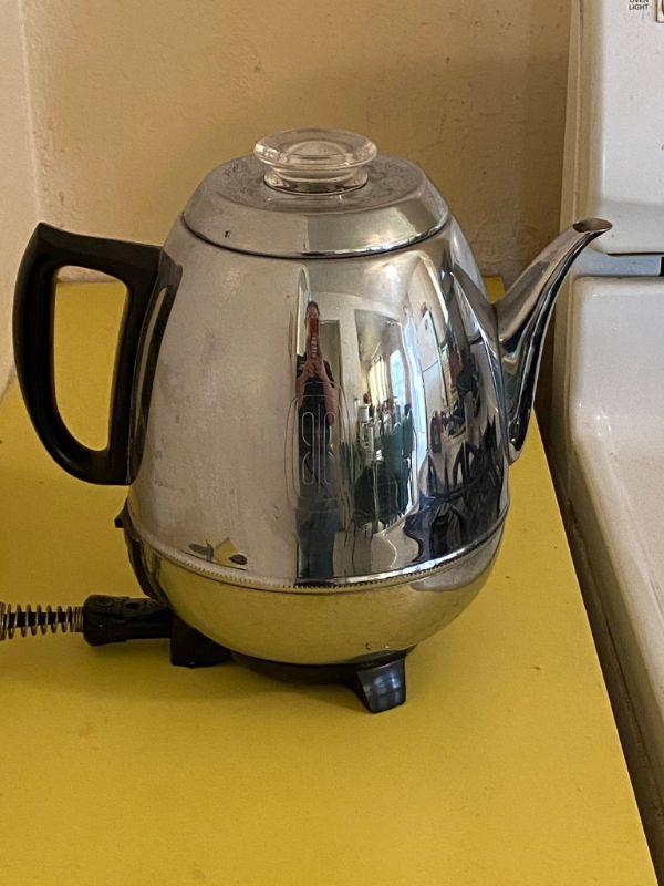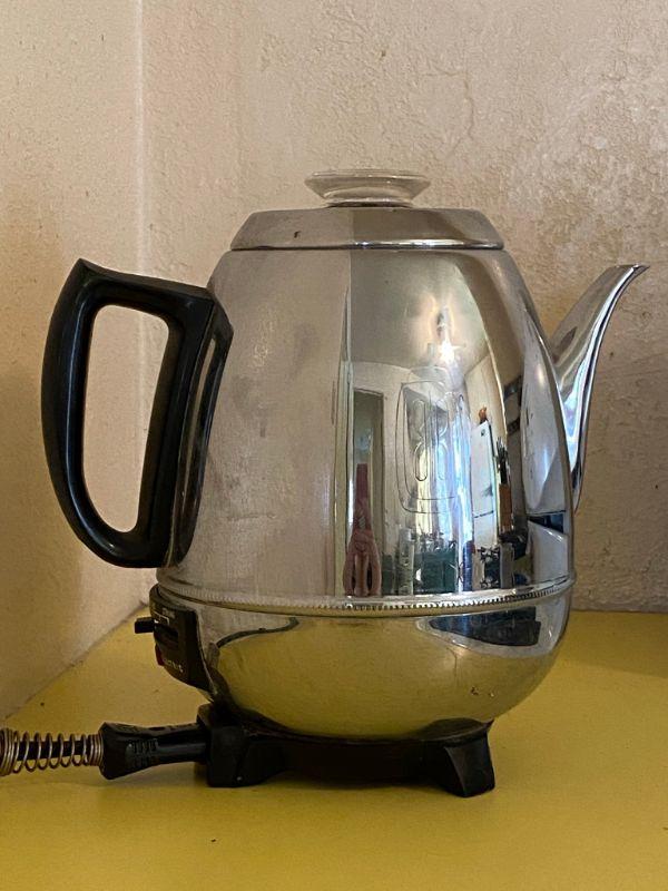 Vintage General Electric coffee pot. An electric percolator, tested, it gets hot inside. Looks great.