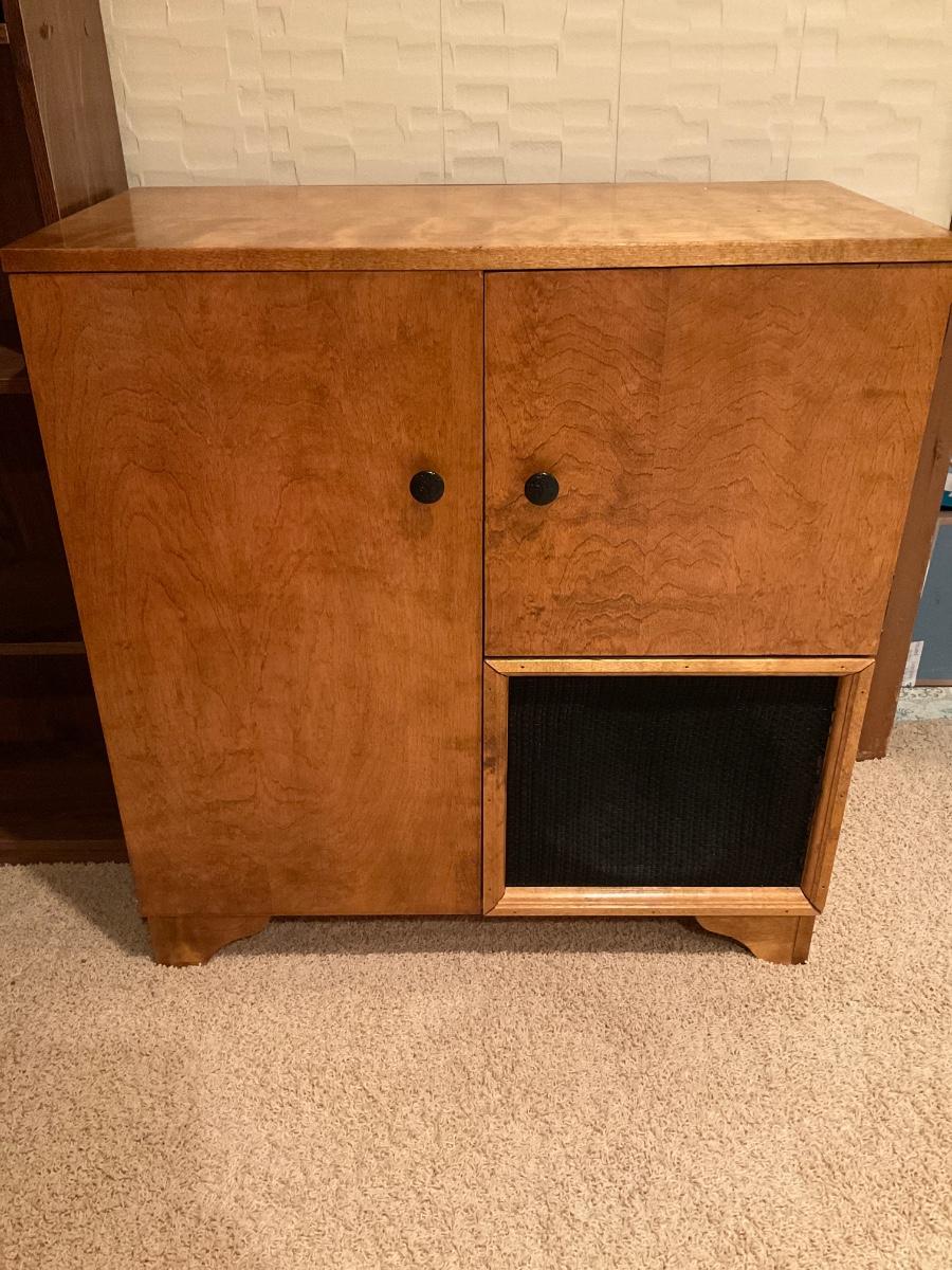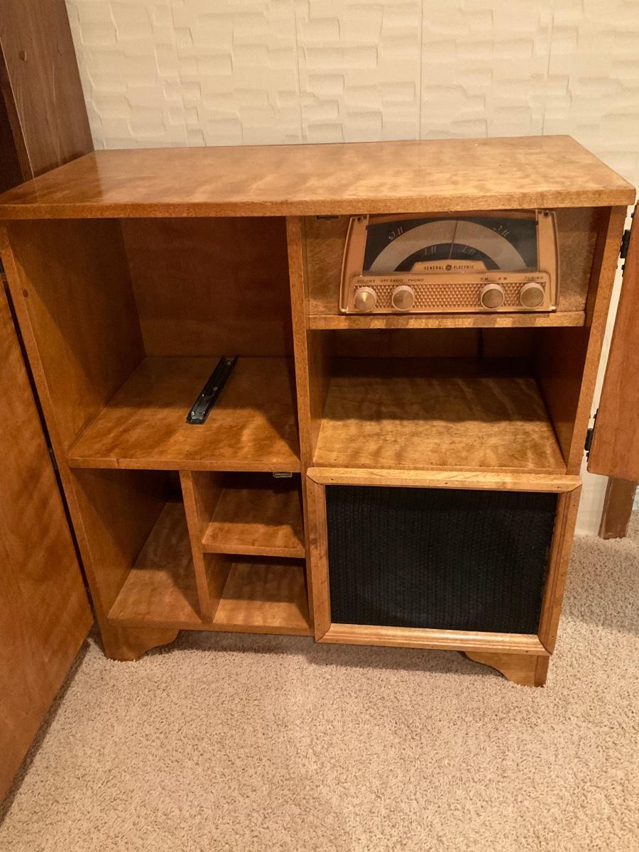 GE vintage radio in cabinet