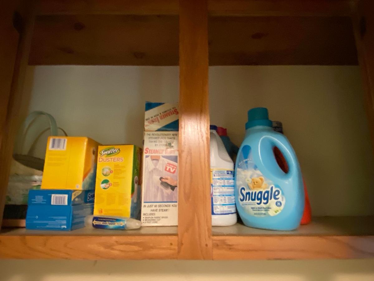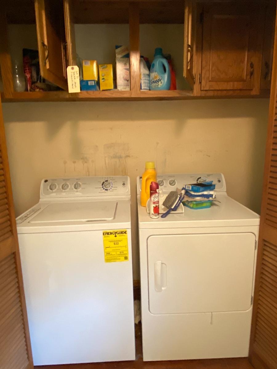 Newer GE Washer, Dryer, Laundry Cabinet Contents As Pictured