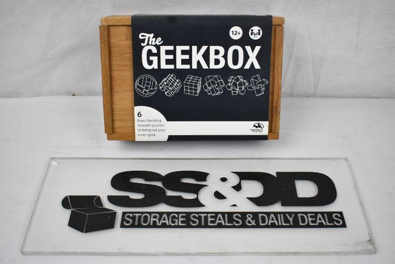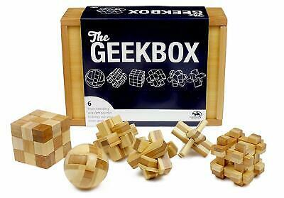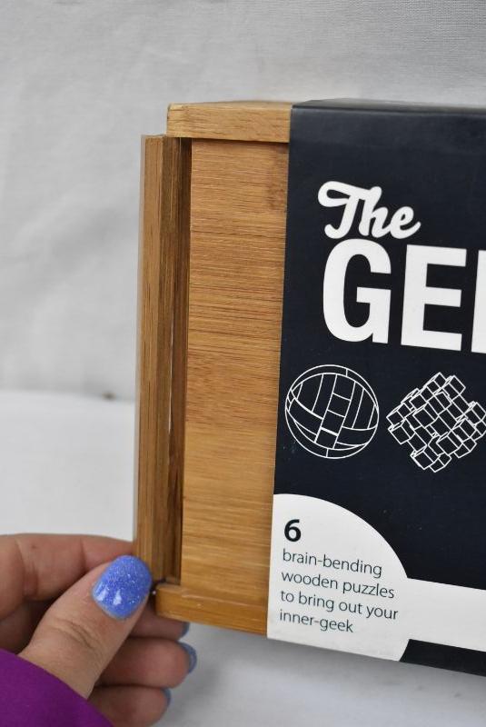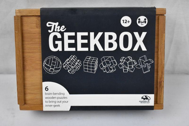 Geekbox with 6 Brain-Bending Puzzles. Box is broken. Puzzles are New
