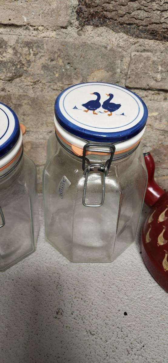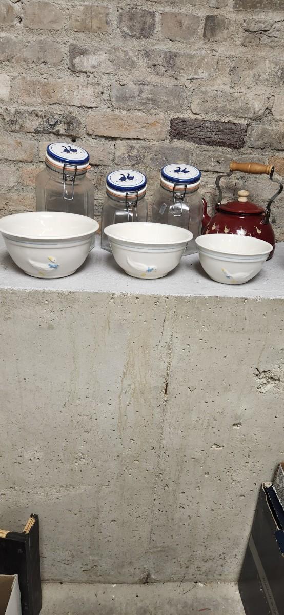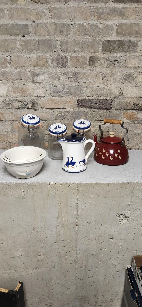 Kitchen Geese and Ducks canisters, teapot and nesting bowls