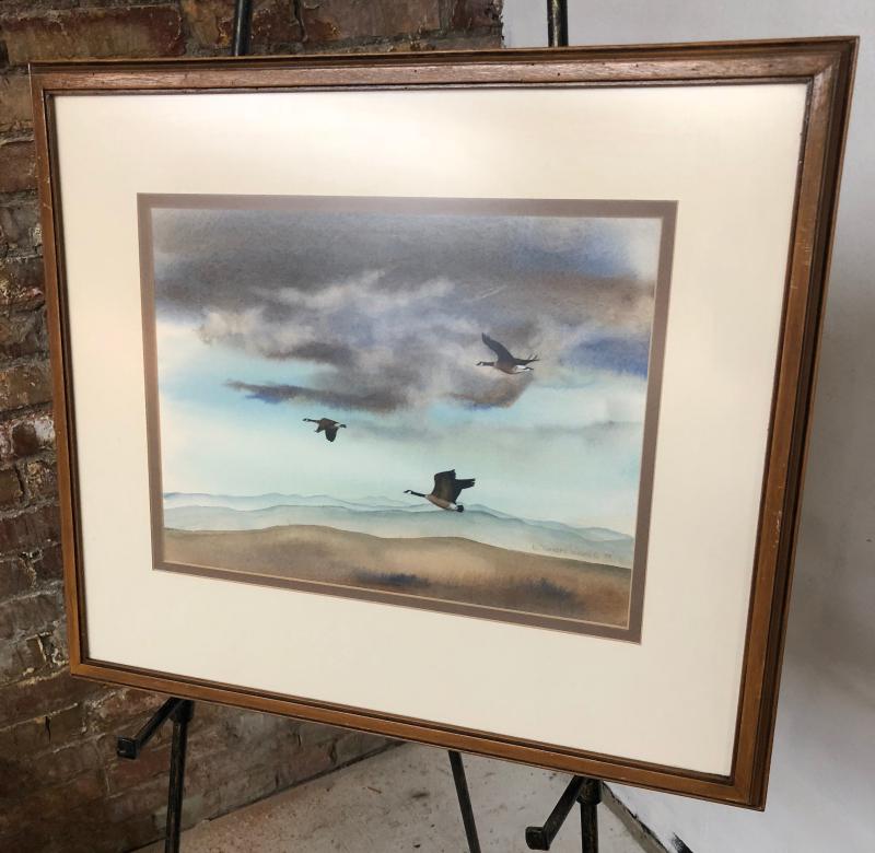 Excellent condition on this framed 21 x 18" watercolor of Geese in Flight....
