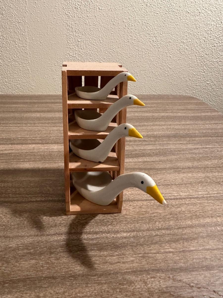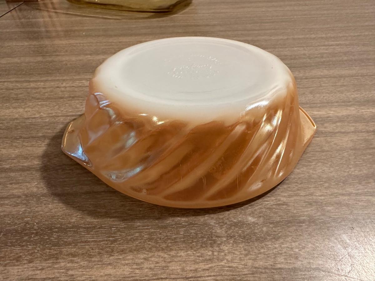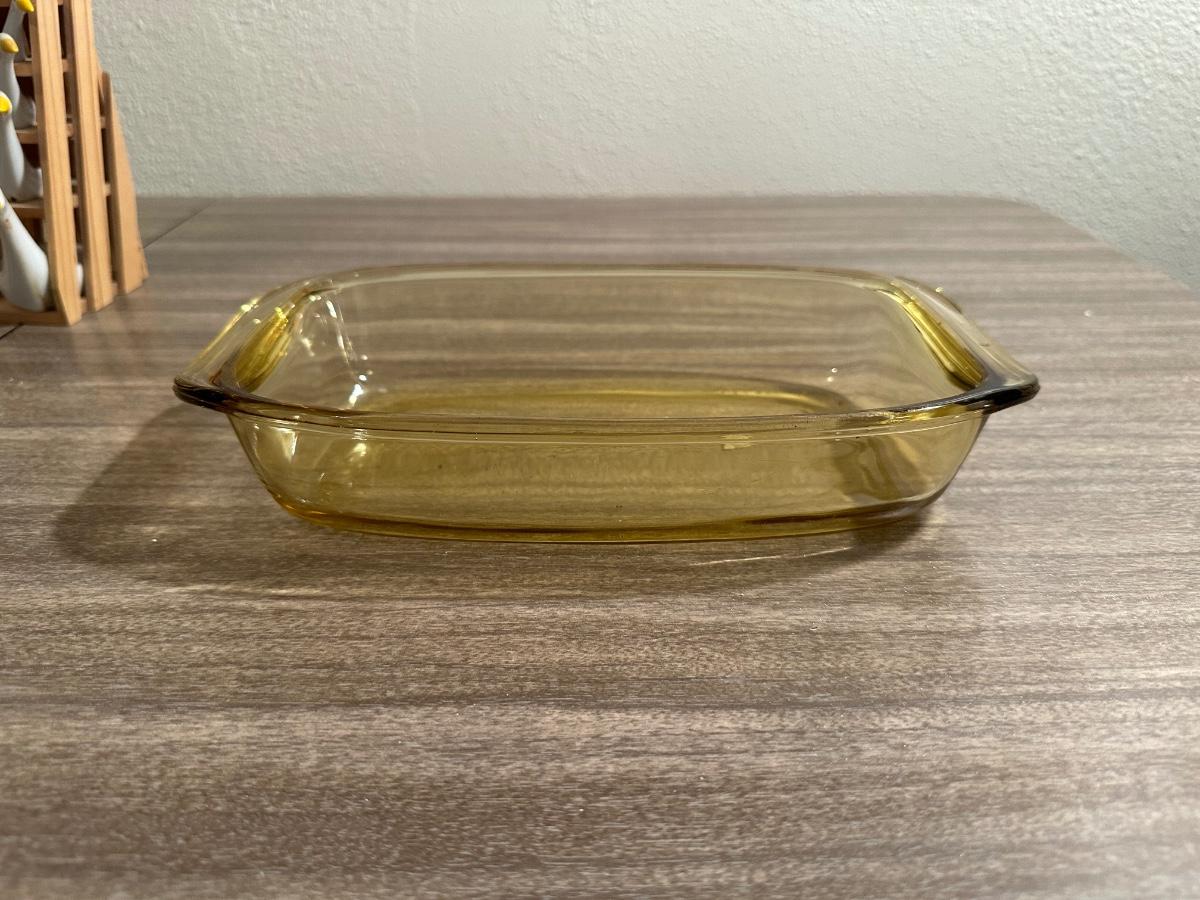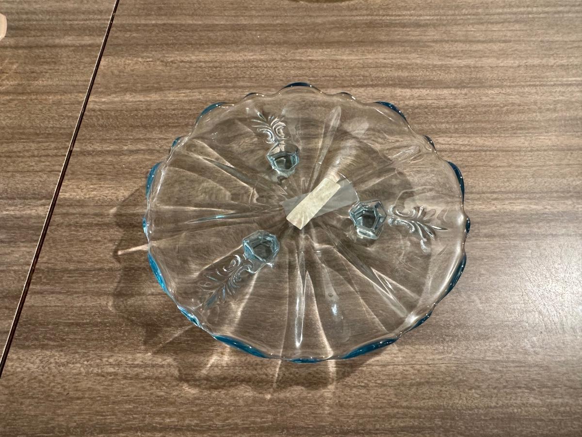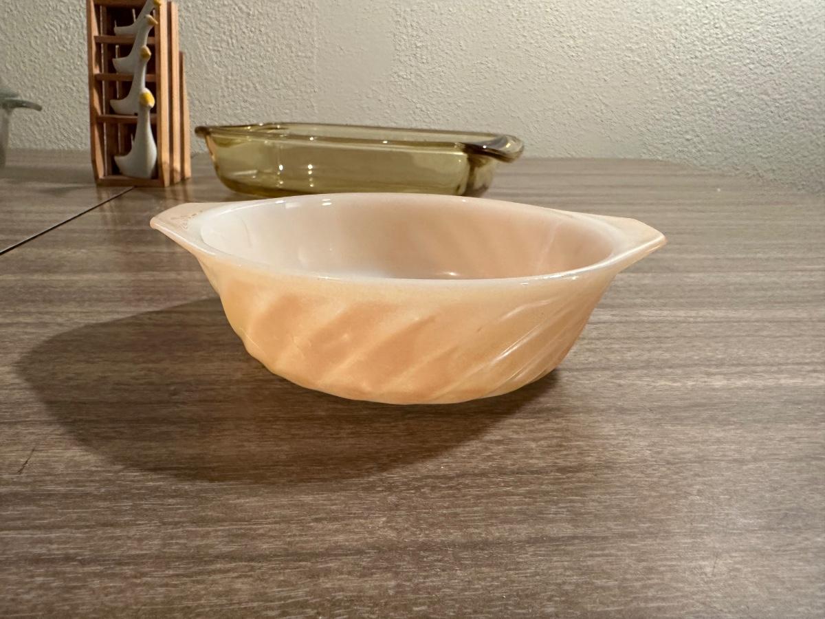 GEESE MEASURING SPOONS, FIRE KING BAKING DISHES AND BLUE GLASS CAKE PLATE