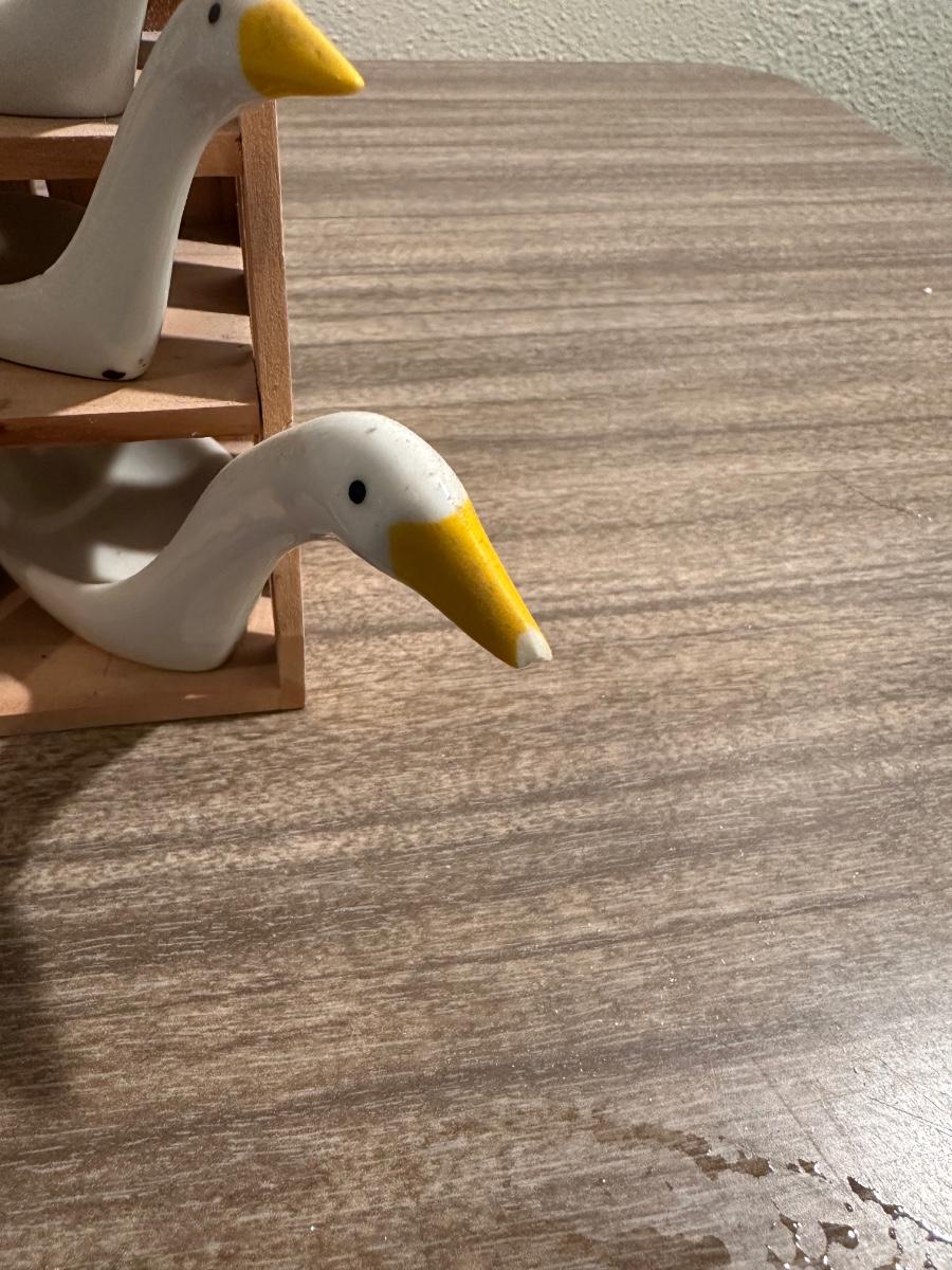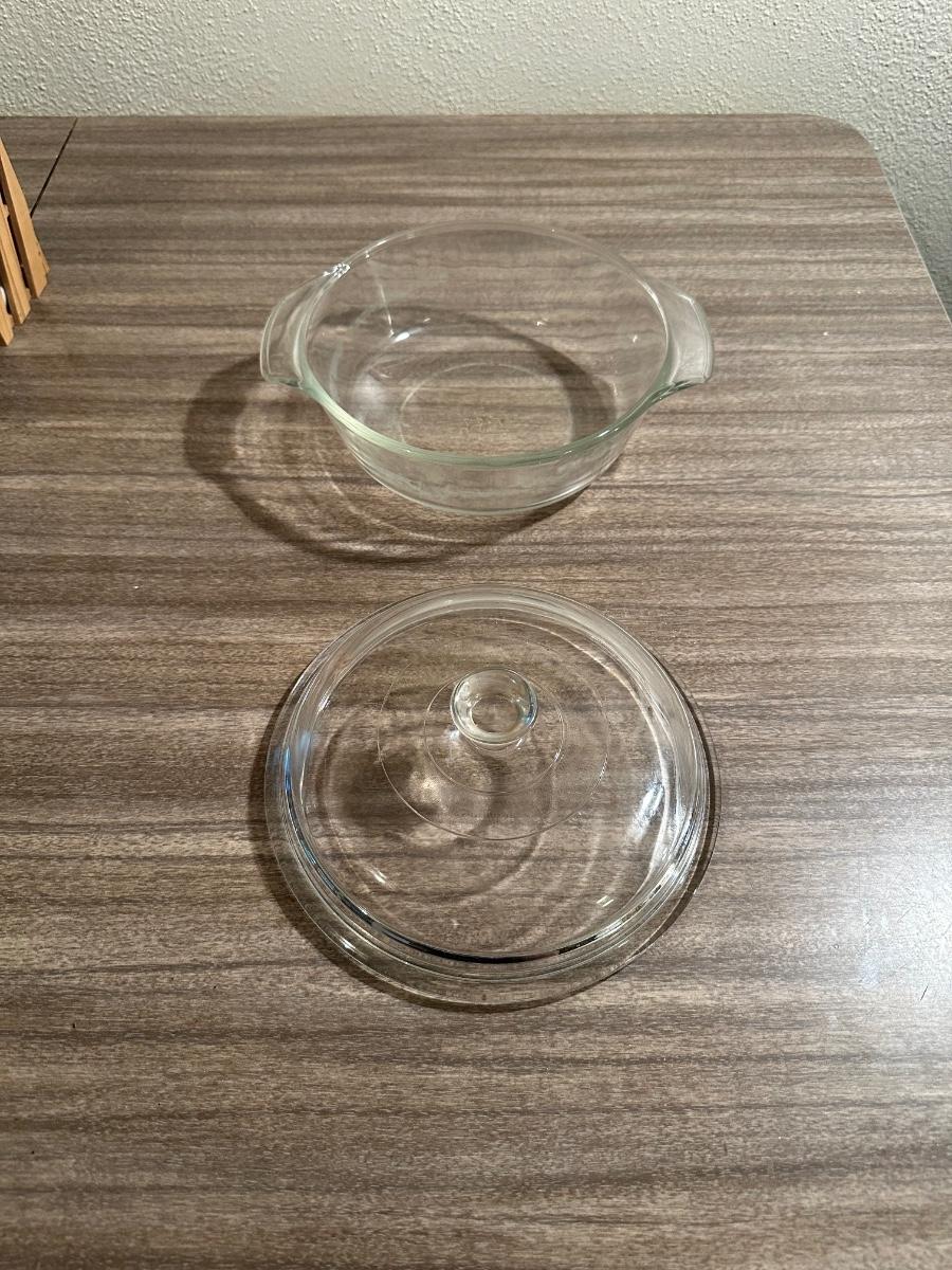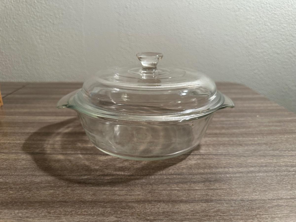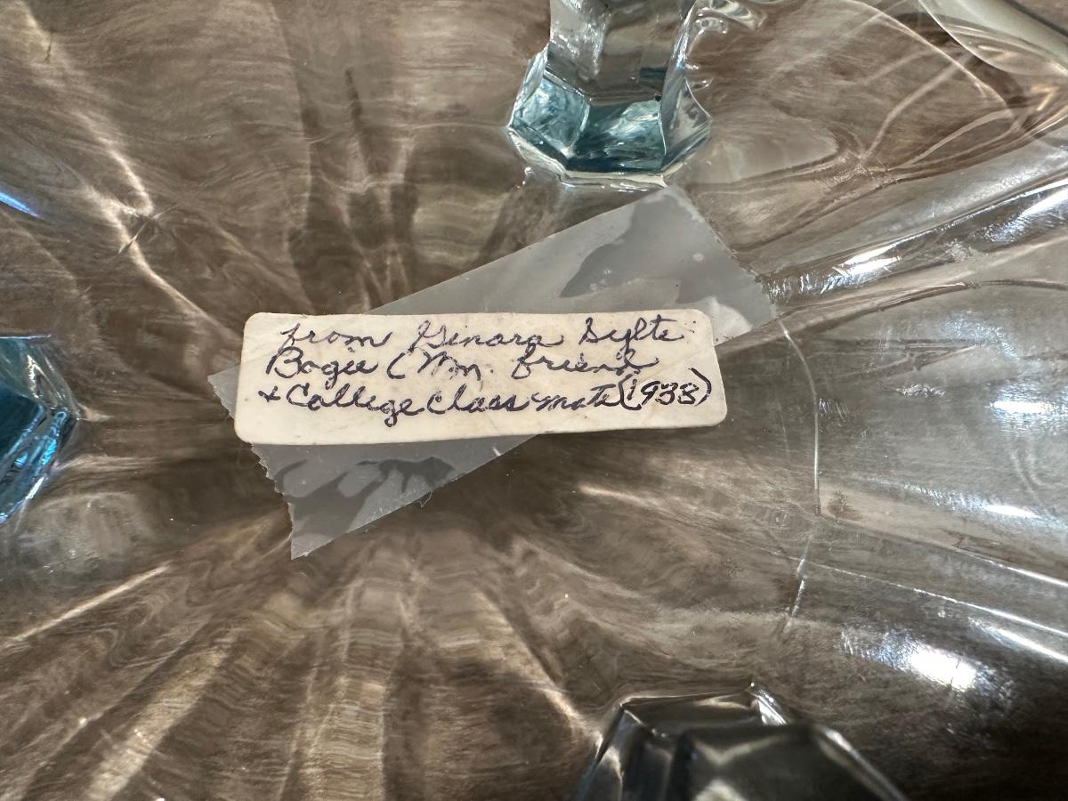 GEESE MEASURING SPOONS, FIRE KING BAKING DISHES AND BLUE GLASS CAKE PLATE
