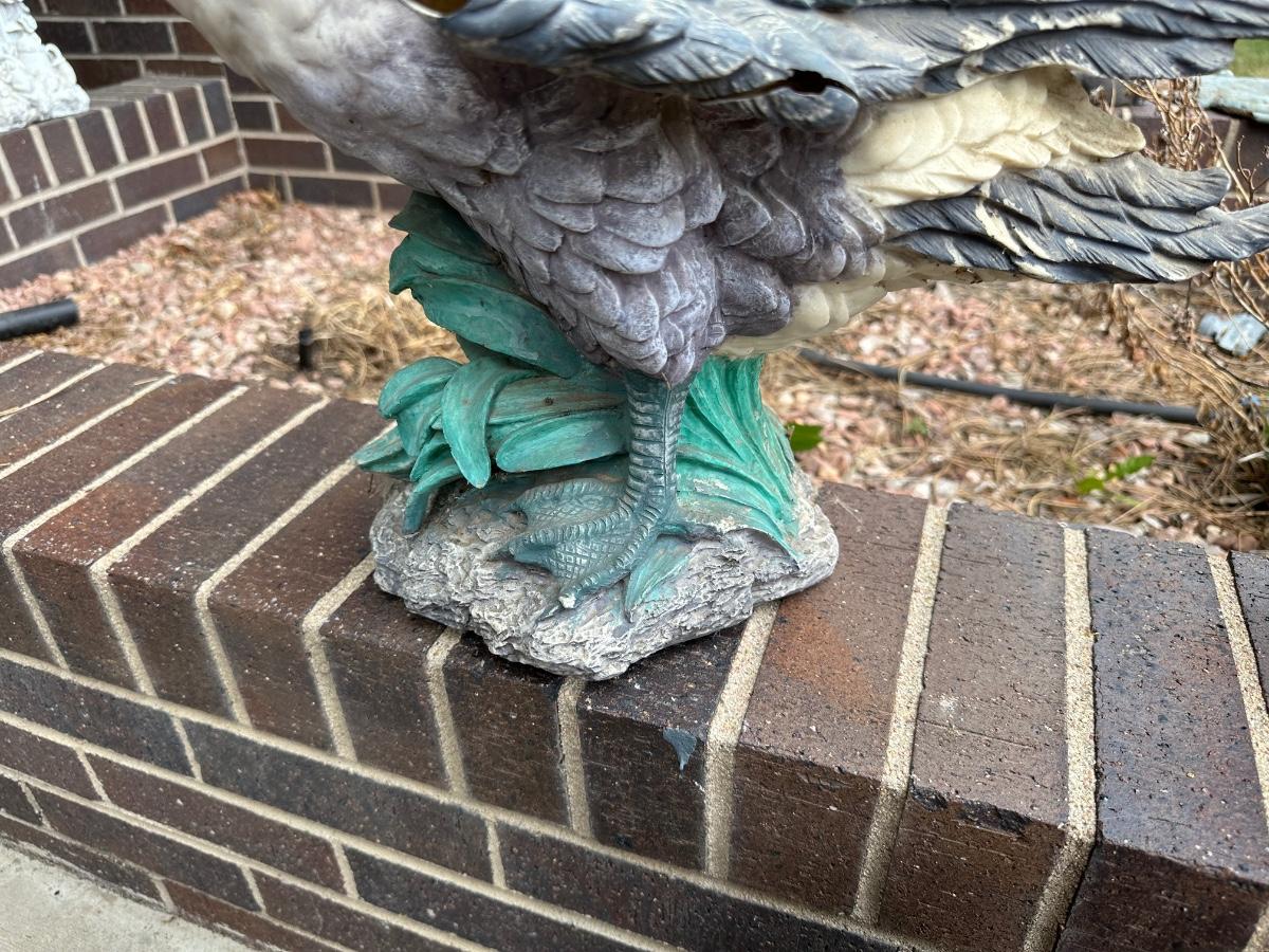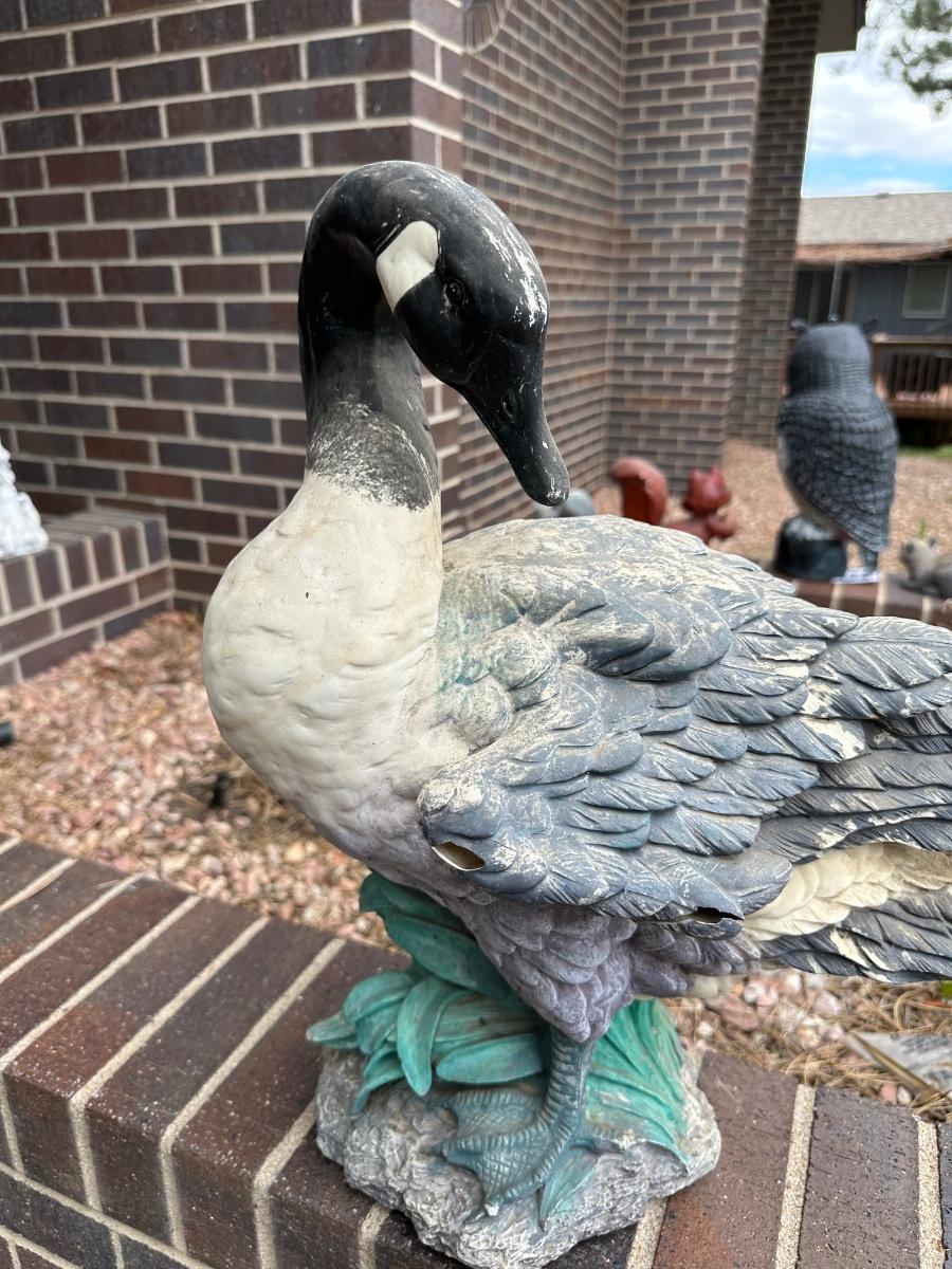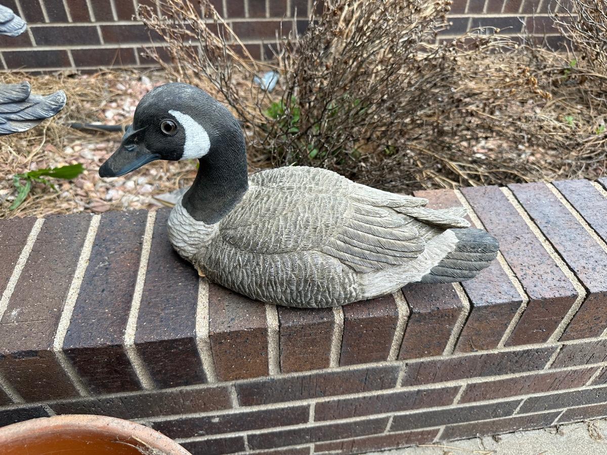 GEESE YARD/GARDEN DECOR AND HAND PAINTED TERRACOTTA PLANTER WITH SAUCER ON PLANT DOLLY
